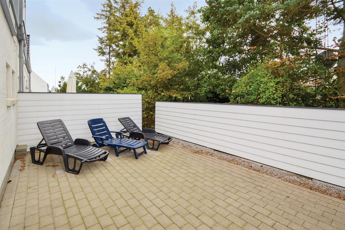 Modern rijtjeshuis in het hart van Blåvand. Een paar meter van winkels, cafés en restaurants. Op twee verdiepingen heeft u het gezellig. Beneden vindt u de moderne keuken en een slaapkamer en de badkamer met whirlpool. Boven is de moderne woonkamer met schuine plafonds en een aangename sfeer. Ook de andere slaapkamers bevinden zich hier. Het hoekhuis heeft ook een groot terras dat volledig is afgesloten.