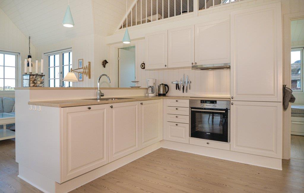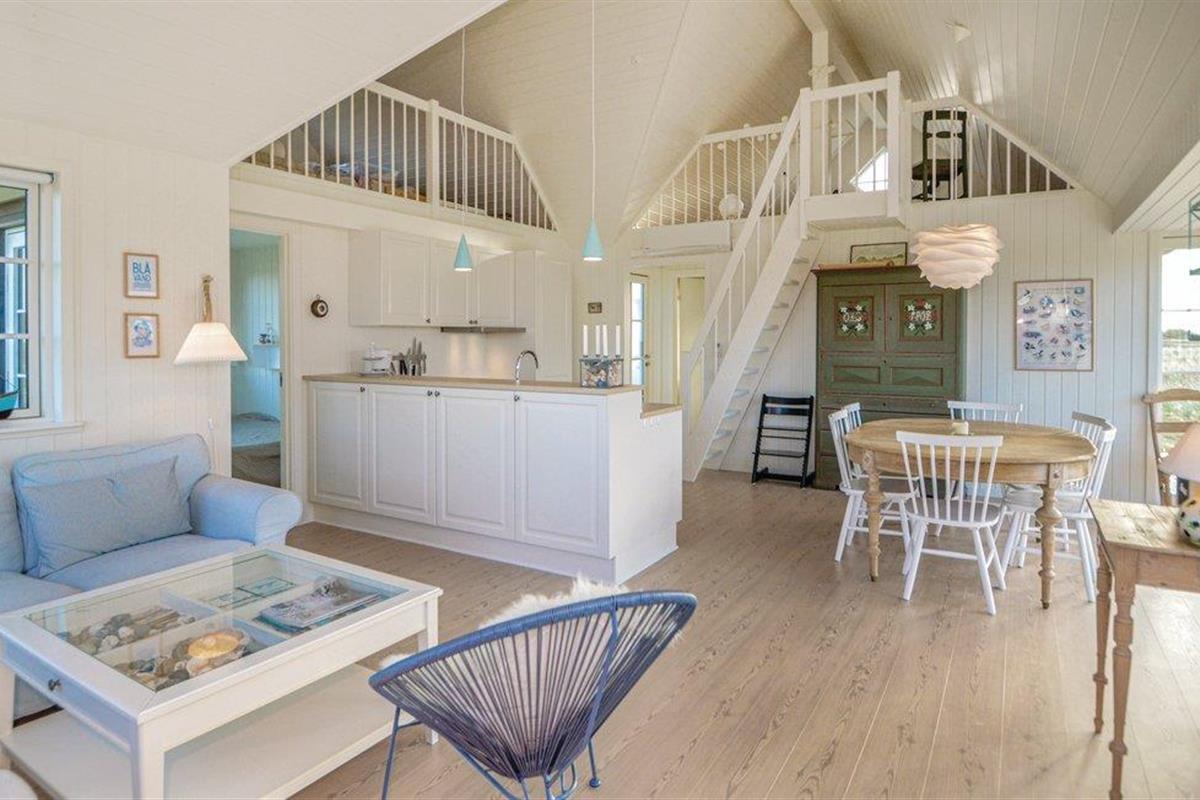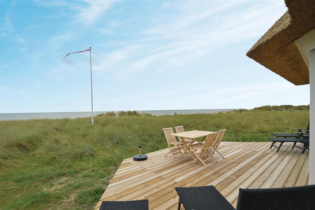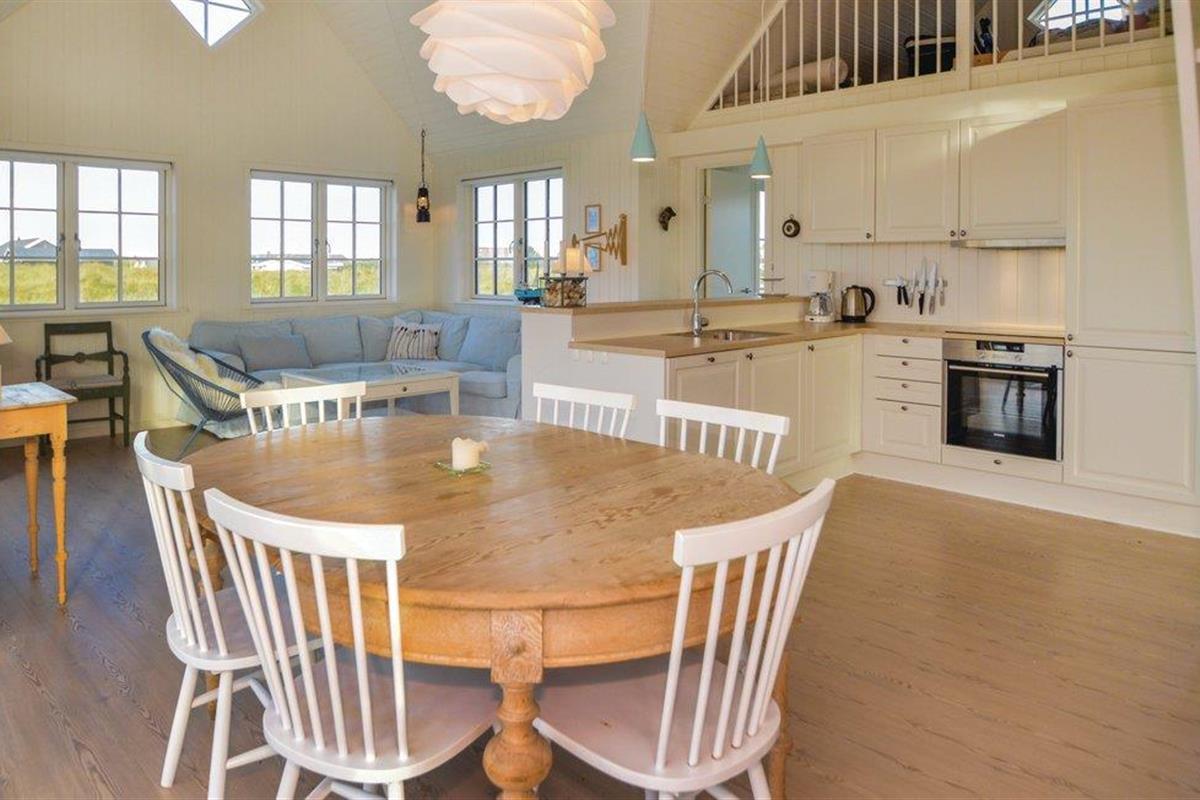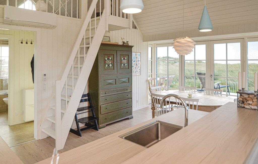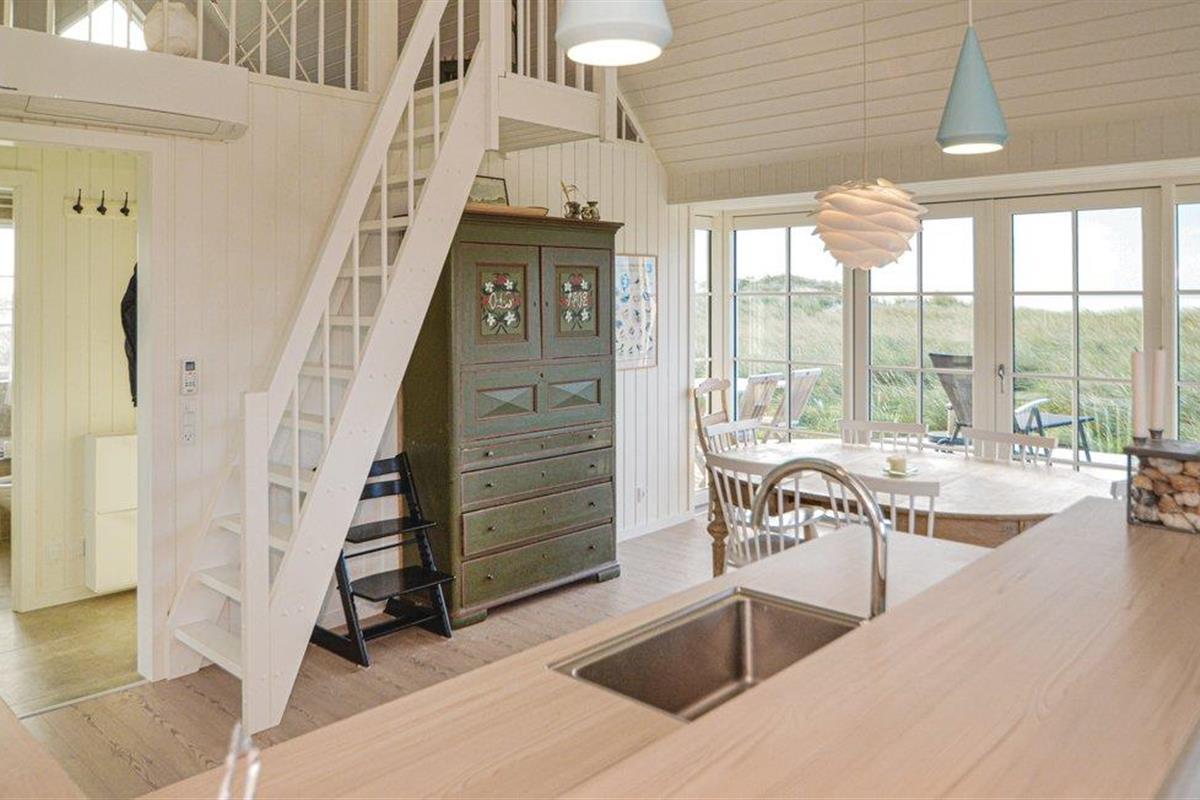 De beste en meest interessante locatie in Blåvand. Dichter bij de zee kun je niet komen. Bovendien is er het fantastische uitzicht op de Noordzee en de duinen, of u nu binnen of buiten bent. Het huis is ook een juweeltje op zich. Er is hier veel zorg aan besteed dat alles mooi licht is en met een bijzondere charme is ingericht. De goede ligging en de smaakvolle inrichting smelten hier samen tot een hogere eenheid. De ruime eetkeuken is het hart van het huis. Het huis heeft een Bluetooth radio. Door de grote ramen kunt u de golven van de zee zien. Naast drie slaapkamers is er ook een slaapzolder. Kinderen kunnen zich hier heerlijk vermaken. Omdat het huis niet ver van het centrum ligt, kunt u alles te voet doen.