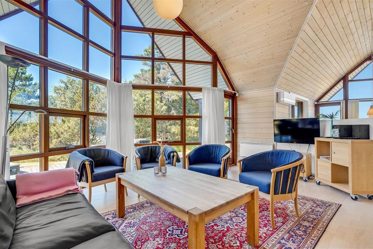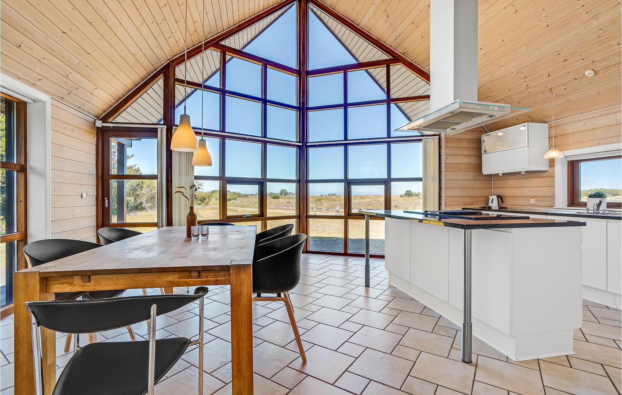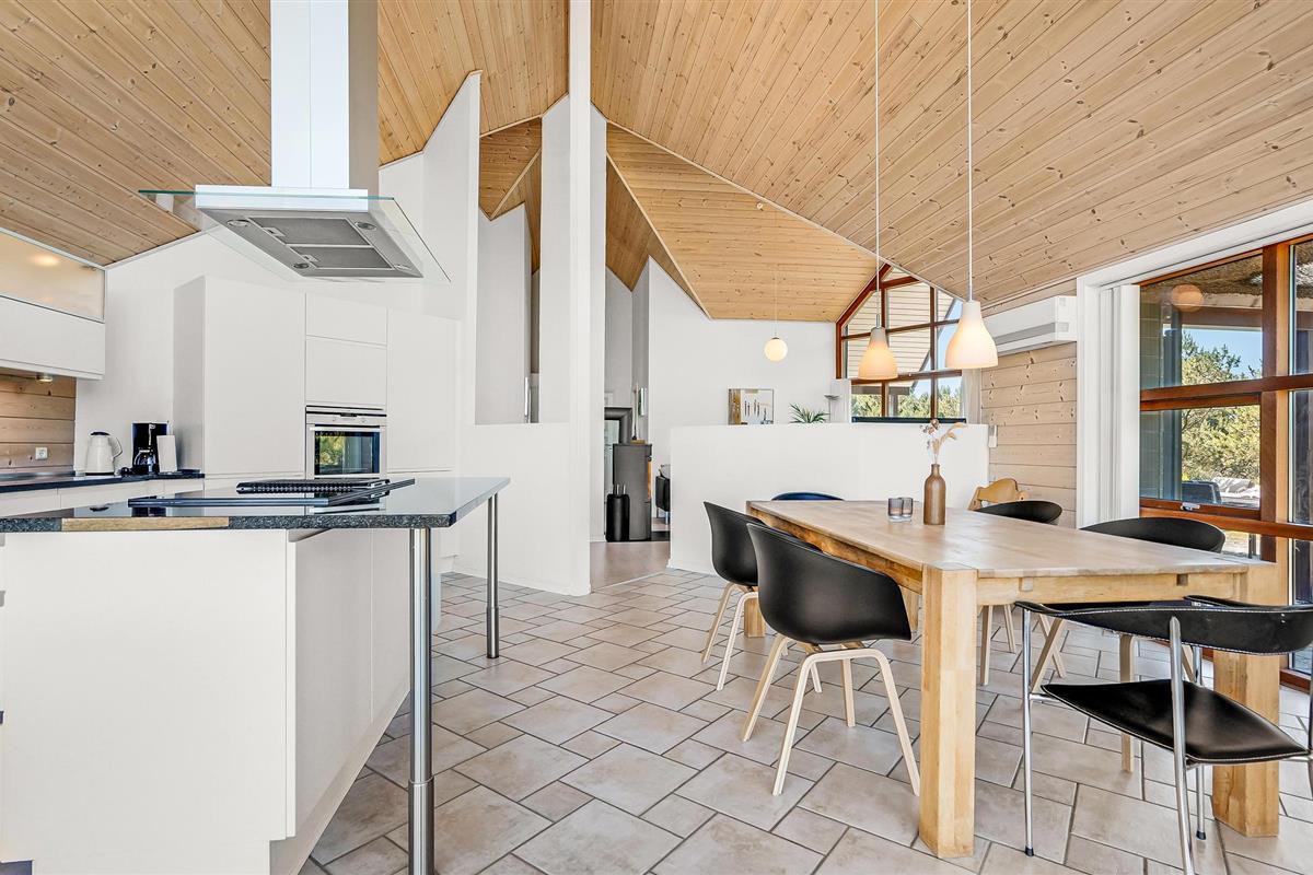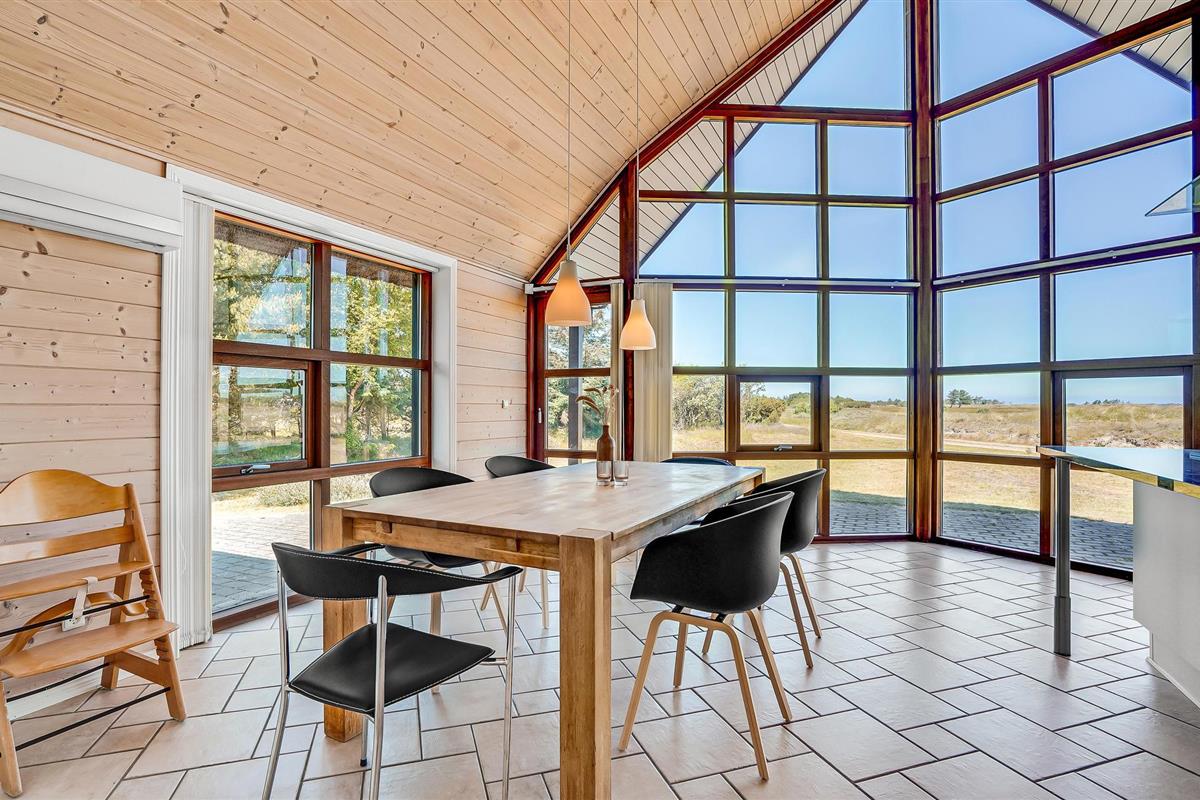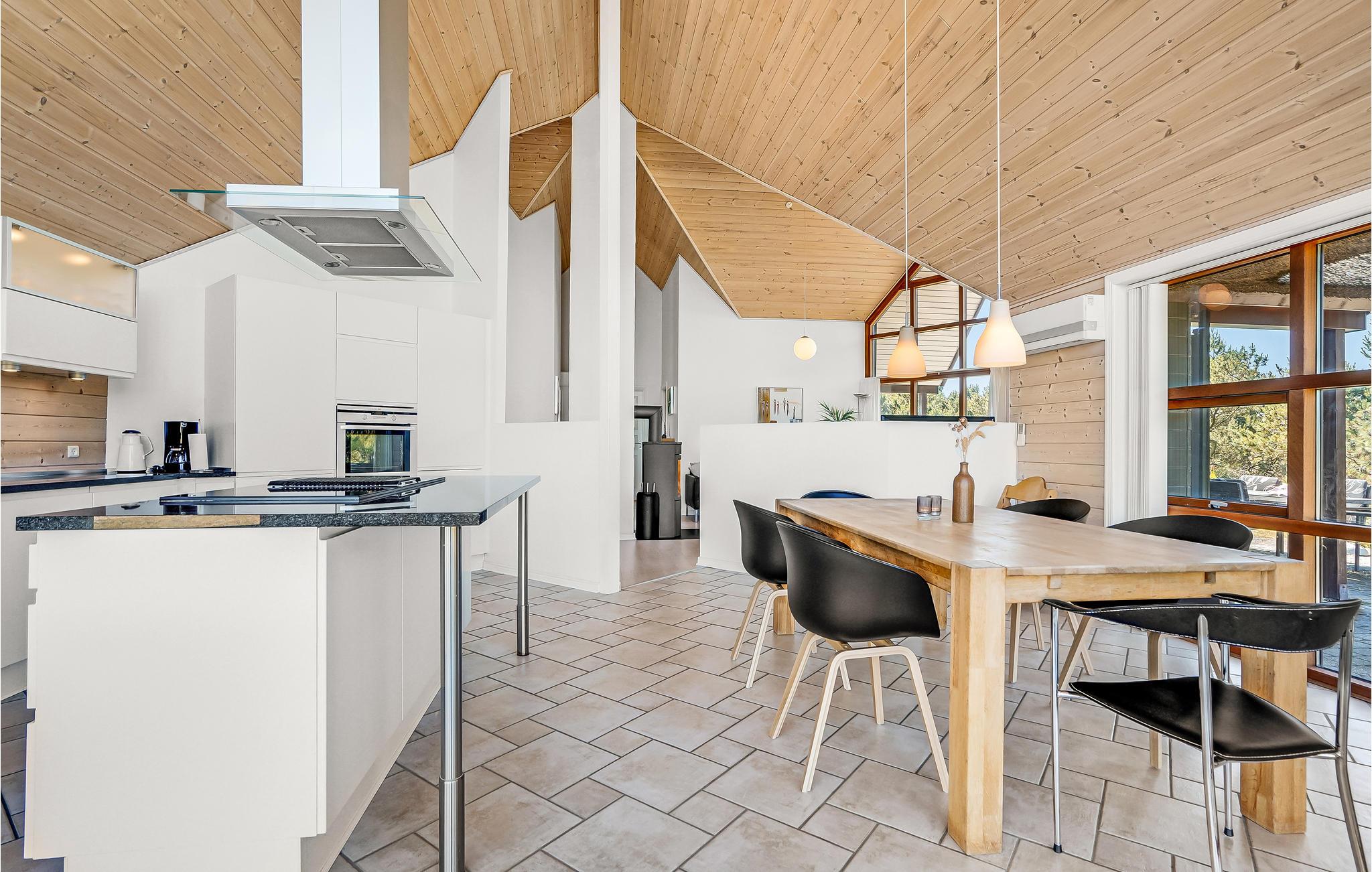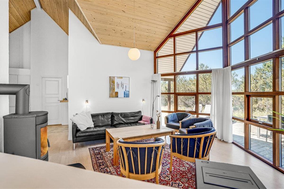 Dit prachtige huis met rieten dak maakt indruk met grote ramen die het interieur voorzien van veel natuurlijk daglicht en ook een betoverend uitzicht op de heide bieden. Lichtgekleurde meubels, hoge houten plafonds en de knisperende houtkachel creëren een gezellige sfeer waarvan je kunt genieten tijdens harmonieuze maaltijden en gezellige spelletjesavonden. Verheug je op het koken in de avond en trakteer jezelf op een knus bad in de whirlpool na een lange dag in de frisse zeelucht.
