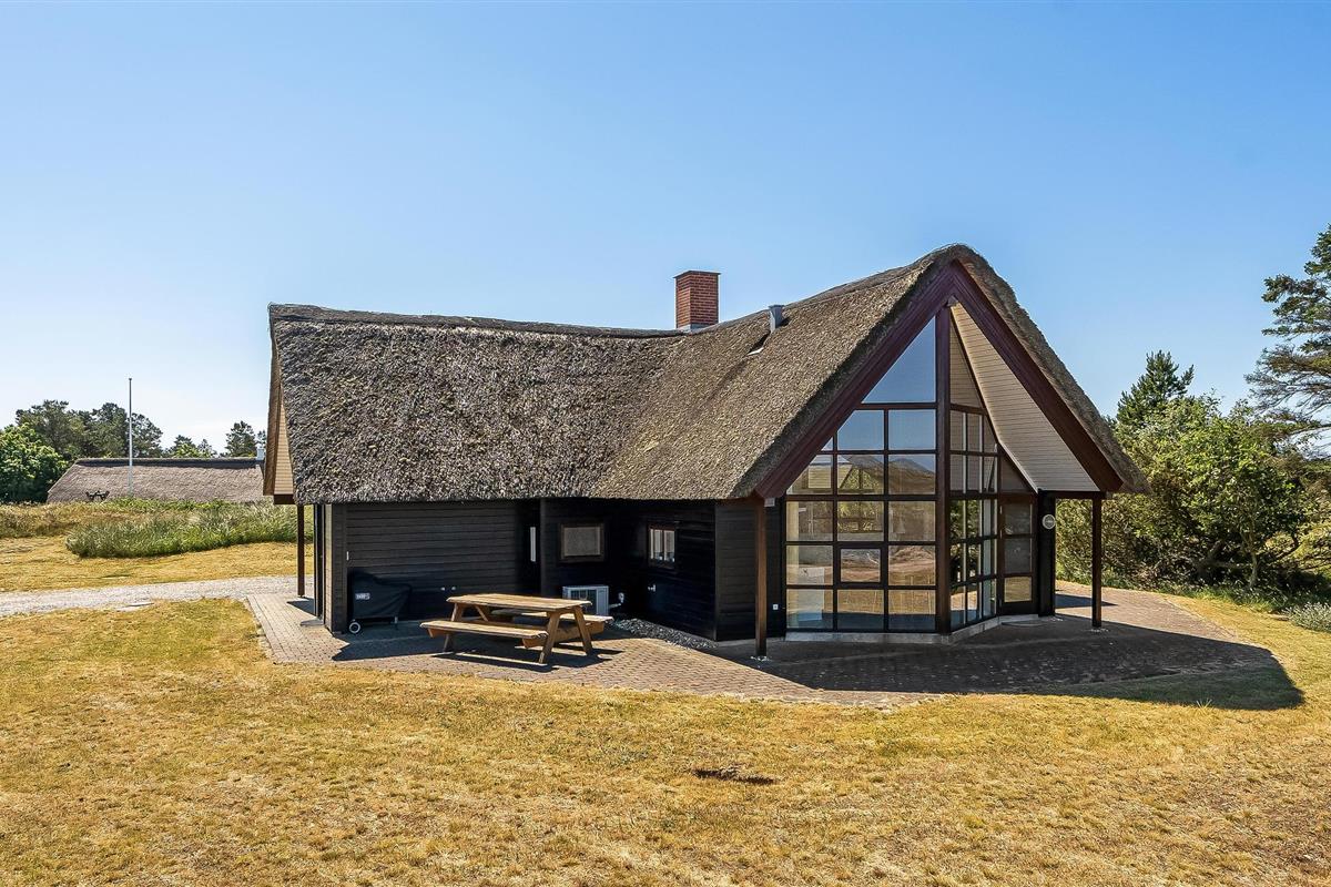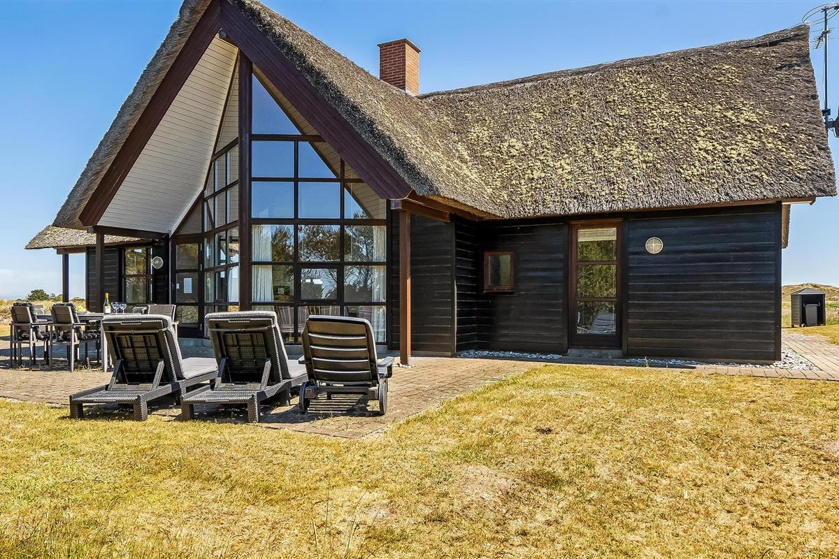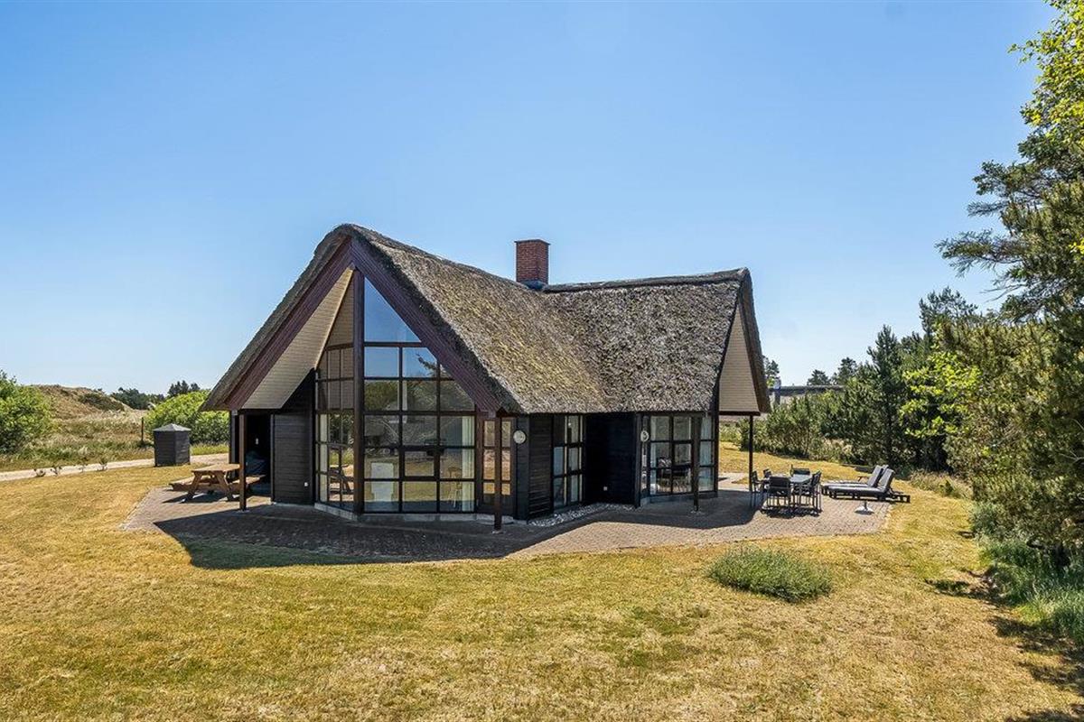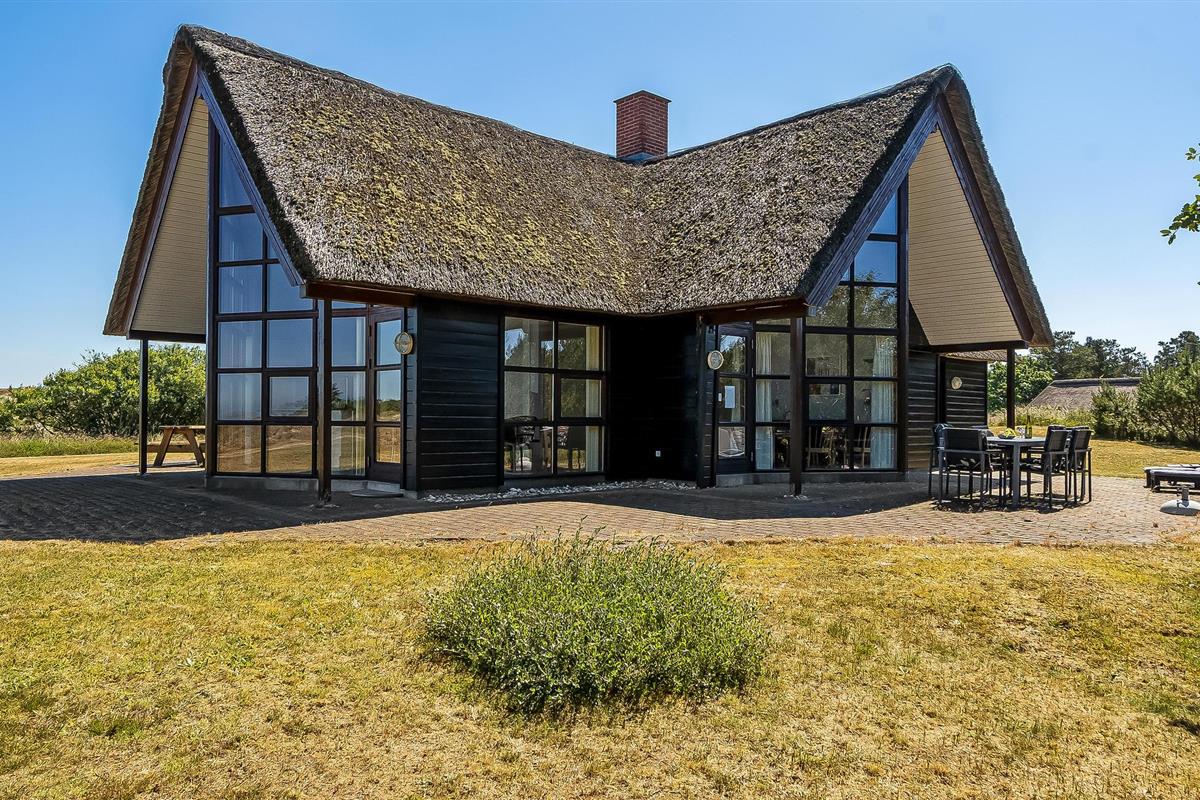 Ontspan in dit charmante vakantiehuis met whirlpool, rieten dak en prachtig uitzicht bij Blåvand Strand.