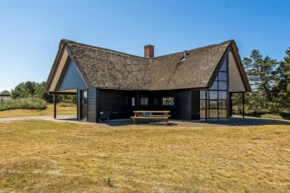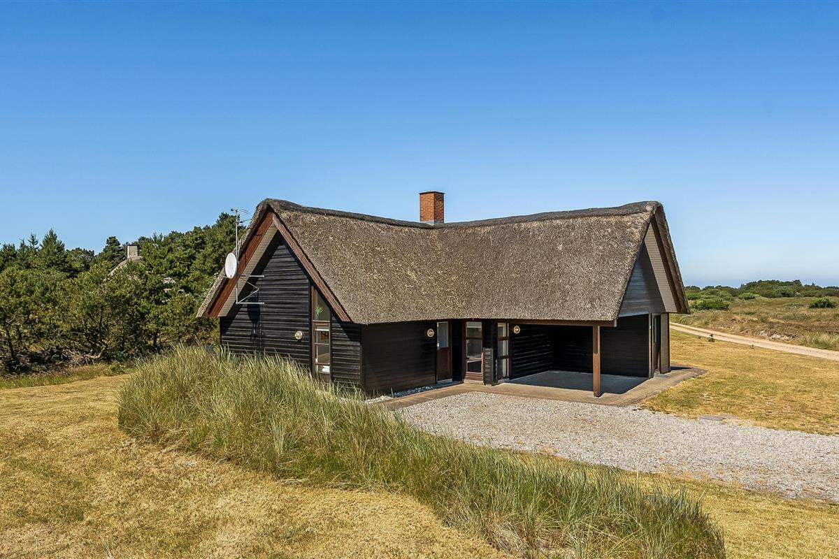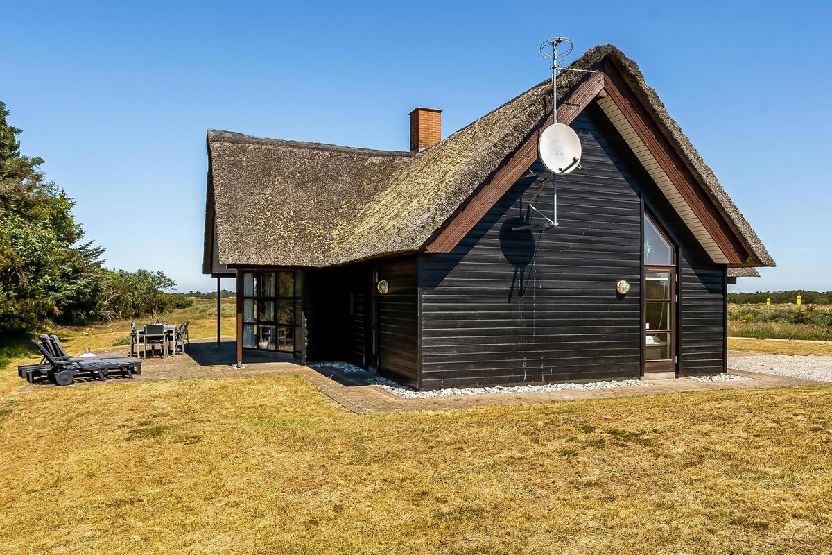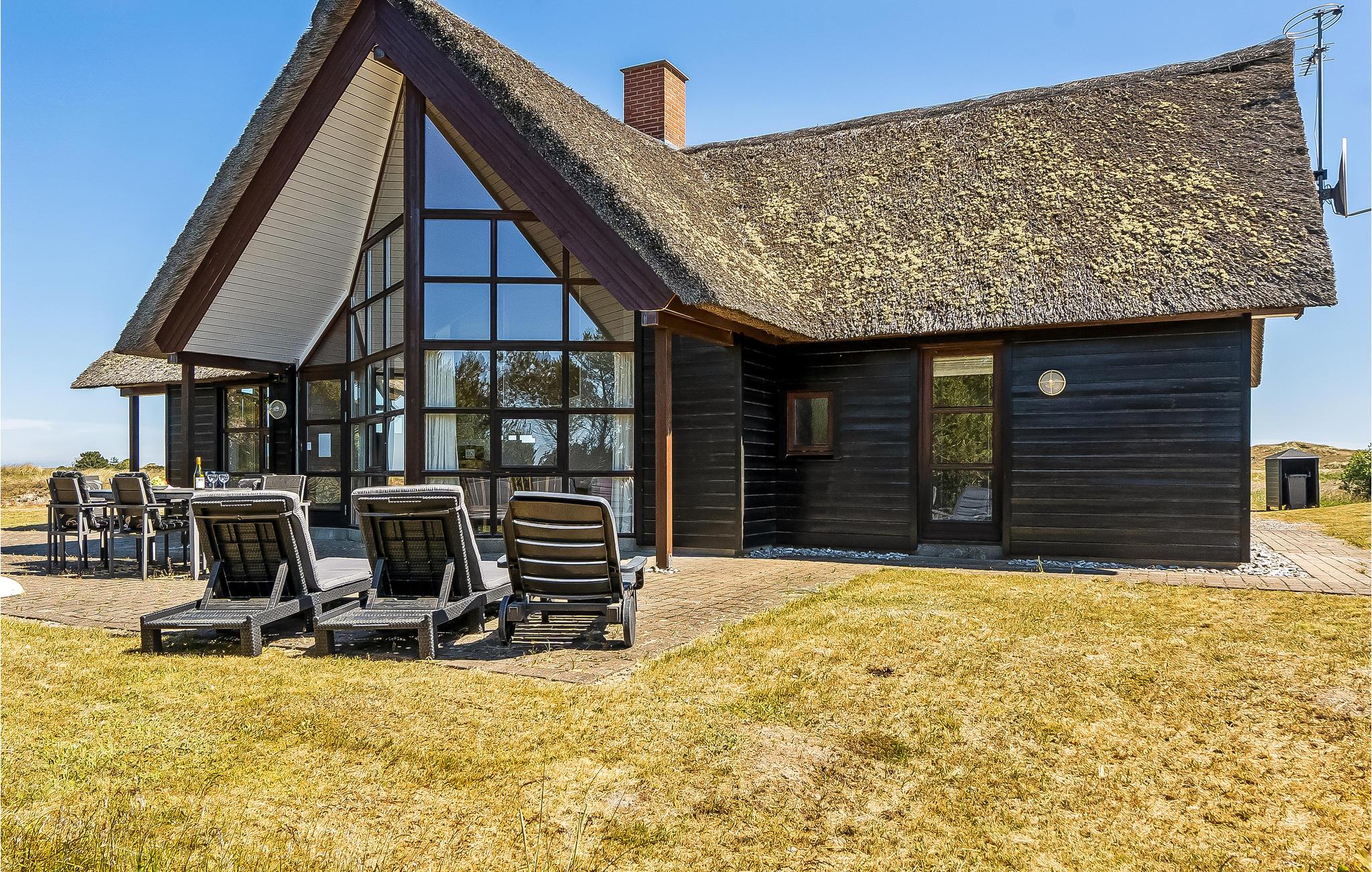 Ontspan in dit charmante vakantiehuis met whirlpool, rieten dak en prachtig uitzicht bij Blåvand Strand.