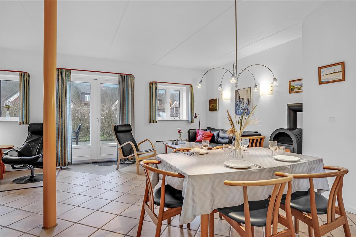 Een gezellig rietgedekt rijtjeshuis gelegen in het hart van Blåvand. De open keuken-woonruimte bevindt zich op de begane grond, boven zijn 3 slaapkamers en een badkamer. Een klein gezellig windbeschut terras nodigt uit tot zonnebaden. Er zijn goede restaurants, een pub, air hockey, een gratis speeltuin voor kinderen, speelautomaten en pooltafels. Het prachtige witte zandstrand strekt zich uit van de vuurtoren tot Skallingen.