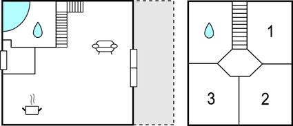 Badkamer (nr. 1) - Toilet: warm en koud water. Douche