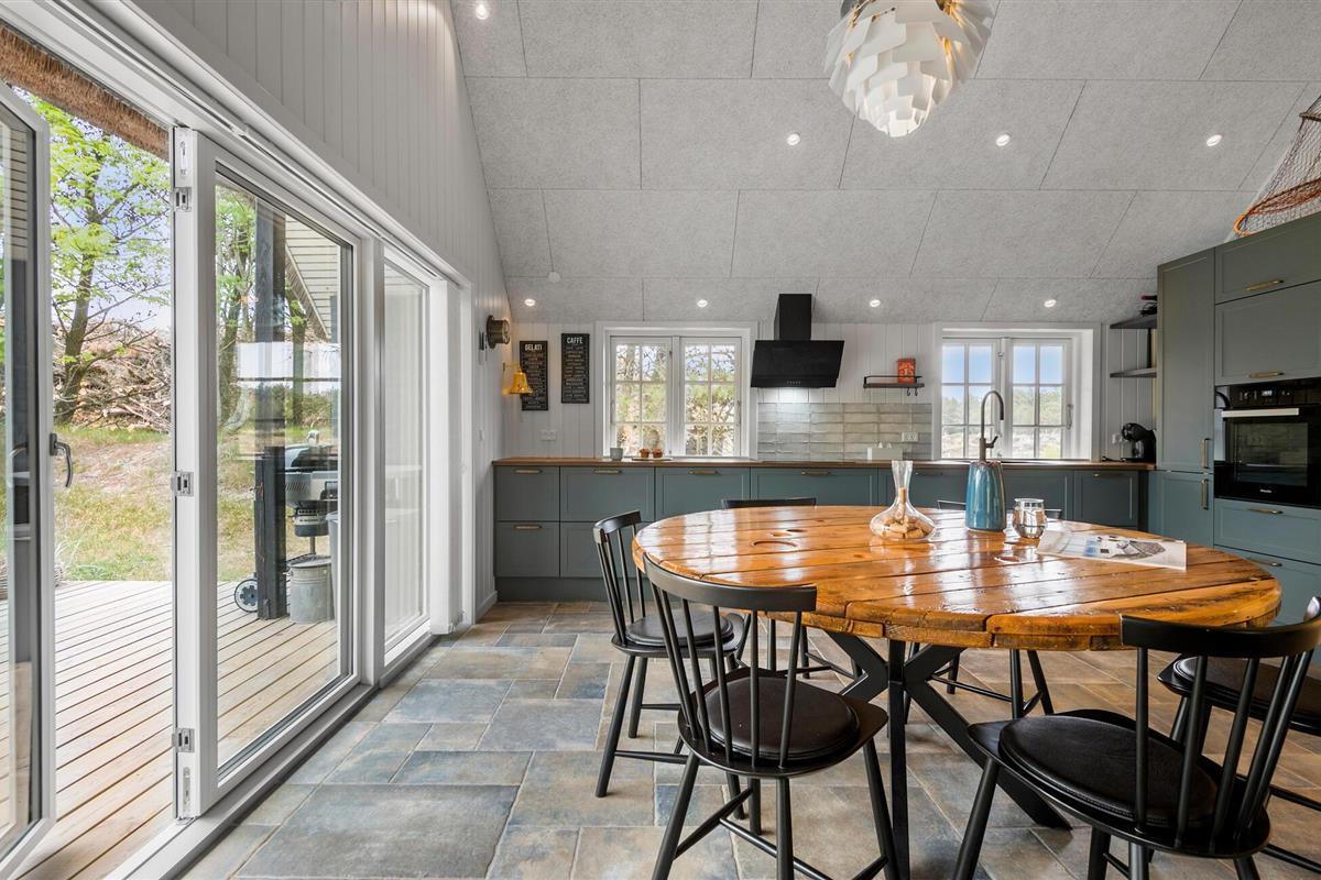 Rietgedekt stenen huis op een licht heuvelachtig duingrondstuk in Blåvand. Hier zit u midden in de natuur en heeft u vanuit het huis een prachtig uitzicht. Duinen en prachtige heideplanten omringen het huis en er zijn veel mogelijkheden om te ravotten op het terrein en in de natuur rondom het huis. Er zijn verschillende gemarkeerde wandelroutes. Dus trek je wandelschoenen aan, stap het huis uit en ervaar de natuur. Het stadje Blåvand is altijd een bezoek waard. Daar vindt u verschillende winkels en restaurants waar u kunt uitrusten tijdens het winkelen of een gezellige avond met eten.