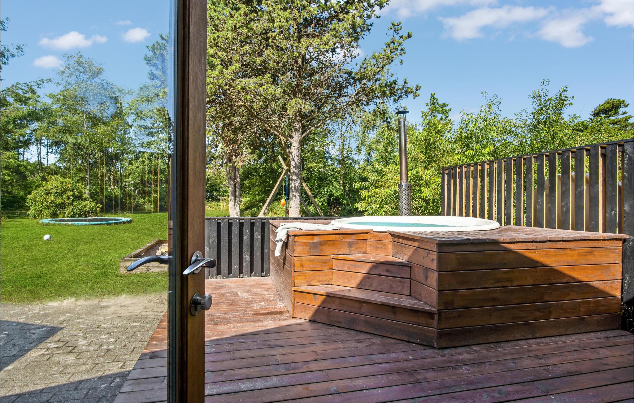 Het huisje heeft een goede en ruime keuken/woonkamer met houtkachel en warmtepomp. Alle slaapkamers zijn goed en ruim. Vanuit de woonkamer heeft u toegang tot de gedeeltelijk overdekte terrassen waar u kunt genieten van een bad in de badtonne.Het is een geweldige ervaring om het bad te bereiden en ervan te genieten; Het wordt verwarmd met een klein type houtkachel en wordt dus gevoed met brandhout.
