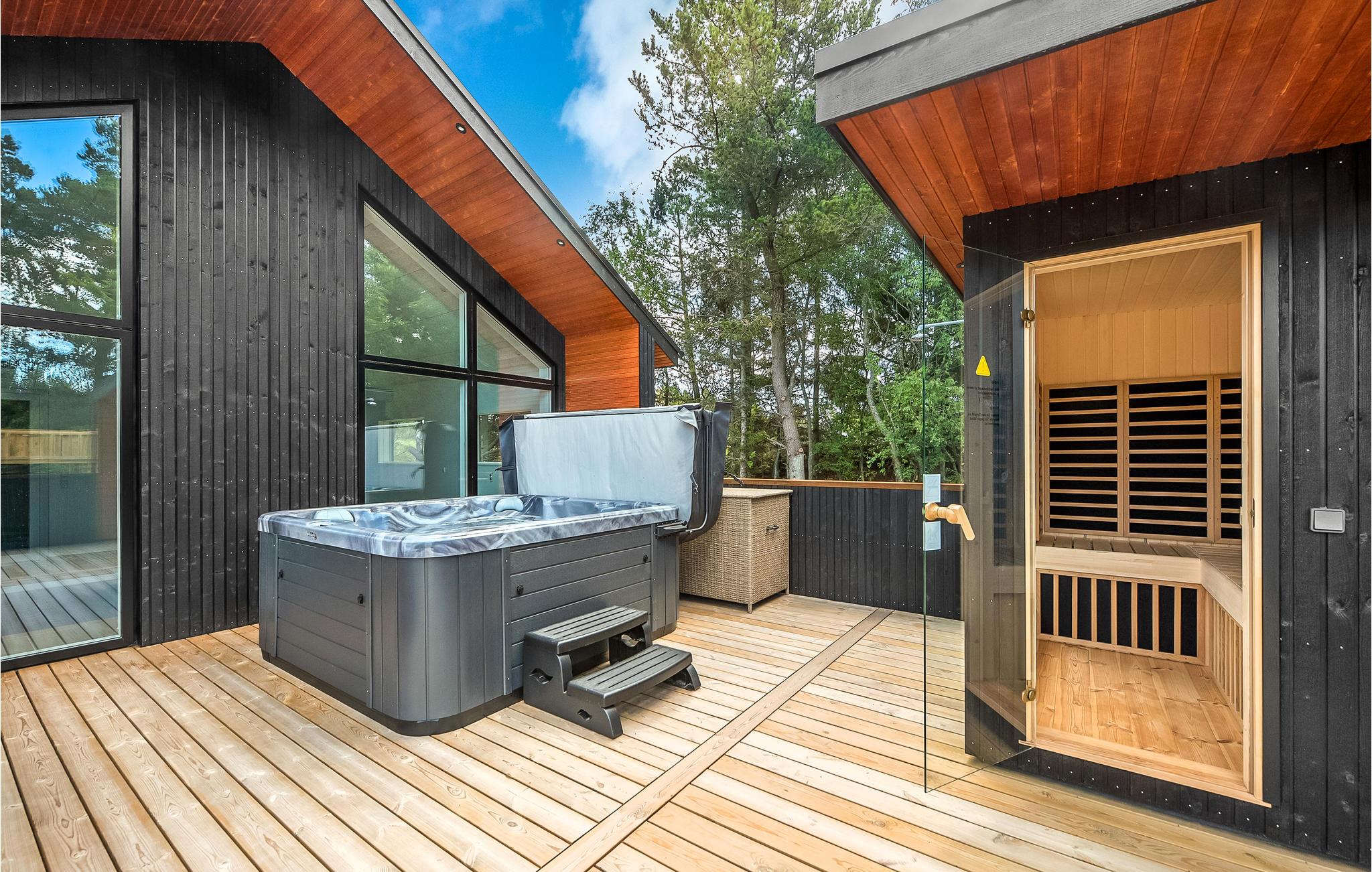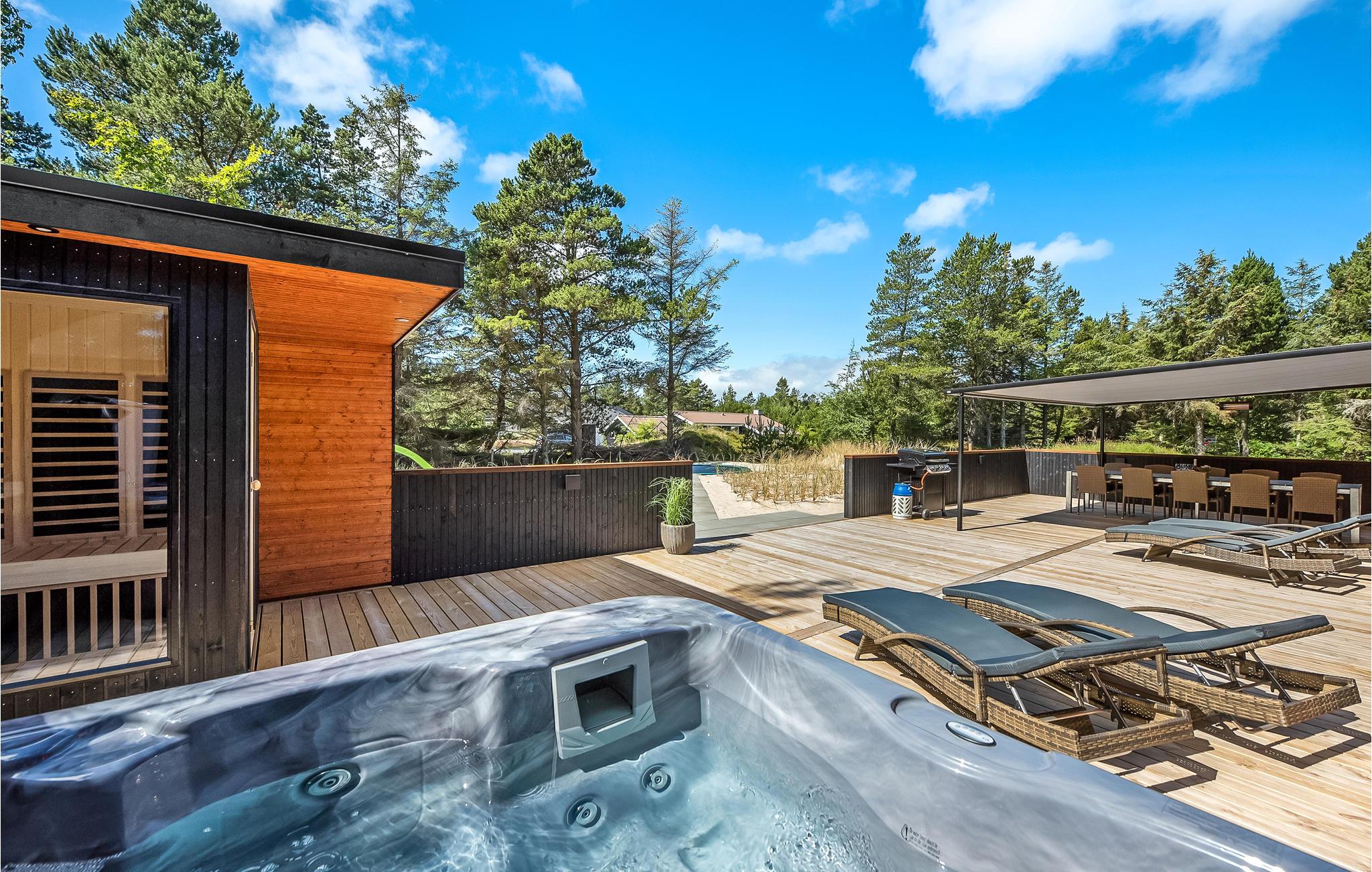 Modern vakantiehuis in Blåvand met zwembad, whirlpool en sauna, dicht bij de Noordzee.