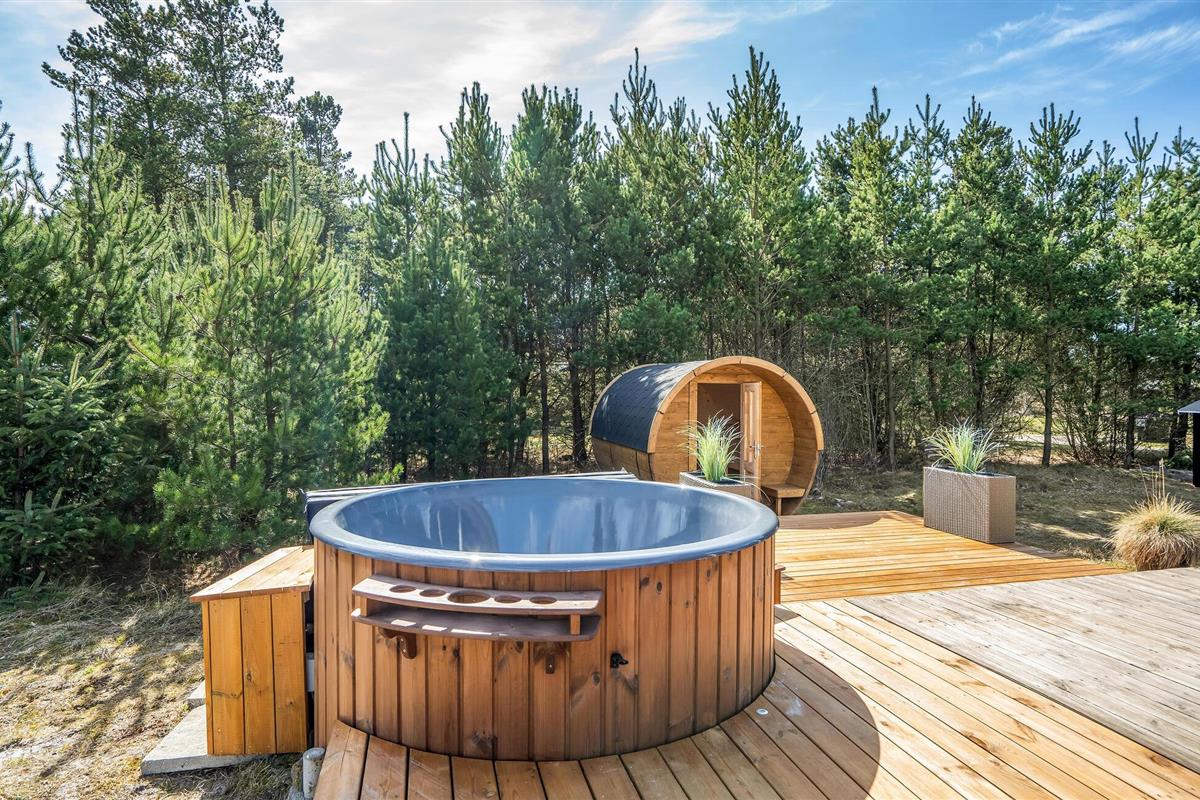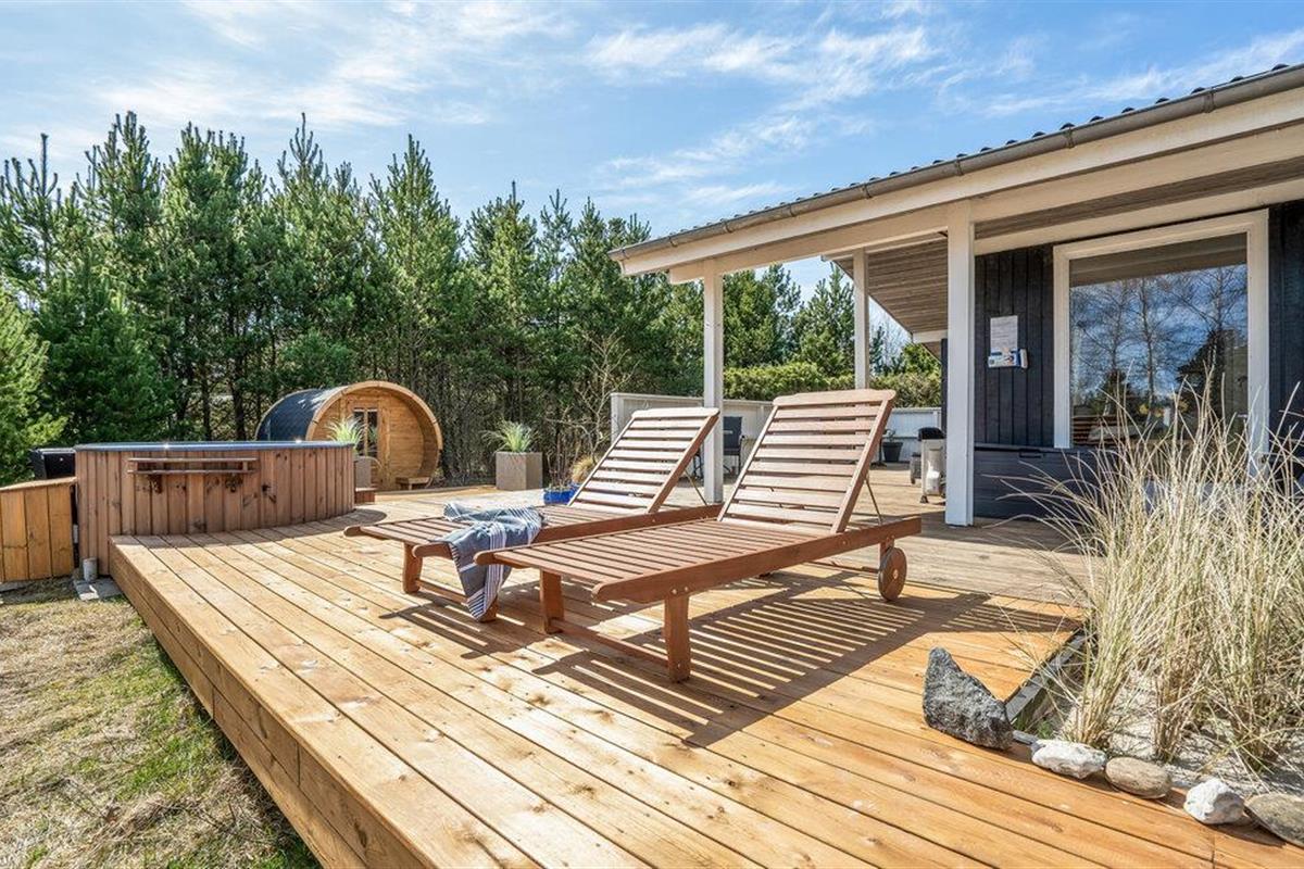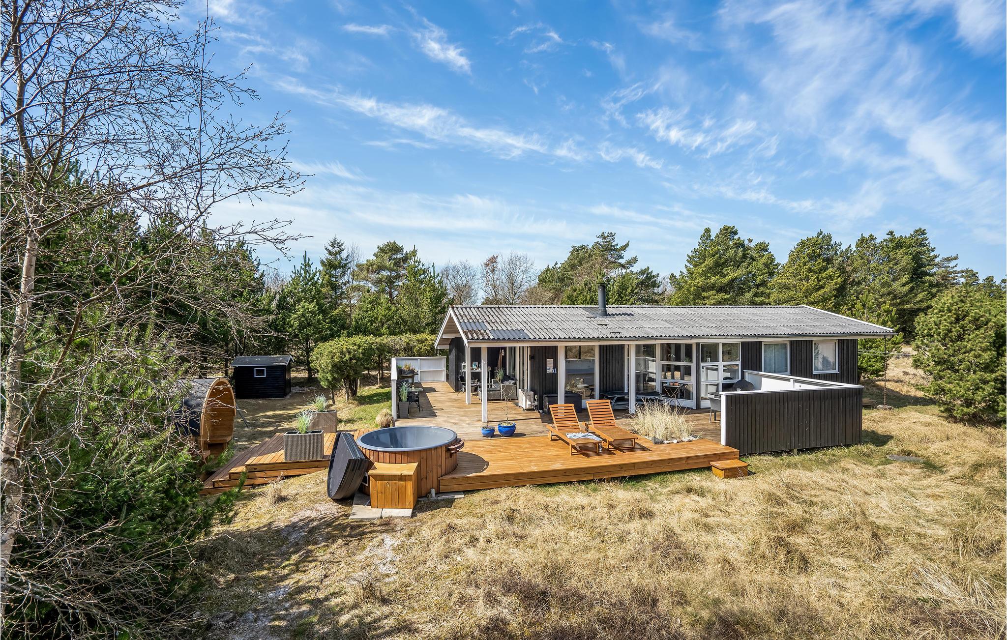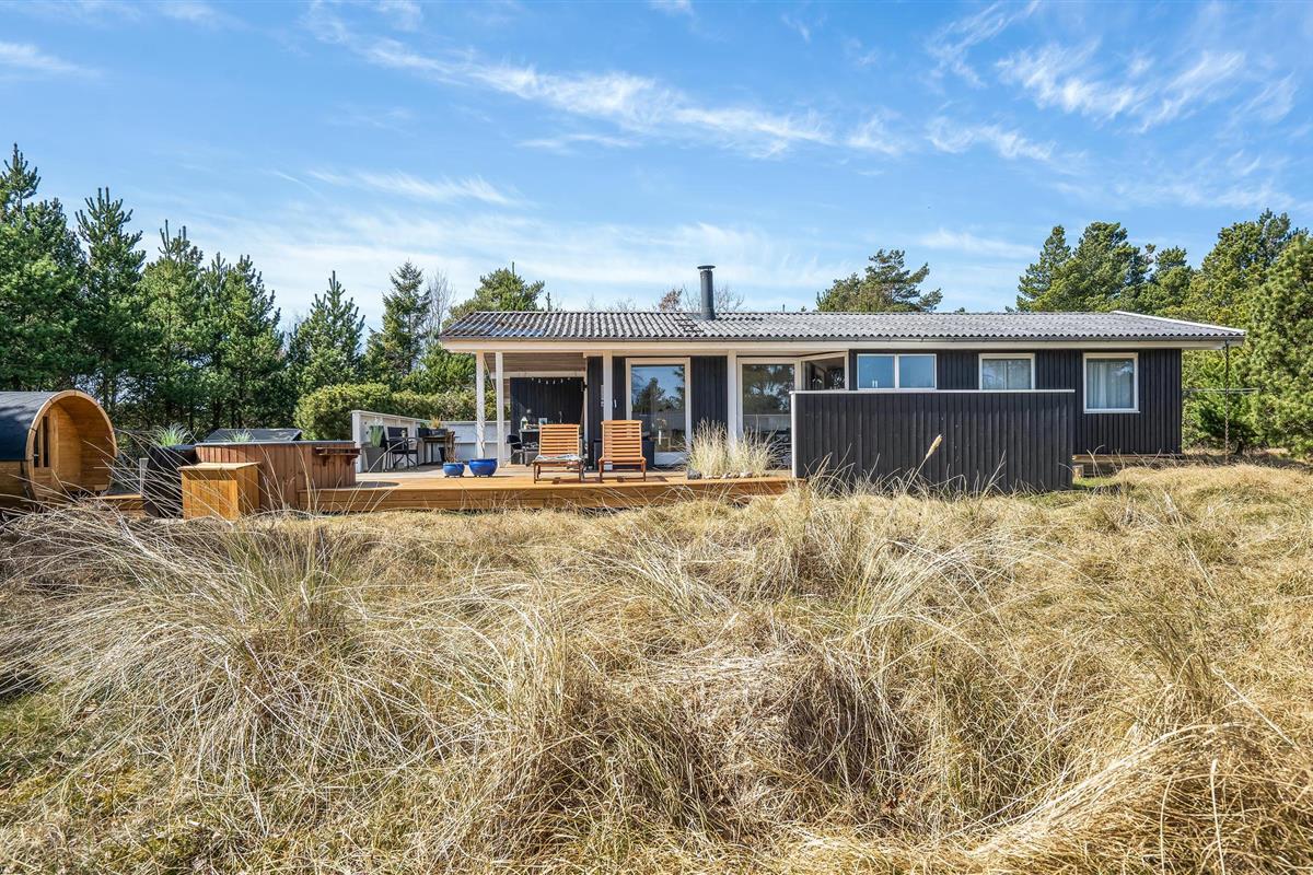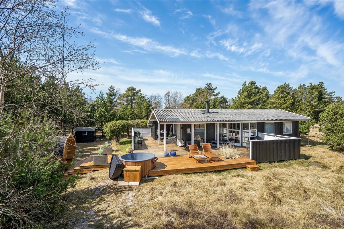 Geniet van een sfeervol vakantiehuis met sauna en Finse hottub op een groot natuurterrein in Blåvand.