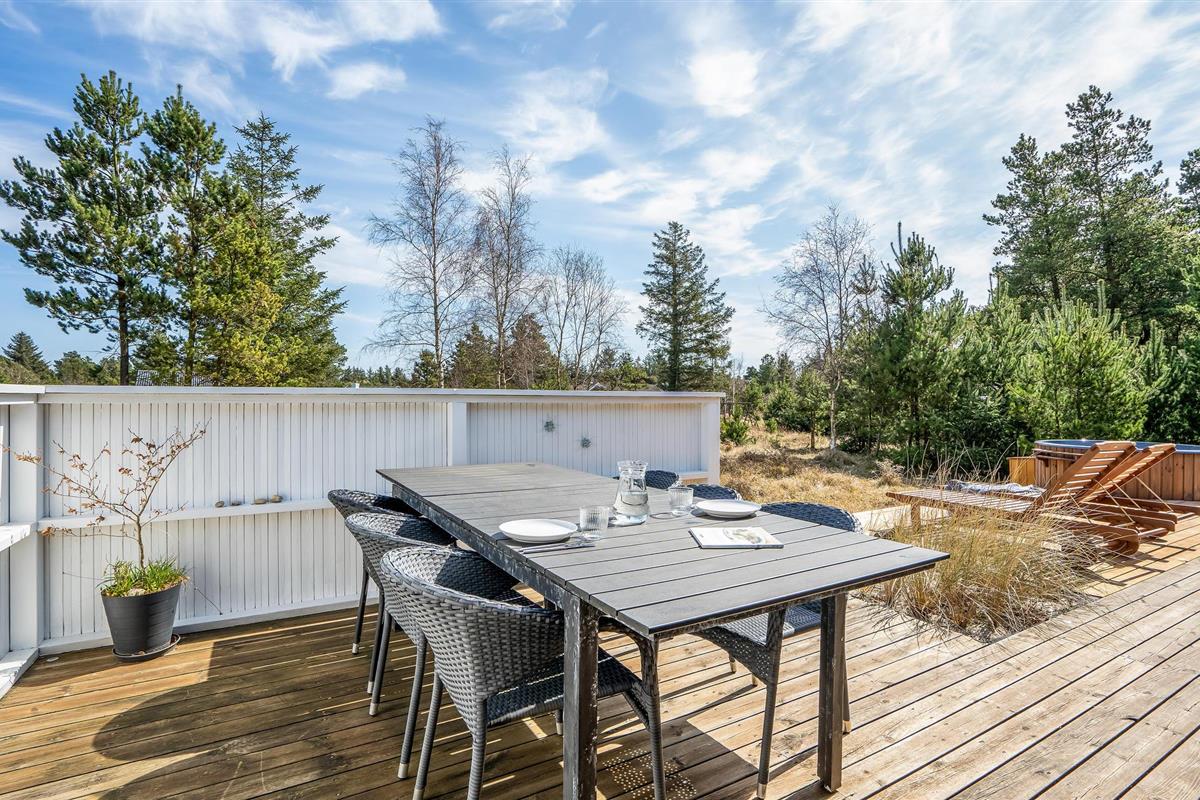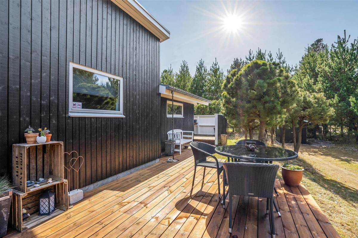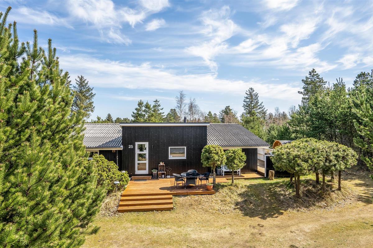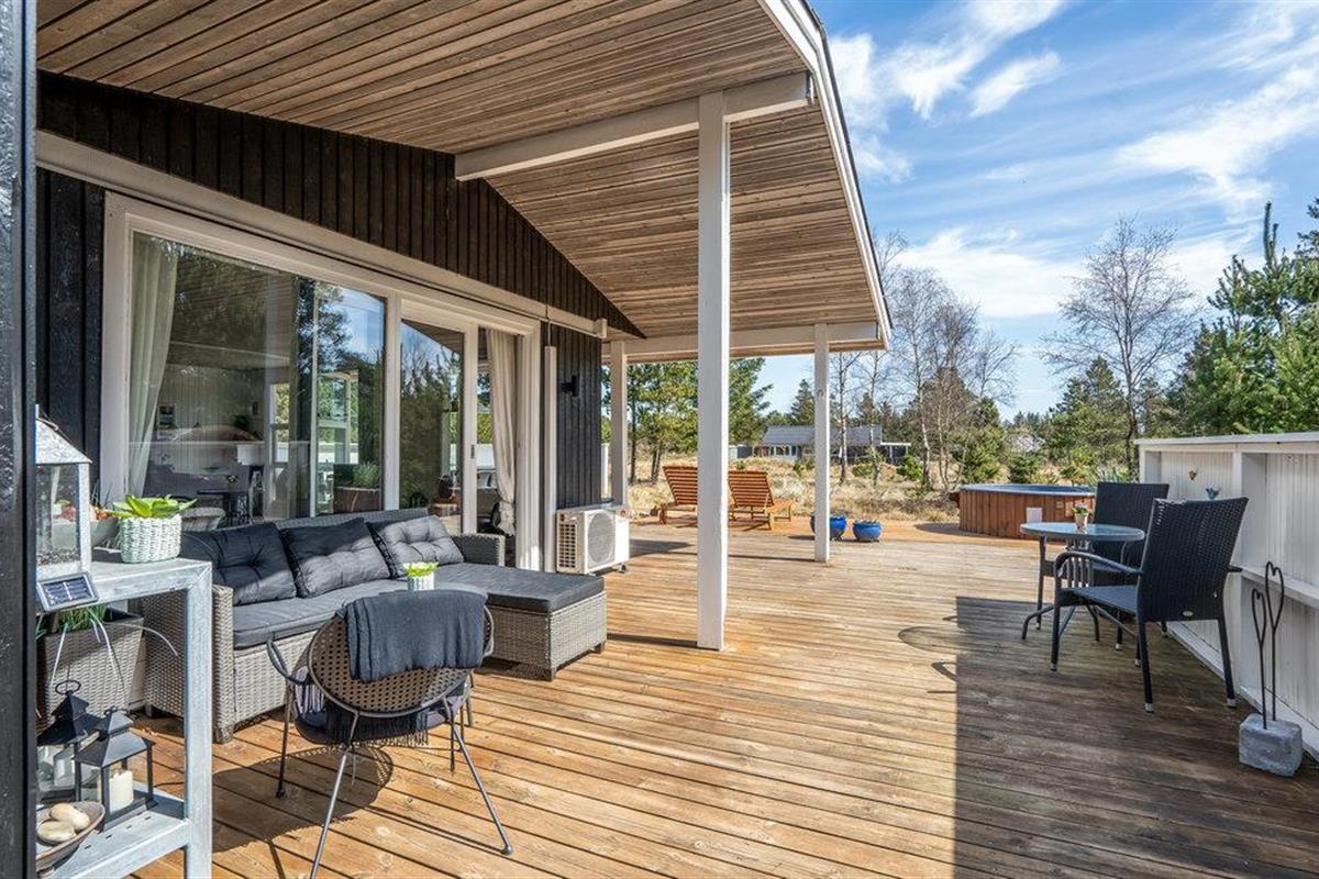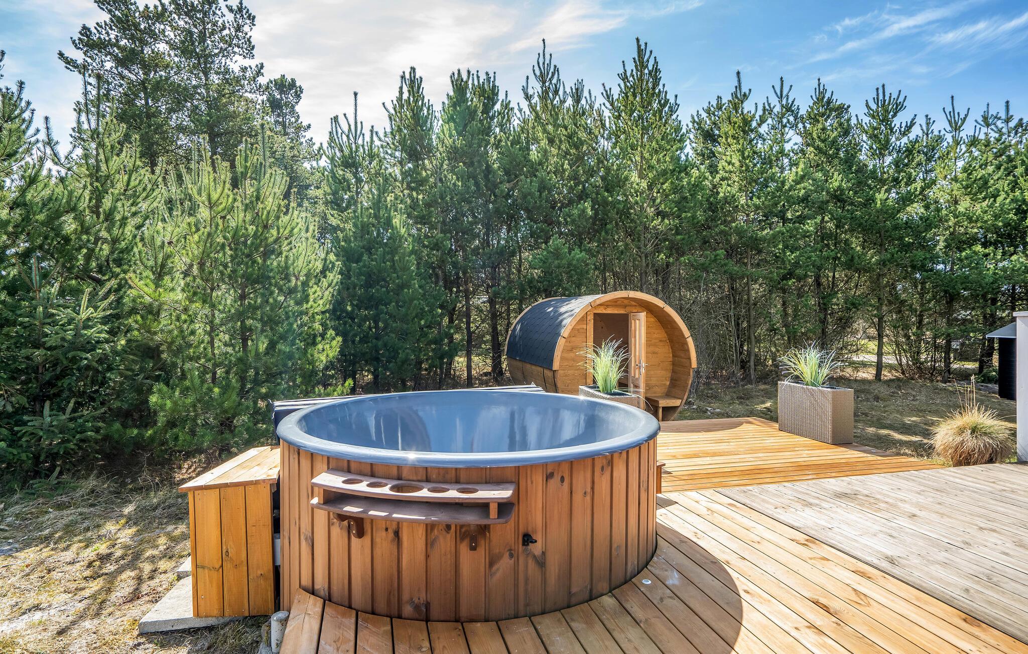 Geniet van een sfeervol vakantiehuis met sauna en Finse hottub op een groot natuurterrein in Blåvand.