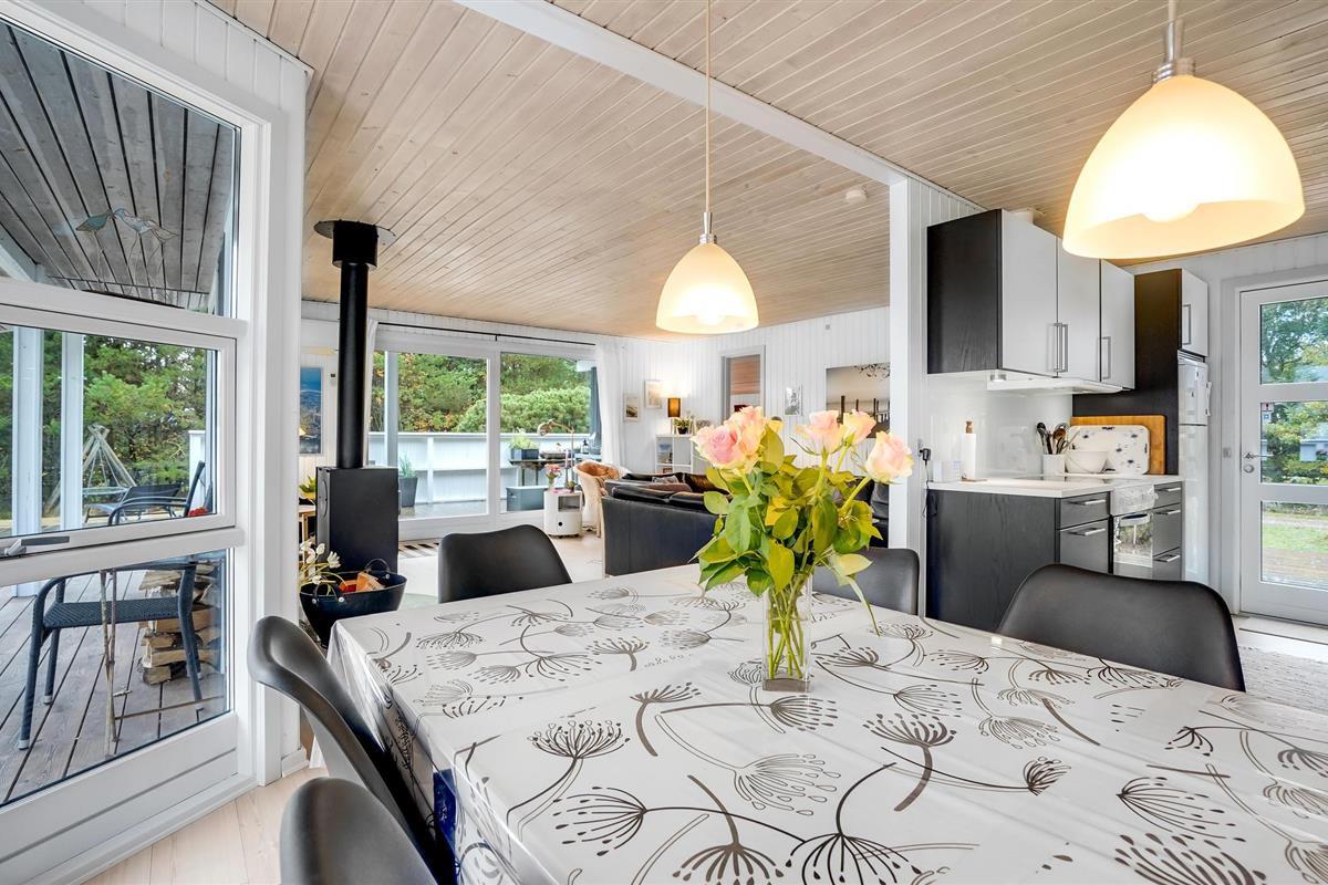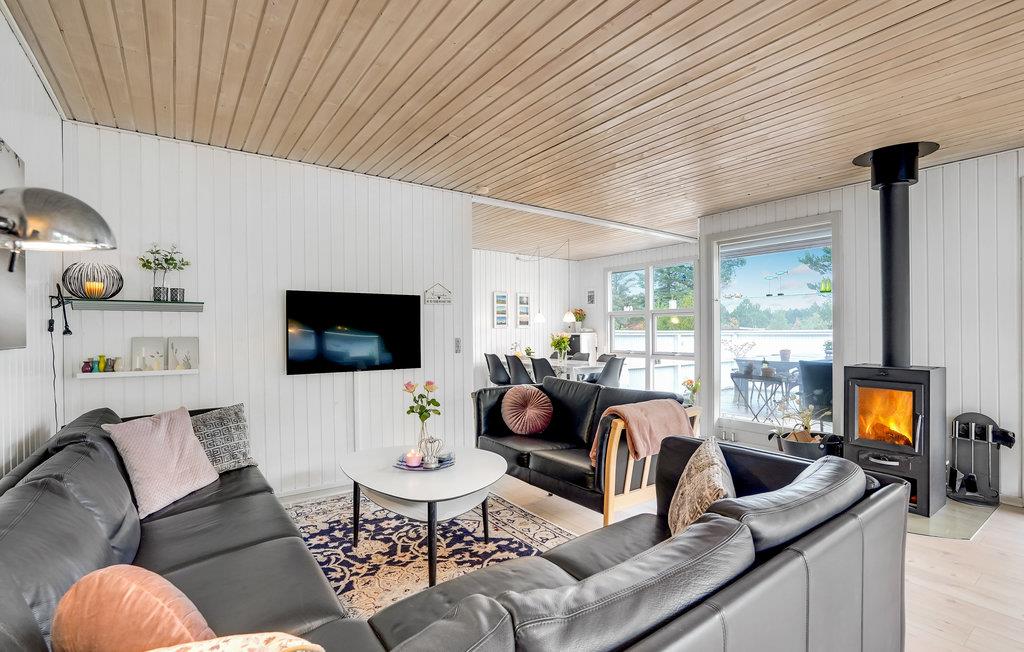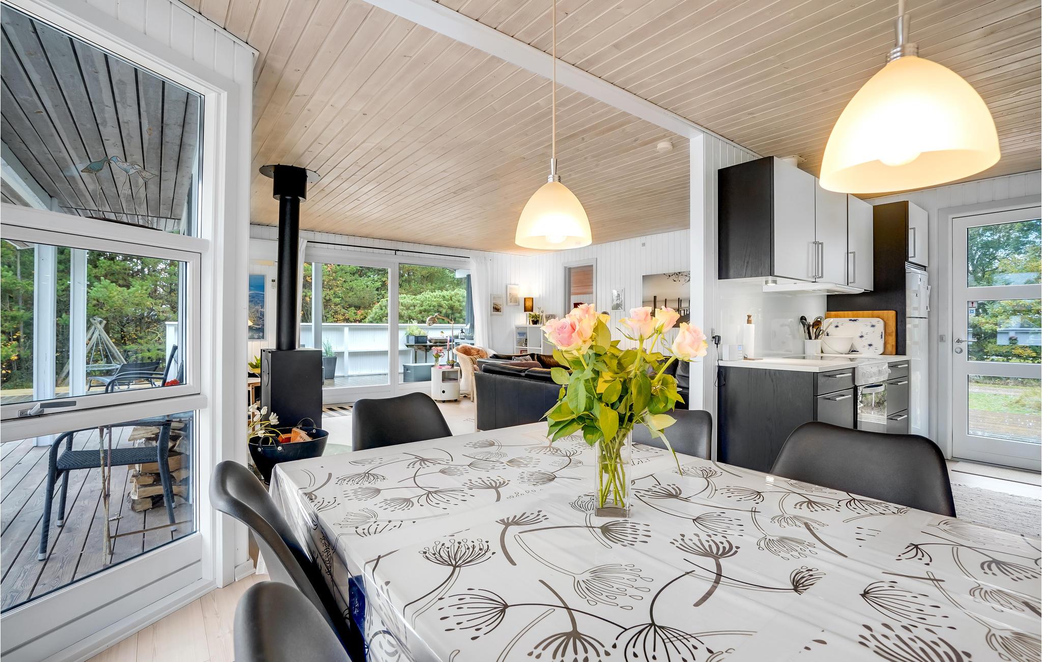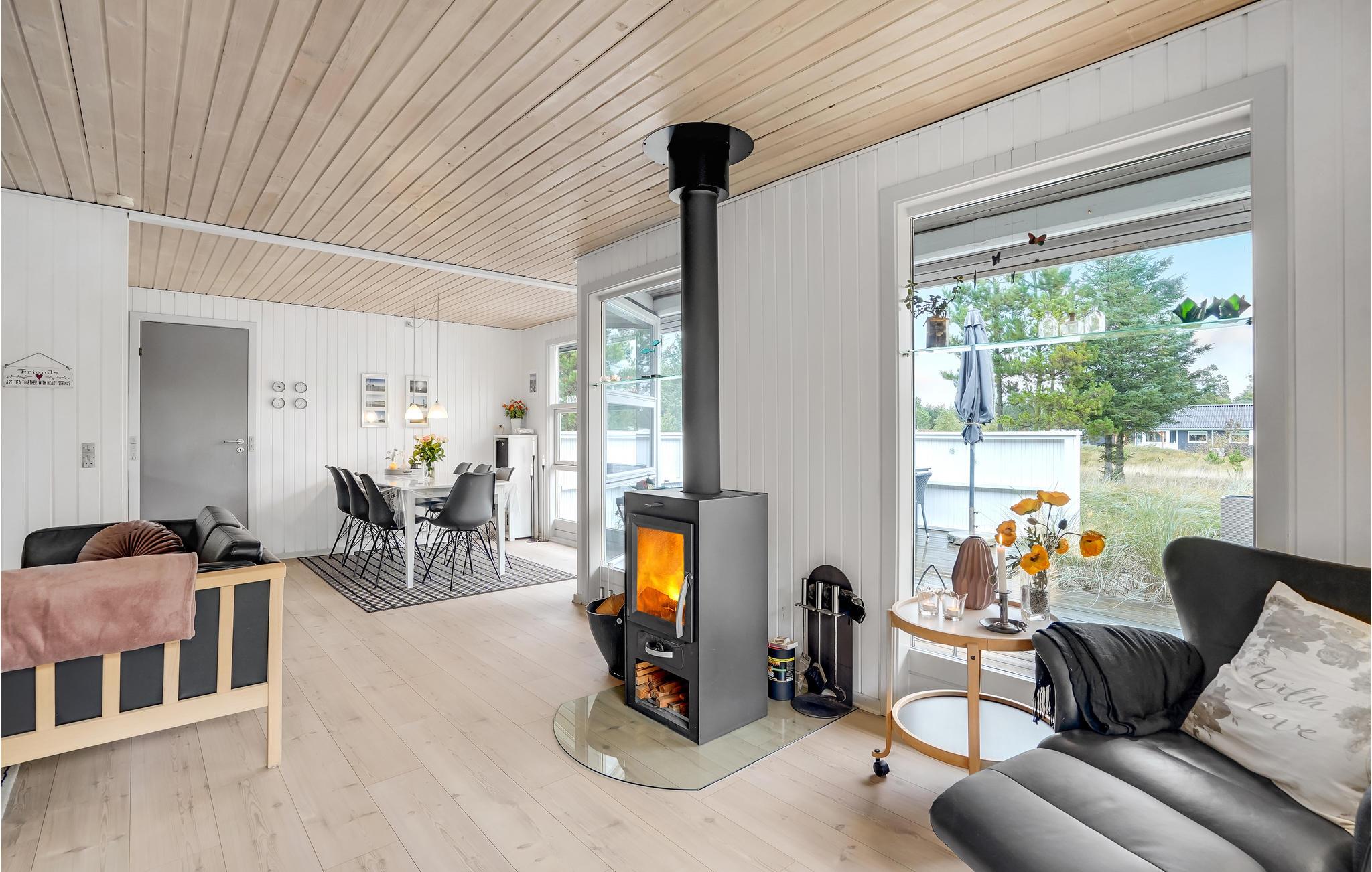 Dit lichte vakantiehuis nodigt je uit om te genieten van een familievakantie in een ontspannen sfeer. De grote, gecombineerde woonkamer en keuken is een heerlijke plek voor gezellige maaltijden en gezellige bordspelavonden. Hier kun je ontspannen in de zithoek en opwarmen voor de houtkachel in de koelere seizoenen. Vanaf hier heb je toegang tot het ruime terras en de buitenruimte.
