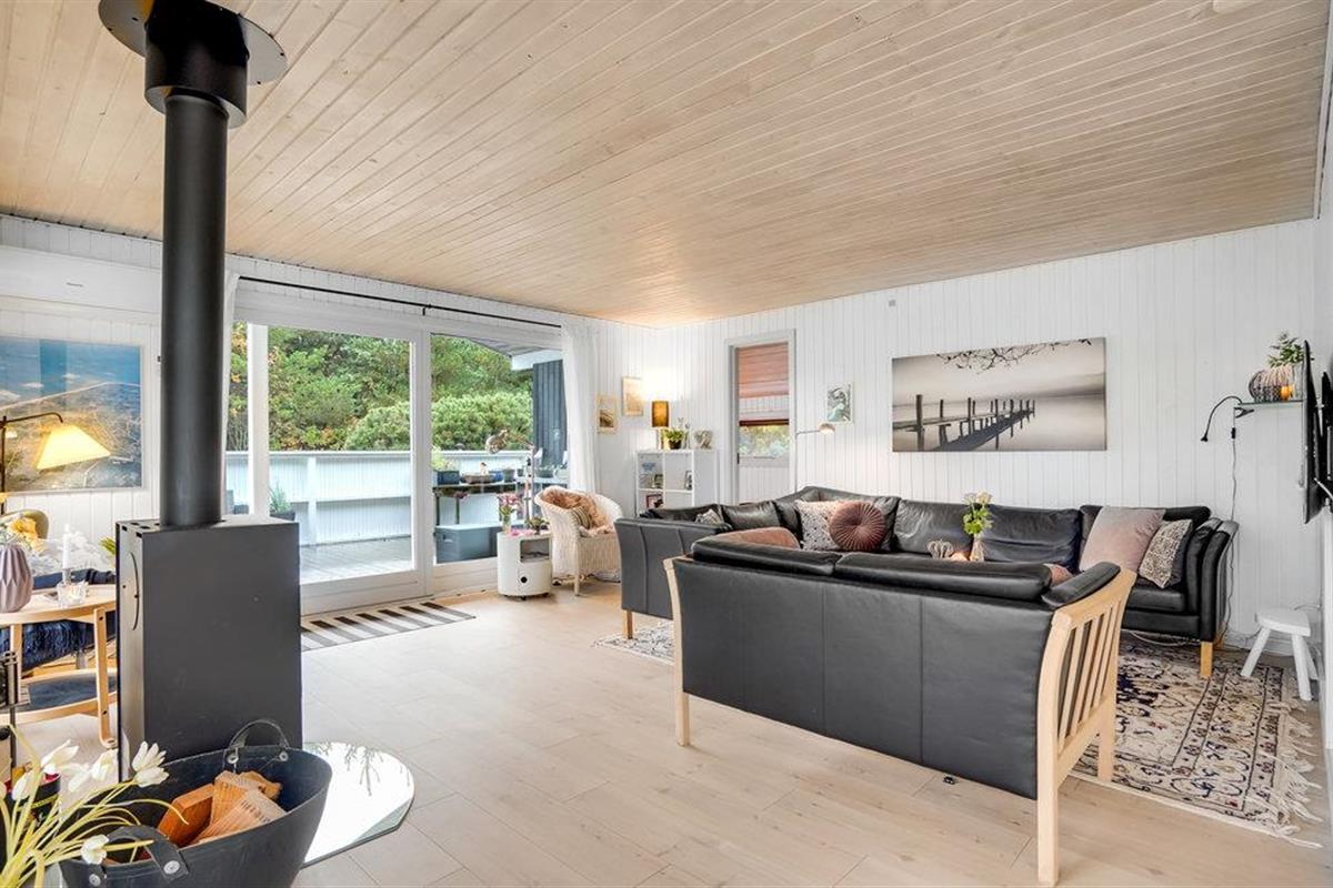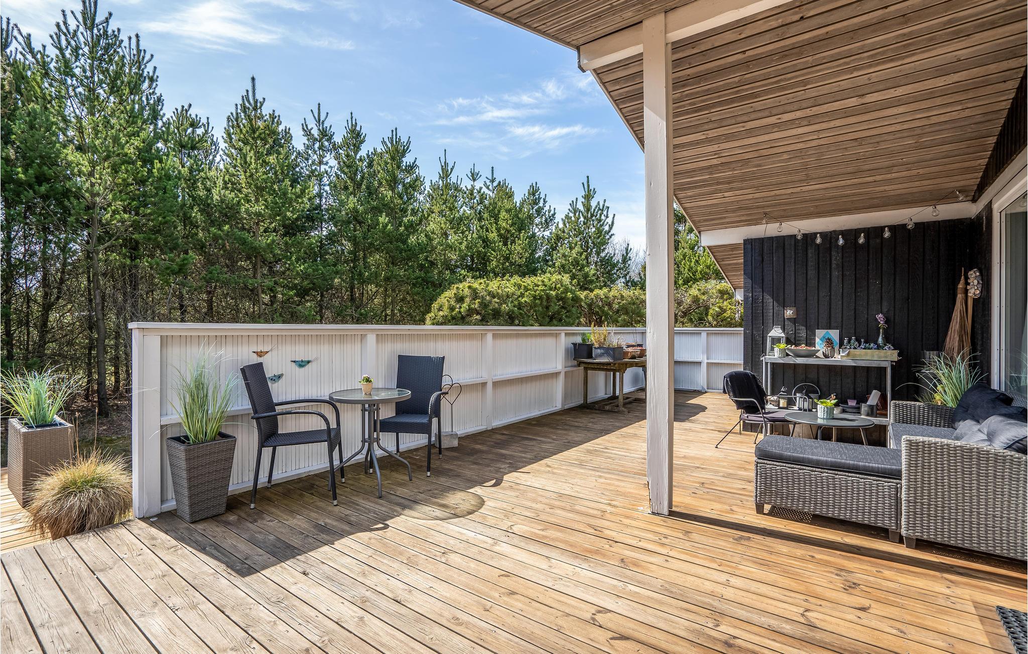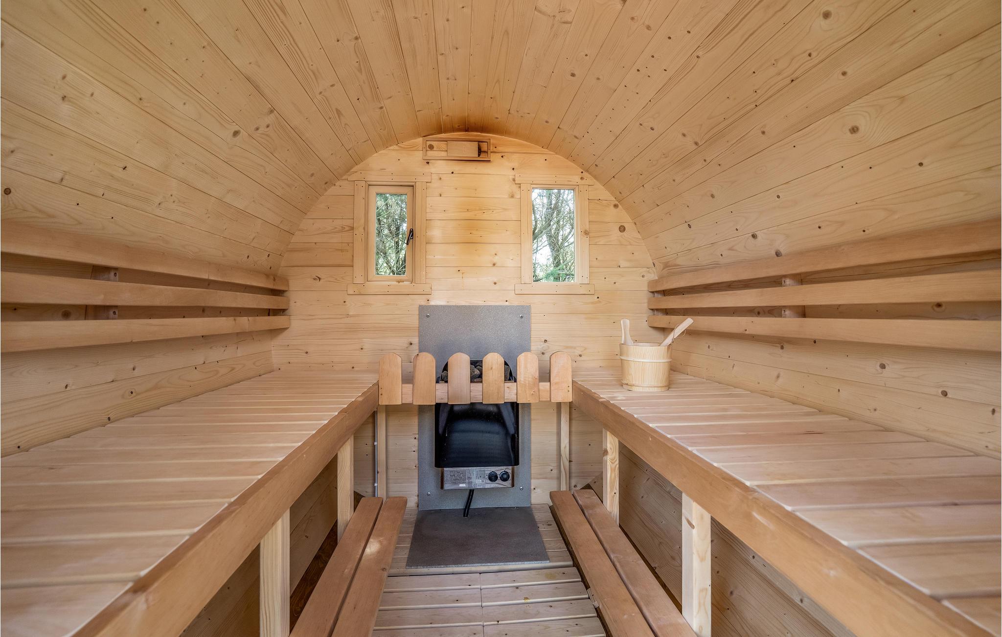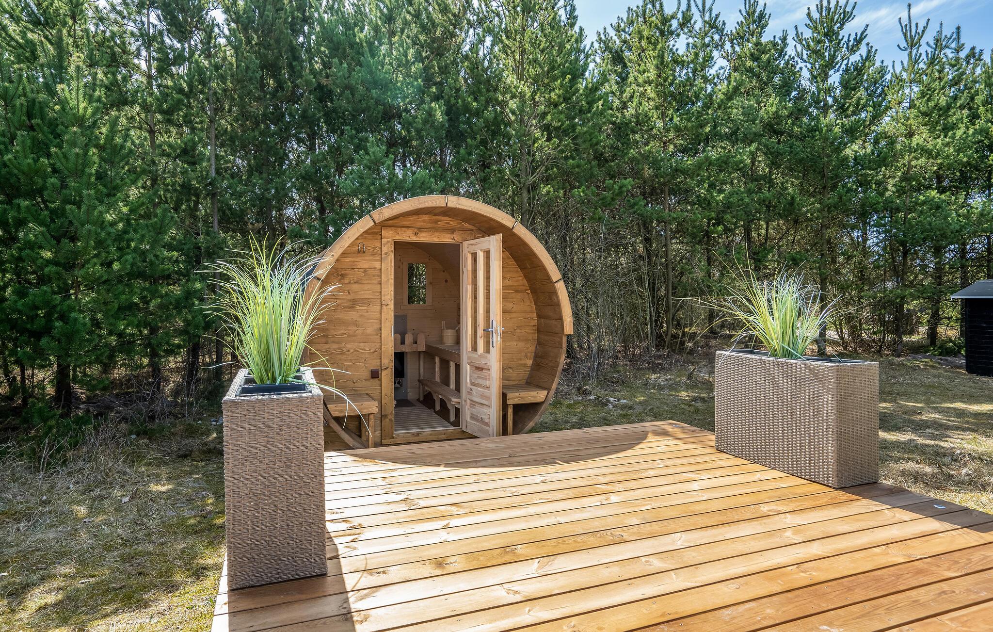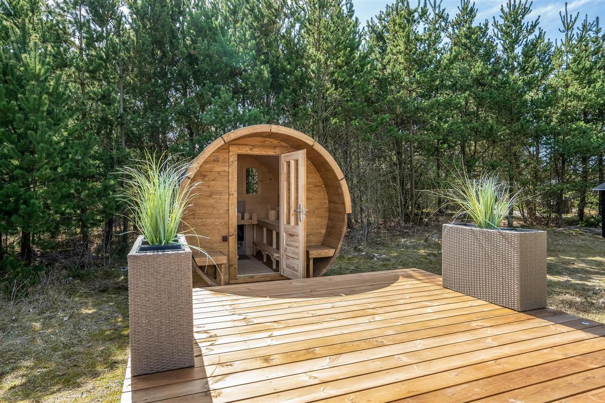 Er is veel ruimte om te spelen en te ontspannen op het prachtige, beschutte perceel. Er is ruimte voor de kleintjes om rond te rennen en een barbecue voor gezellige barbecue-avonden. Op het gedeeltelijk overdekte terras kun je 's ochtends ontbijten of de dag afsluiten met een glas wijn. Vanaf hier heb je ook toegang tot het Finse houten bad en de sauna.