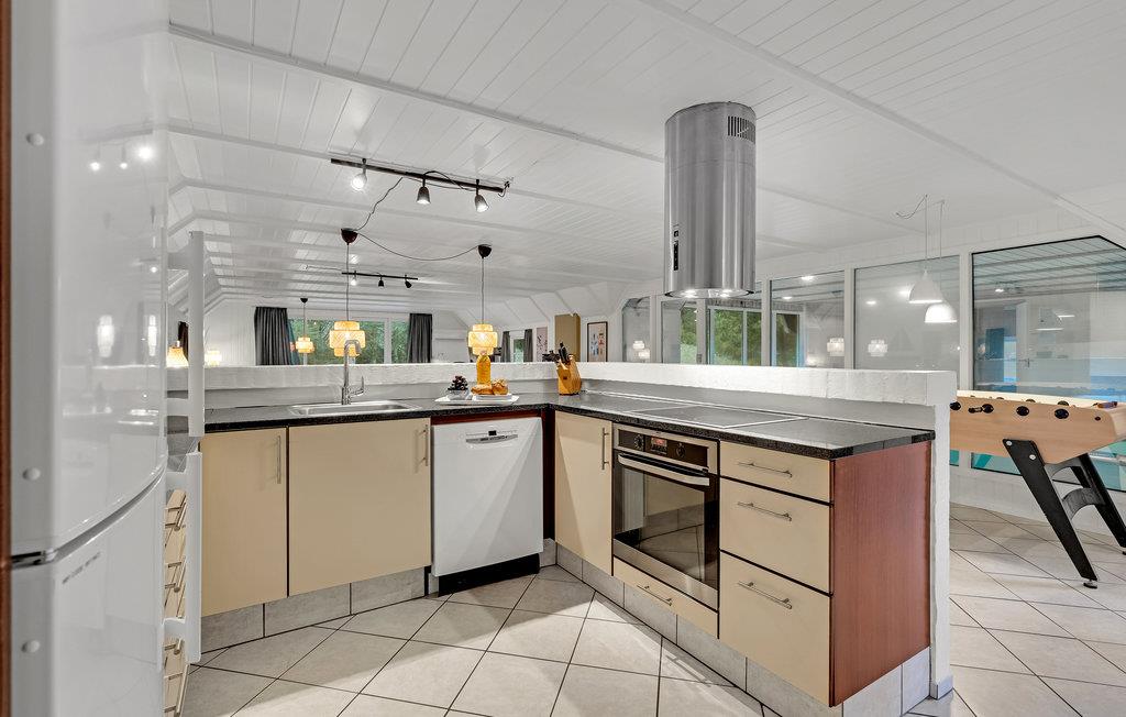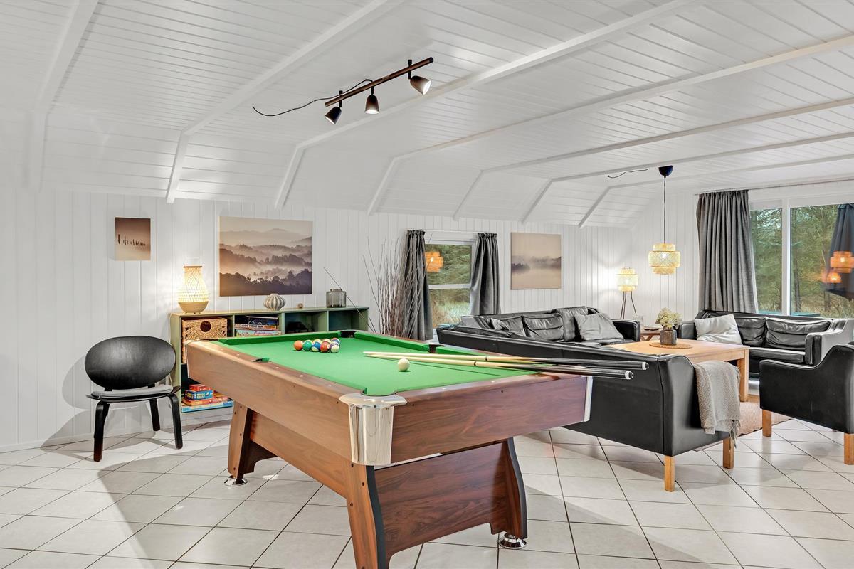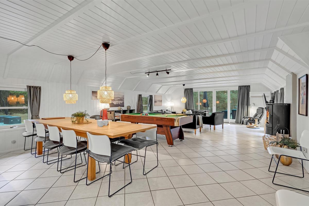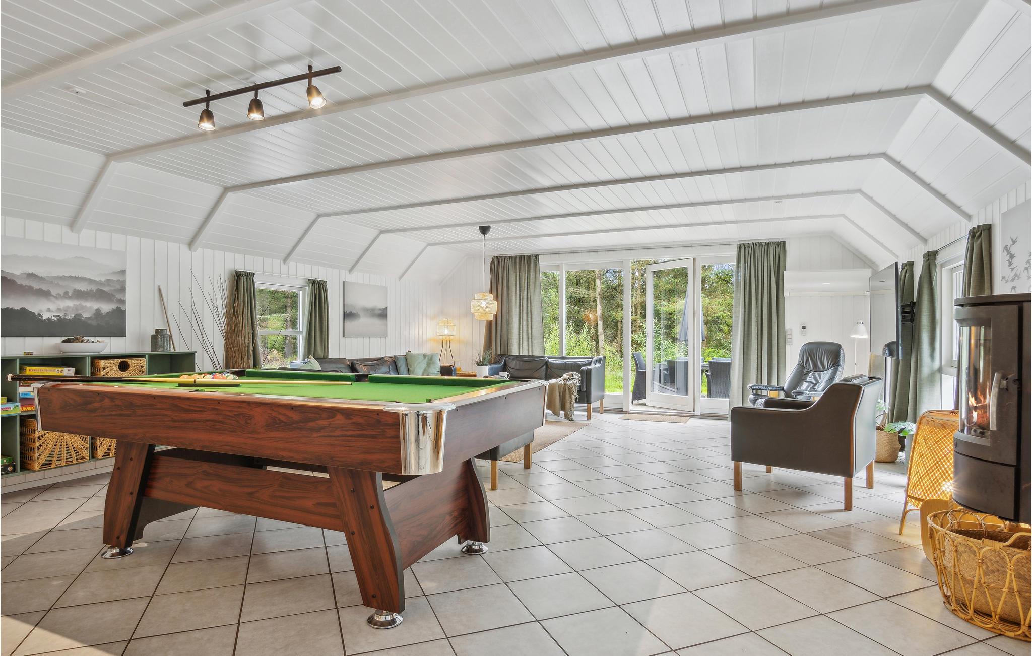 Verlangt u naar een grote familievakantie of wilt u met vrienden en familie op reis? Dan heeft u hier het ideale vakantiehuis gevonden. Alle gasten en uw viervoeters zullen zich hier thuis voelen. De grote en open leefruimte richt uw blik op het zwembad, dat slechts door een vensterfront wordt gescheiden. Uw kinderen kunnen zich dus vermaken in het zwembad terwijl u comfortabel uw koffie drinkt aan de eettafel of op de bank. Een spelletje tafelvoetbal of biljart is ook mogelijk. De verbonden woon- en activiteitenruimte belooft dus gezelligheid. De tuin nodigt ook uw kinderen uit om te spelen, want verspreid over de tuin staan speeltoestellen. In de warme maanden kunt u ook barbecueën op het terras en buiten genieten van uw vakantiemaaltijden.
