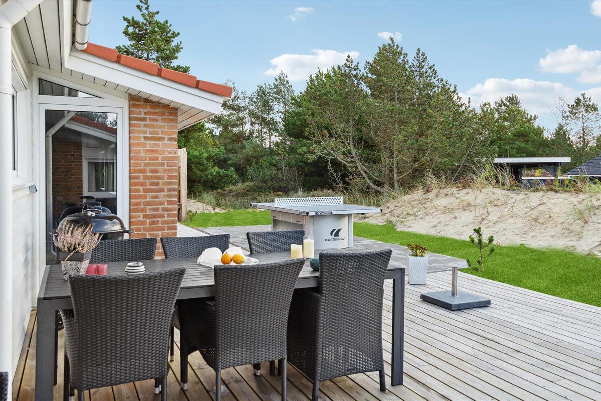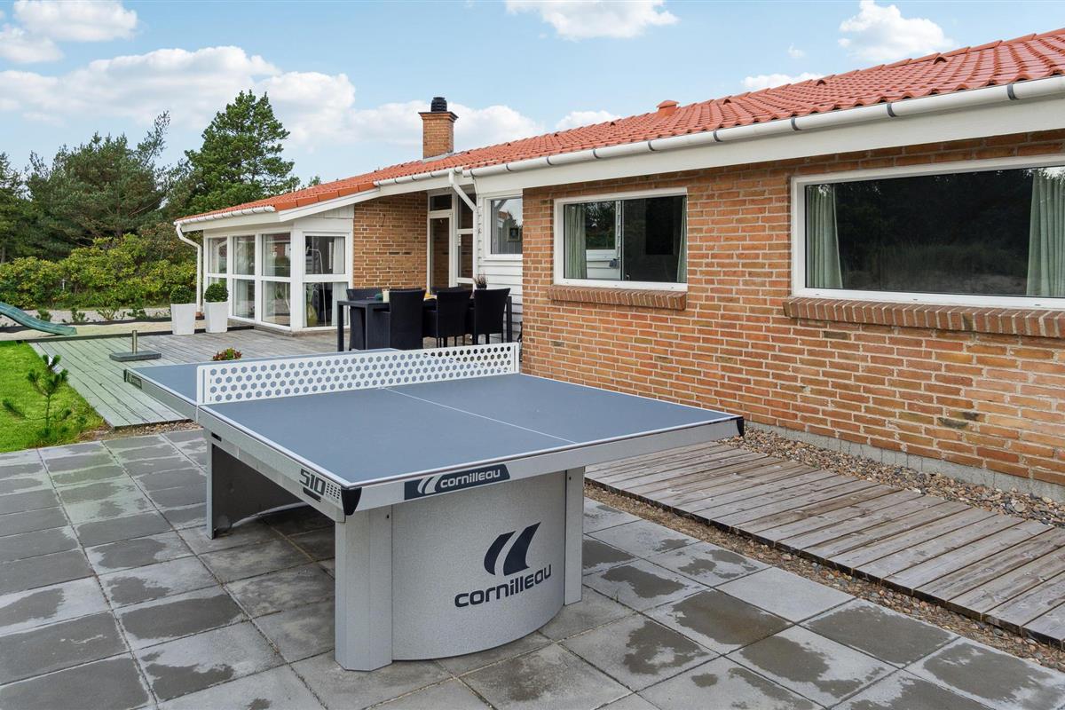 Ook de buitenruimte van het vakantiehuis heeft veel te bieden. Geniet van de zon op het terras terwijl uw kinderen vrolijk graven en spelen, daag uw medereizigers uit voor een potje tafeltennis en verzamel later de hele familie voor lekkernijen van de barbecue.