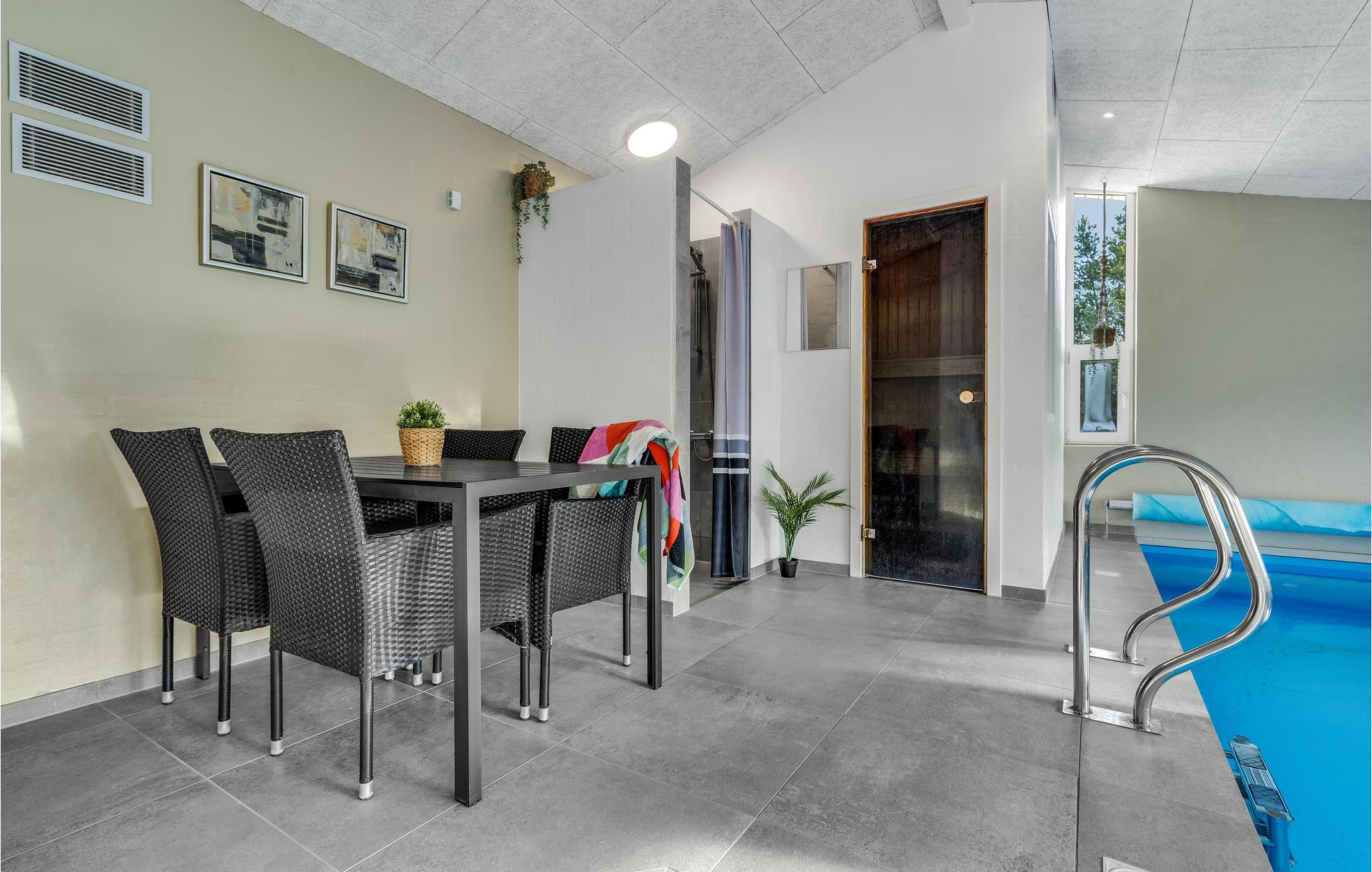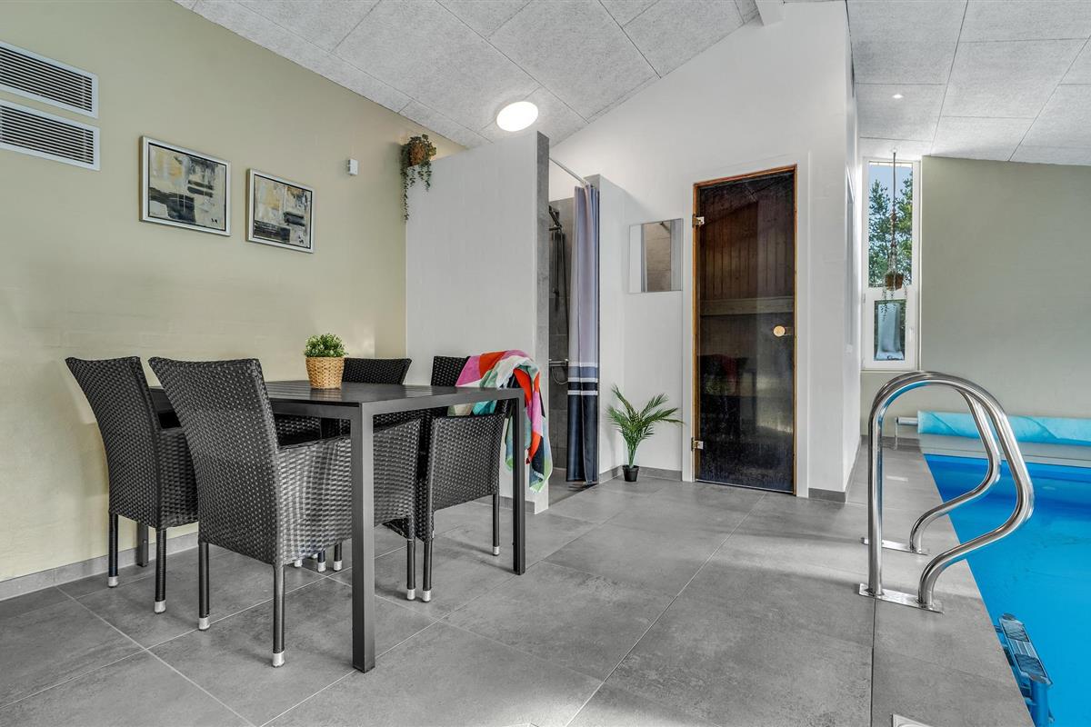 Het huis verwelkomt u op een goede locatie op loopafstand van het strand. Maak het uzelf comfortabel met een grotere familie of groep vrienden in de huiselijke kamers. Alles is hier gericht op een onvergetelijke tijd samen. Breng onvergetelijke uren door in het binnenzwembad, ontspan in de eigen sauna en maak het uzelf 's avonds comfortabel op de comfortabele stoelen in de woonkamer voor een film- of spelletjesavond.