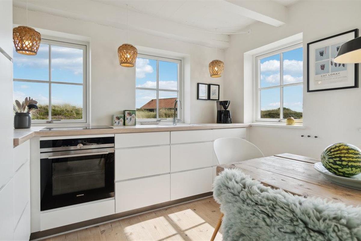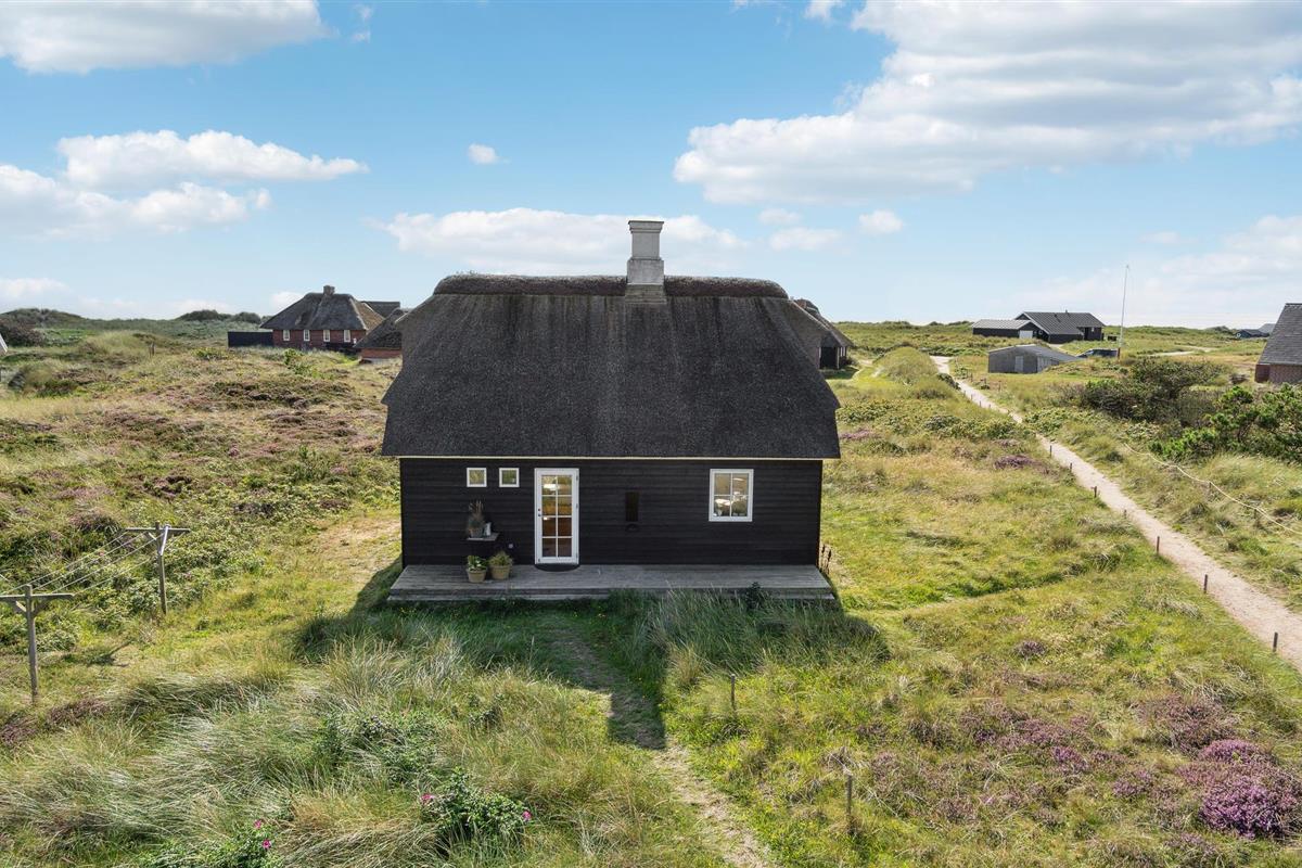 Sfeervol vakantiehuis met rieten dak en zeezicht in het duinlandschap van Blåvand.