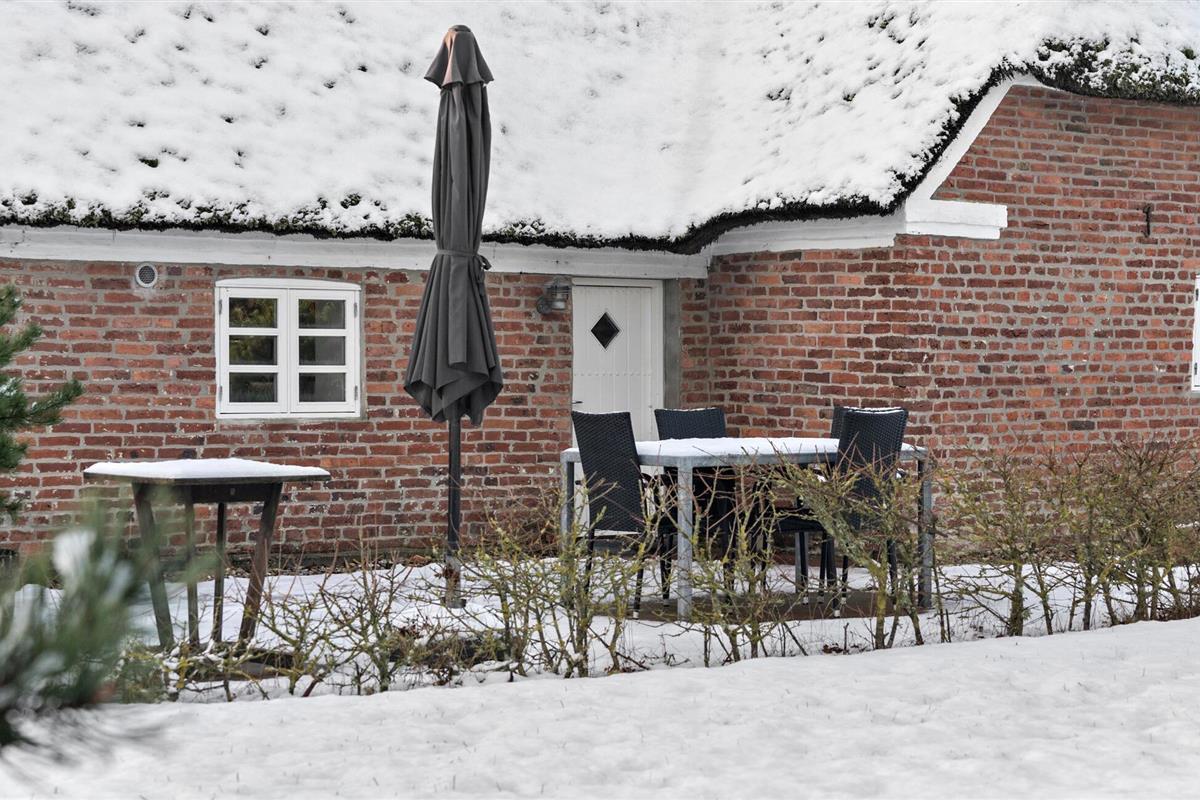 De buitenruimte wordt gekenmerkt door het klassieke gebouw van rode bakstenen en een uitnodigend terras omringd door een vredig winterlandschap. Geniet van de milde ochtendzon met een vers gezette koffie op je terras en geniet van de vredige sfeer.