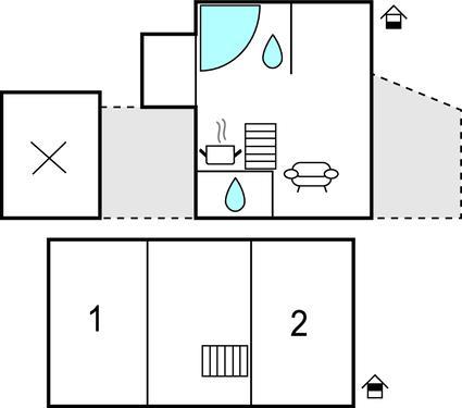 Badkamer (nr. 2) - Toilet: warm en koud water. Douche