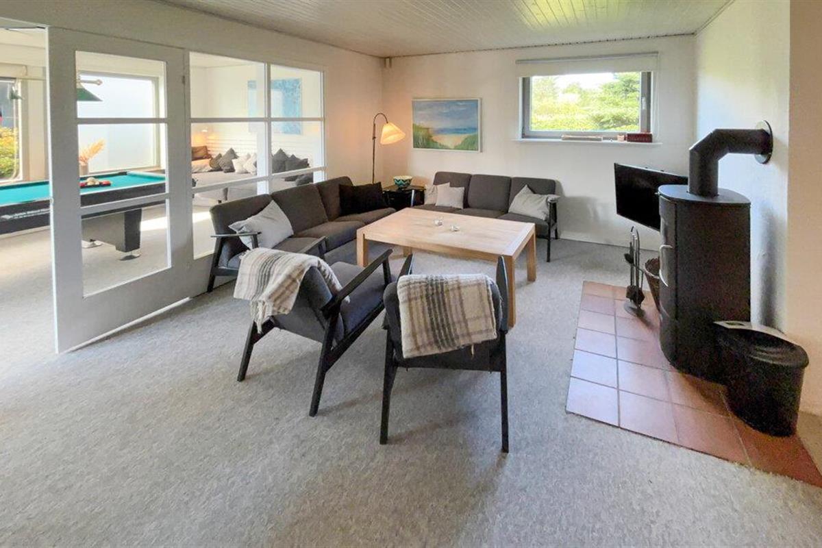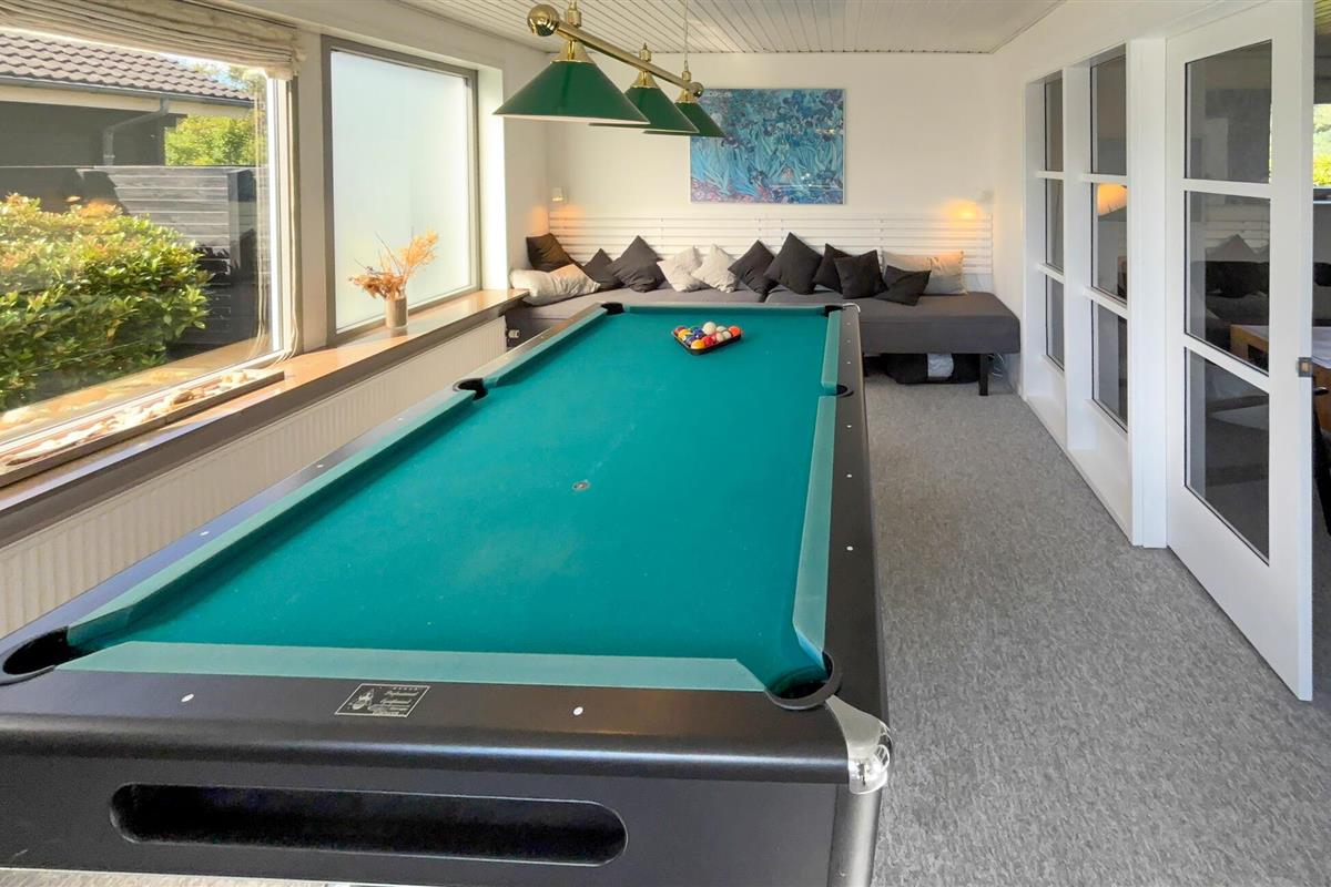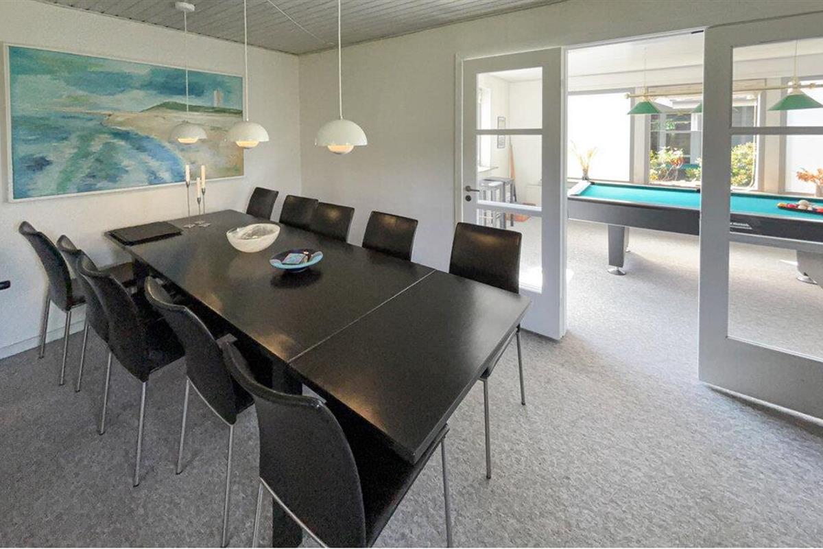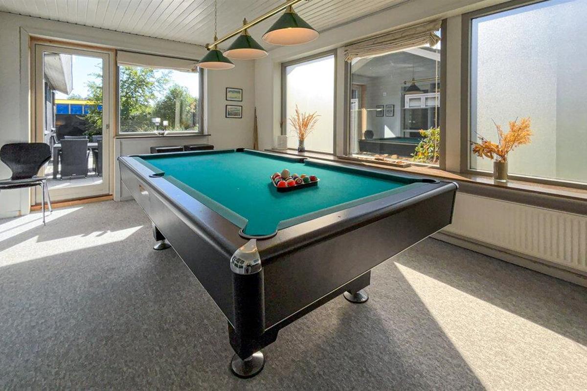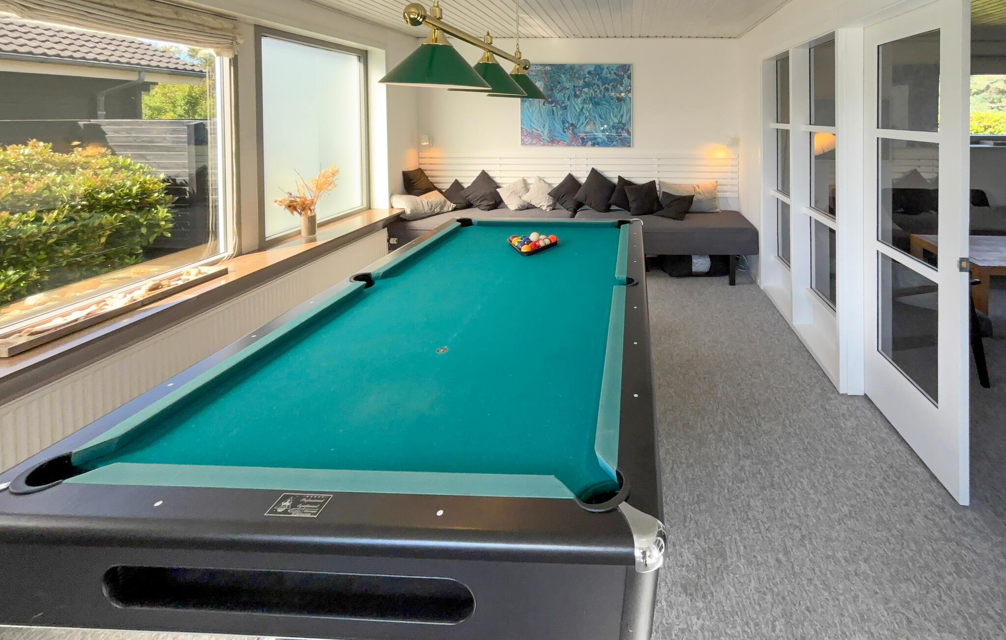 Ruim vakantiehuis in Blåvand met gezellige inrichting, pooltafel en serre, ideaal voor een ontspannen gezinsvakantie.