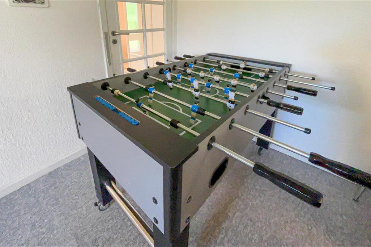 Je vakantiehuis verwelkomt je met een vriendelijke sfeer, veel licht en een gezellige inrichting. De woonkamer zal snel het centrum van het gezinsleven worden, terwijl de ruime keuken uitnodigt om samen te koken. Hier kun je bakken met de kinderen of je favoriete gerechten bereiden in een ontspannen sfeer. De pooltafel en tafelvoetbaltafel zijn ook erg leuk voor het hele gezin.