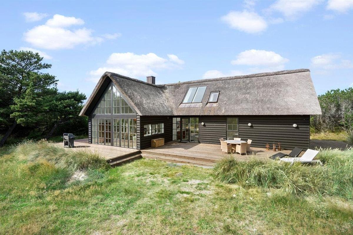 Heerlijk vakantiehuis in Blåvand met modern comfort en prachtig uitzicht op het groene landschap.