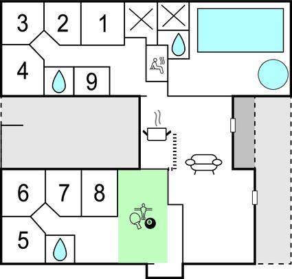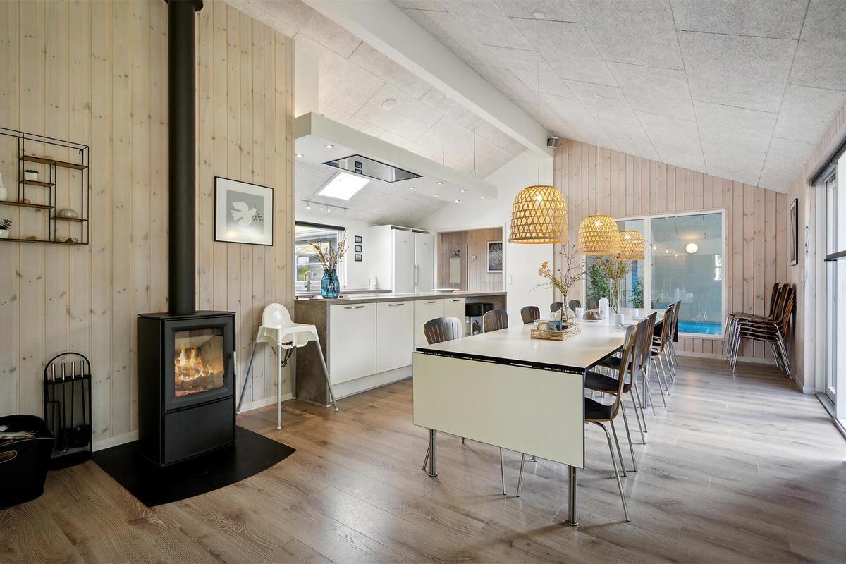 In Blåvand, dicht bij de vuurtoren Blåvandshuk en de bruisende Noordzee, wacht dit prachtige vakantiehuis voor 21 personen met zwembad op u. U woont hier niet alleen dicht bij de zee, maar u kunt ook urenlang ravotten in het eigen zwembad met waterglijbaan, golfslagbad en volleybalnet met plezier voor alle waterratten. Als u liever ontspant, nodigen de sauna en de grote whirlpool uit tot pure wellness. Activiteiten en spelletjes zijn er ook in overvloed in het huis, zoals biljart, tafeltennis, tafelvoetbal, darts en ook een Wii en een Playstation 4. Bovendien kunt u versnaperingen uit de bar met koelkast halen.