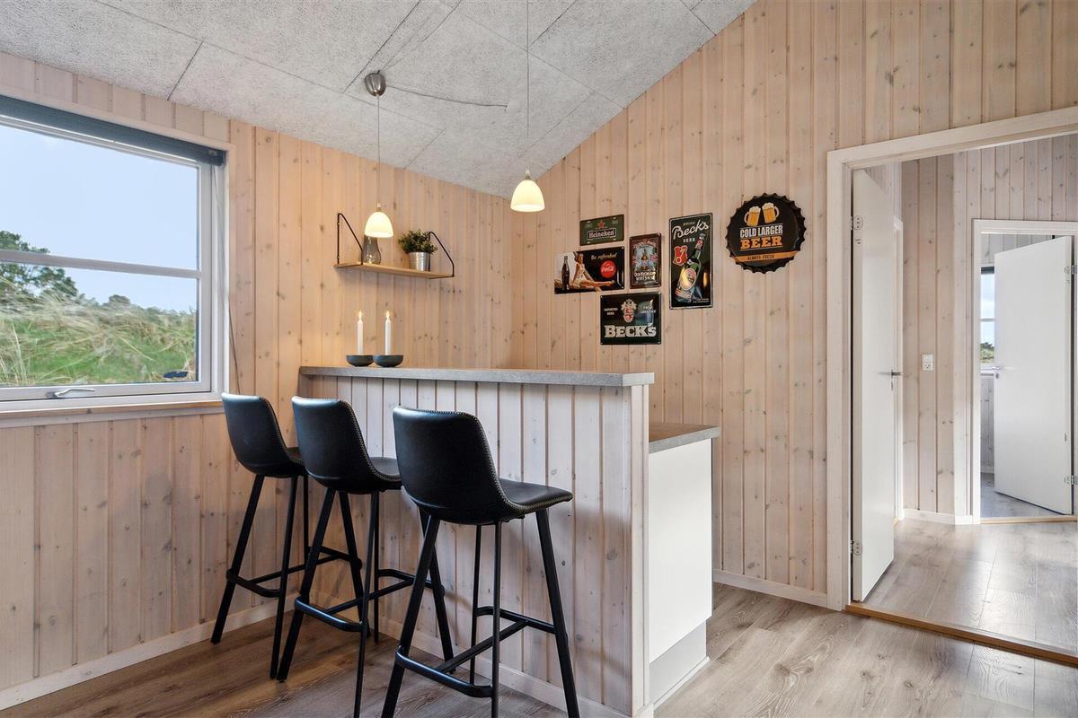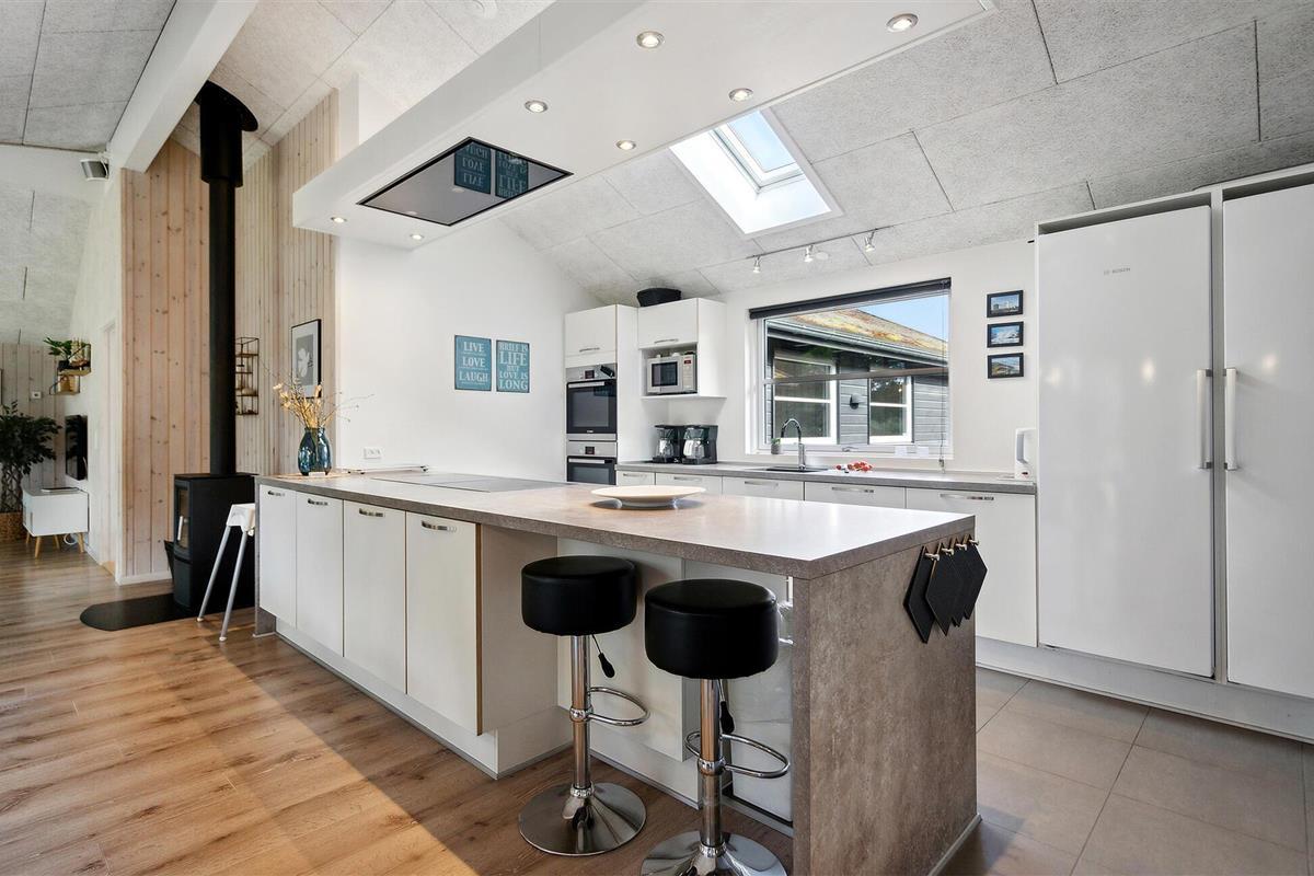 De overdekte buitenkeuken met gootsteen en barbecue nodigt uit tot spannend koken, en u kunt de heerlijke zomerdagen ontspannen doorbrengen op de terrassen rond het huis in het uitnodigende tuinmeubilair. Als u een wandeling of een excursie wilt maken, kunt u gemakkelijk naar de Noordzee of naar de vele gezellige restaurants en winkels van Blåvand.