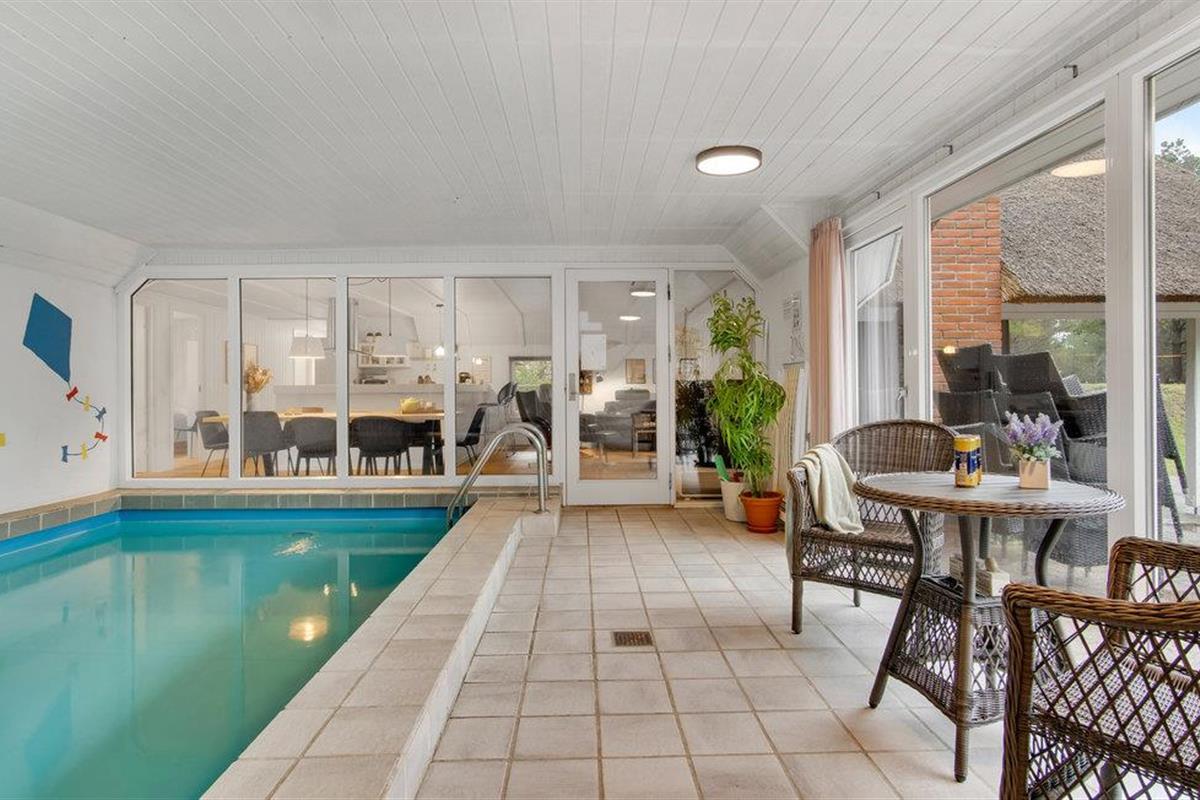 Geniet van een luxe poolhouse met zwembad, sauna en terrassen nabij strand en stad in Blåvand.