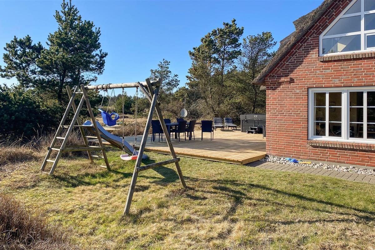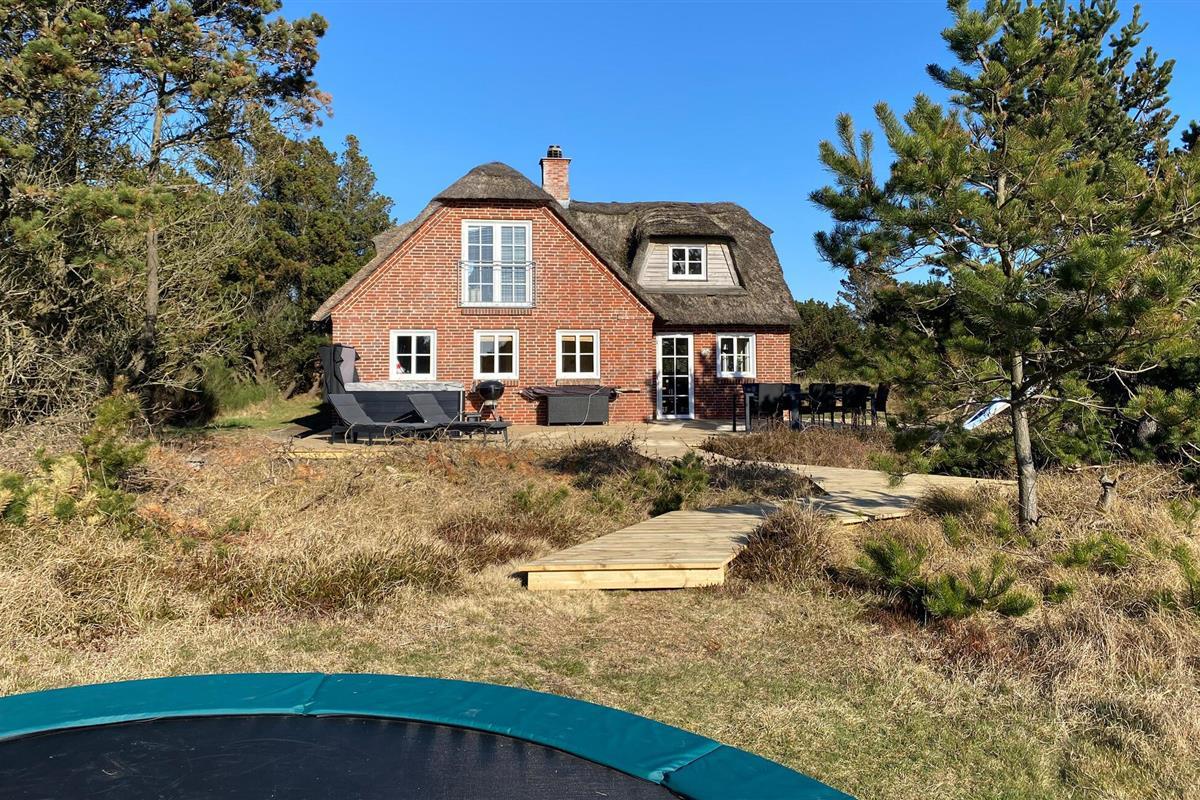 Charmant vakantiehuis bij Blåvand strand met trampoline, sauna, en elektrische oplaadpunt, perfect voor actieve gezinnen.