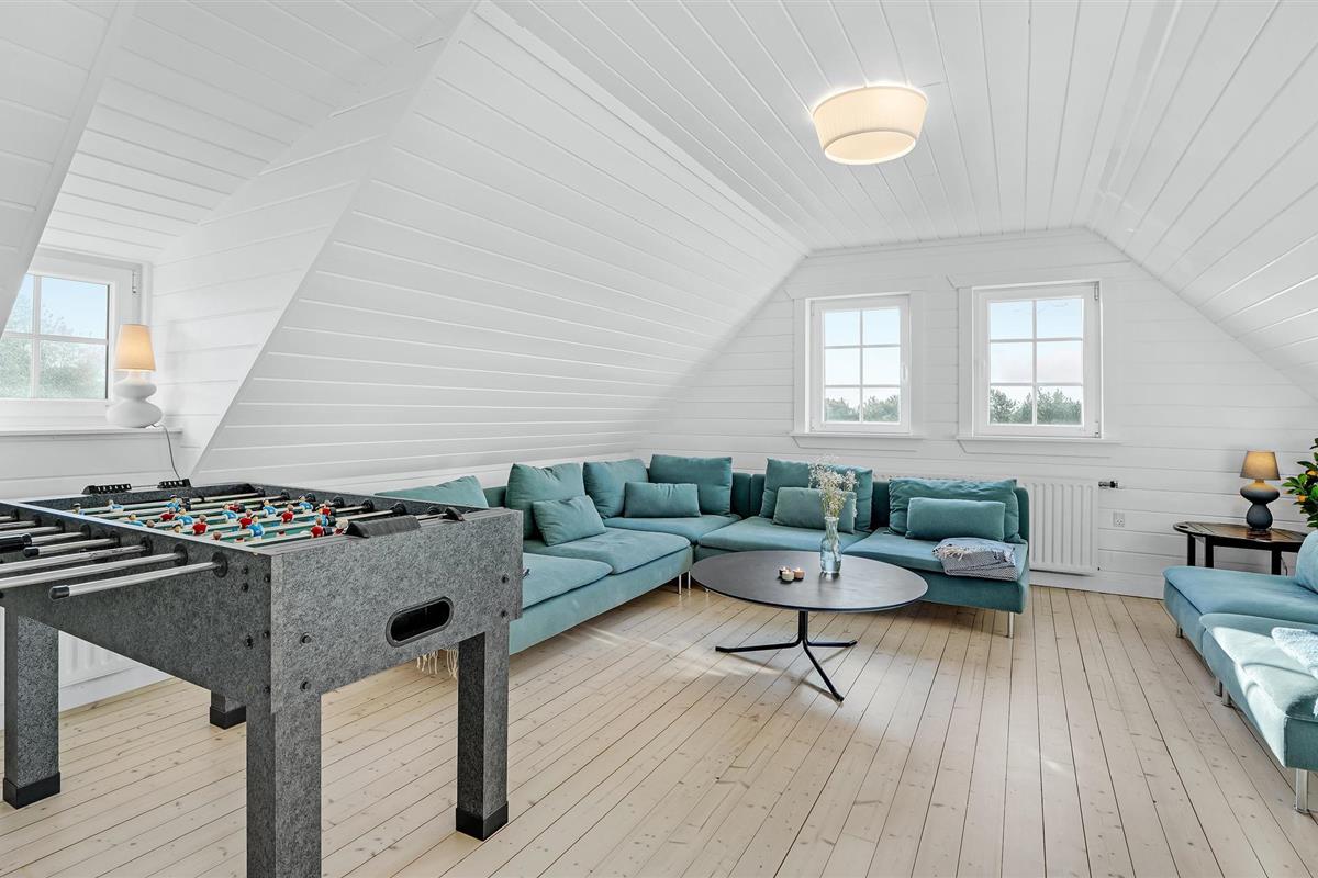Niet ver van Blåvand bij de duinlandschappen en de witte zandstranden van de fascinerende Noordzee wacht dit huis op u en uw gezin. De kamers zijn ruim, licht en goed uitgerust en maken een moderne, sfeervolle indruk. De raamgevel zorgt voor veel natuurlijk licht tijdens de maaltijden en een prachtig uitzicht op de omgeving. Hier kunt u zich vermaken aan de tafelvoetbaltafel of ontspannen in de wellnessruimte. Ga in de koelere seizoenen na een dag in de buitenlucht naar de sauna of geniet van de gezellige warmte voor de Biio kachel.