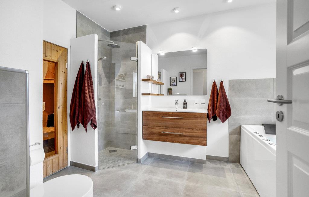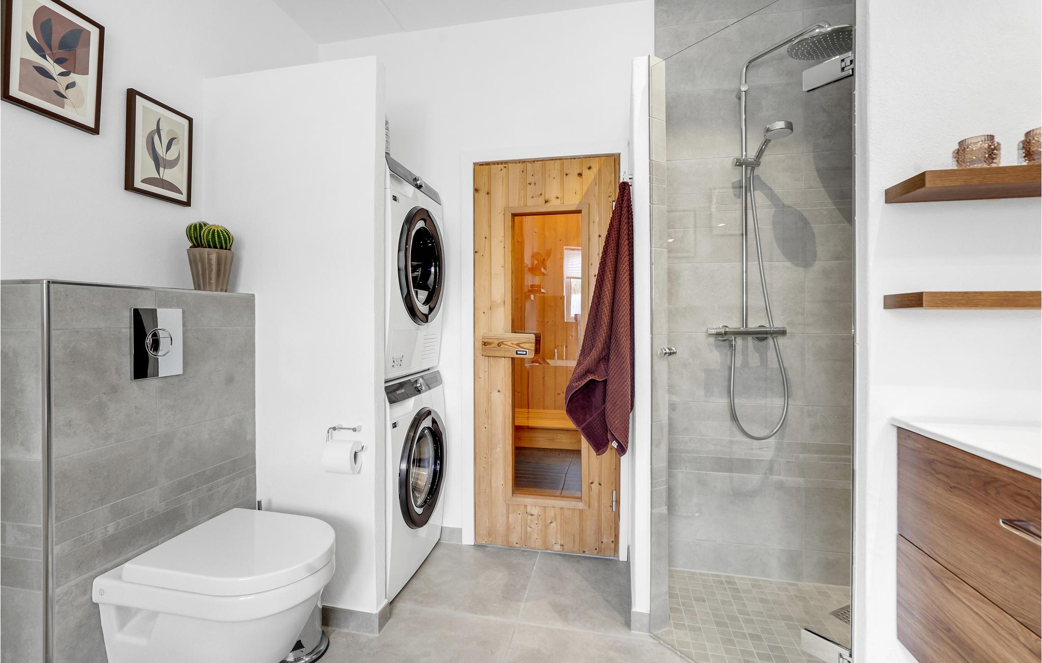 Bereid uw lekkernijen in de keuken en breng gezellige uren door aan de eettafel tijdens de maaltijden. De woonkamer is een ideale plek voor ontspanning, waar u in een van de hoeken een goed boek kunt lezen of een spelletjesavond kunt houden. In de badkamer nodigt de whirlpool uit tot ontspannen en genieten. Op koelere dagen kunt u ook naar de sauna gaan om op te warmen na een dag in de frisse lucht.
