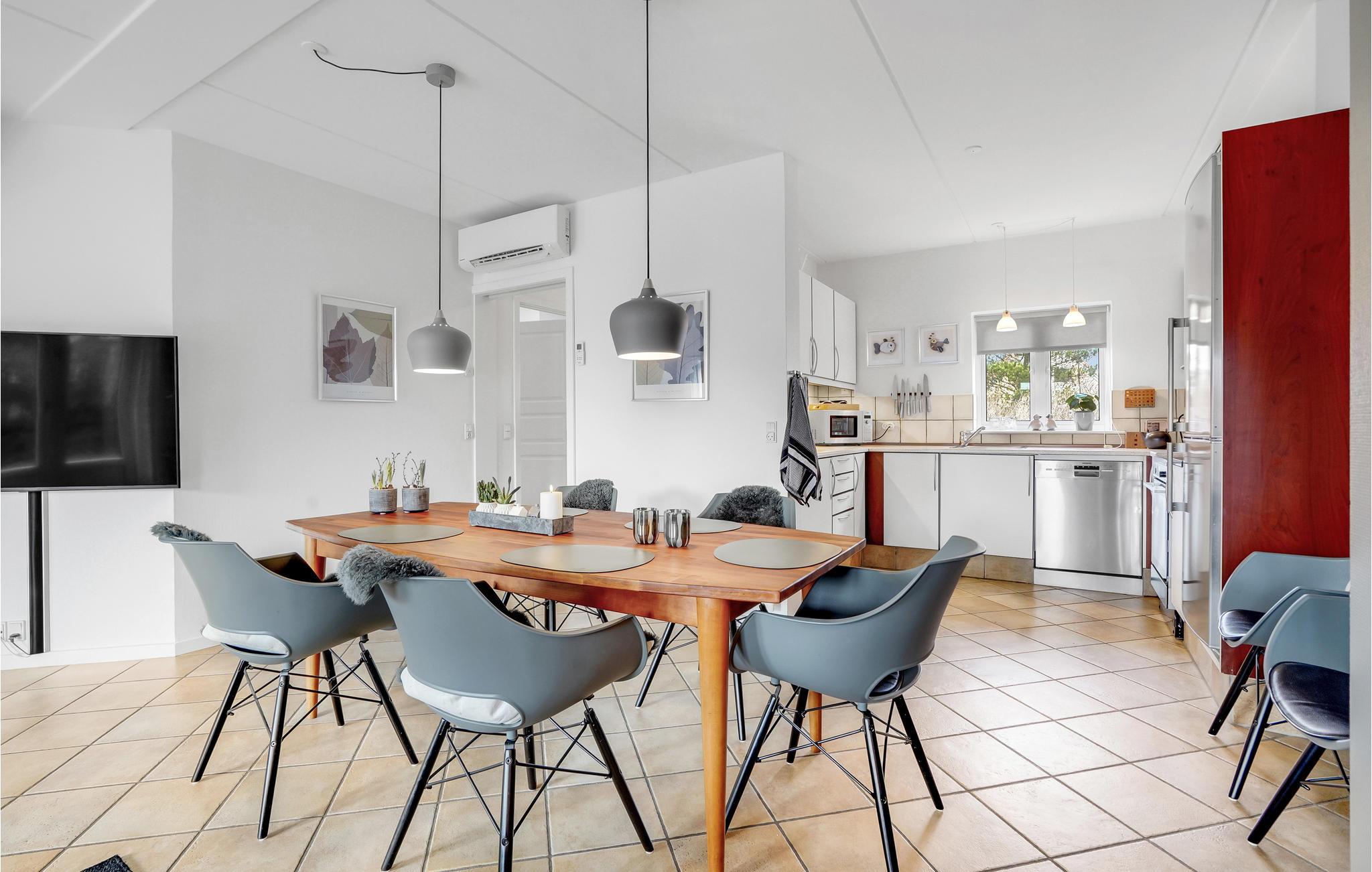 Dicht bij het centrum van de populaire badplaats Blåvand wacht dit charmante rijtjeshuis op u. Het moderne huis is ingericht in lichte kleuren met veel mooie details. De hoogwaardige, praktisch ingerichte kamers worden gedomineerd door een huiselijke sfeer en maken een zeer goede indruk. zodat u zich meteen welkom zult voelen.