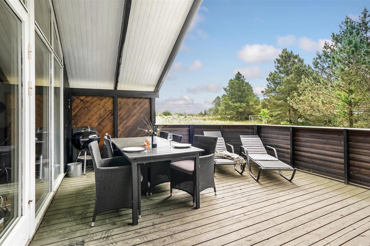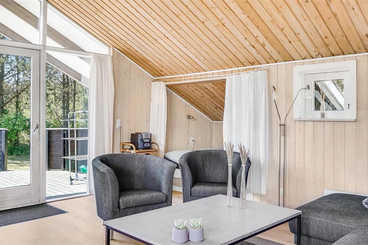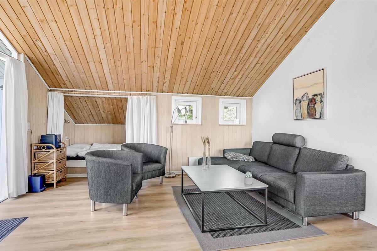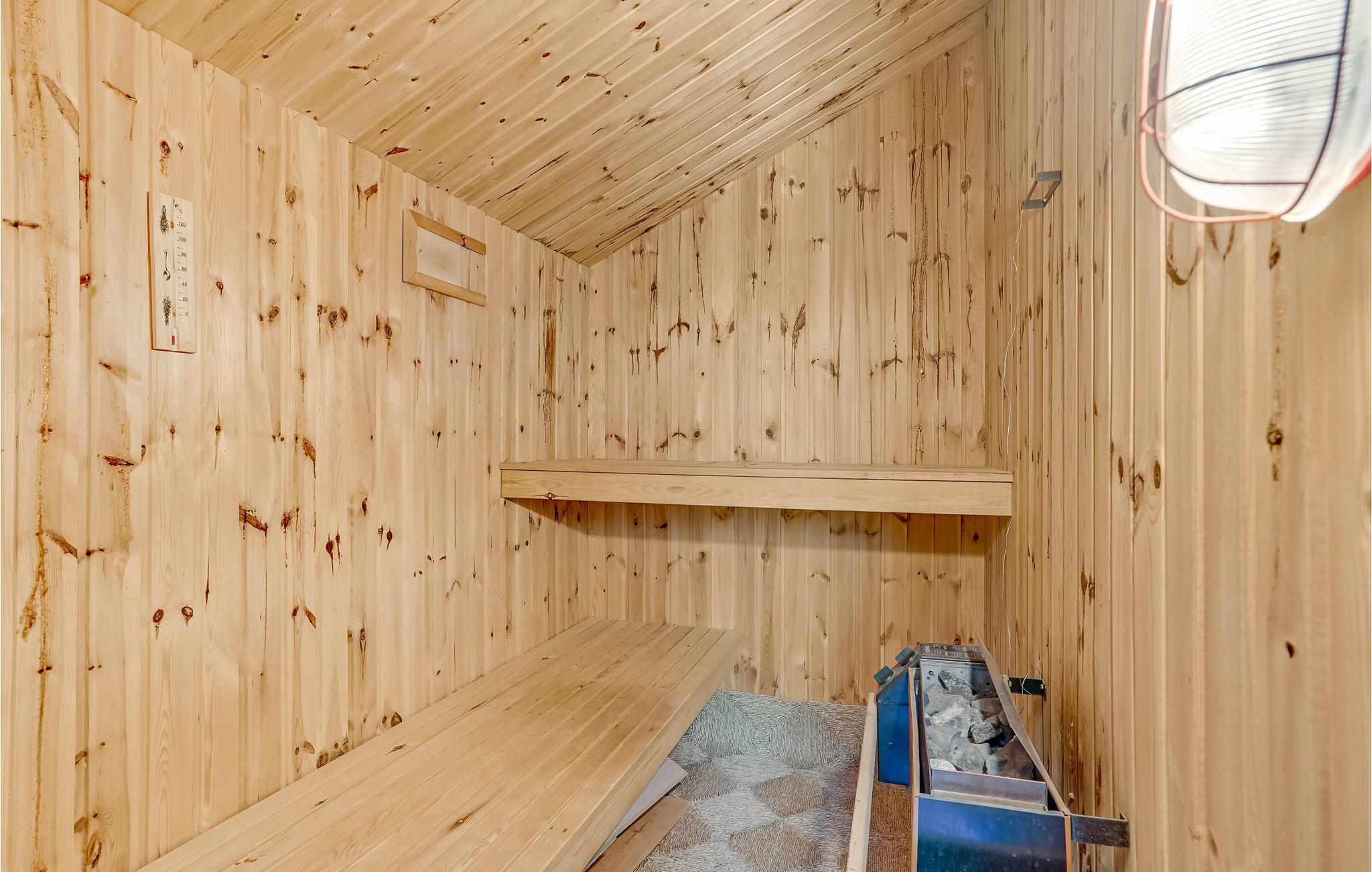 Doe alsof je thuis bent in de open woonkamer van je vakantiehuis in Blåvand met keuken, eettafel en comfortabele bank. De houtkachel zorgt voor gezellige warmte en het grote raam aan de voorkant met uitzicht op het gedeeltelijk overdekte terras laat veel licht in het huis. De eigen sauna belooft ontspanning voor lichaam en geest aan het eind van de dag.