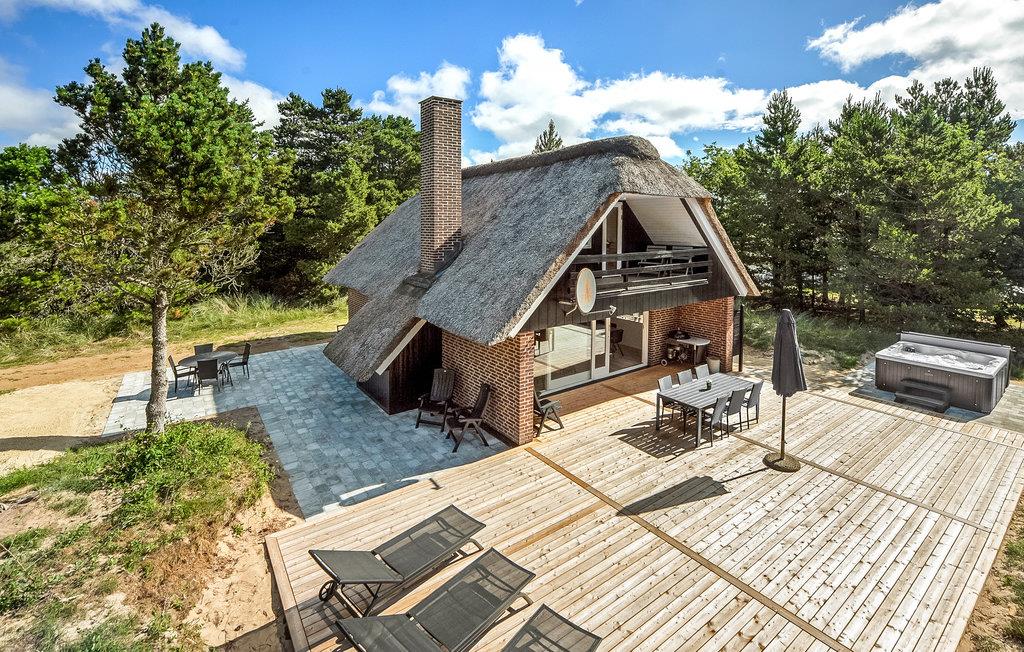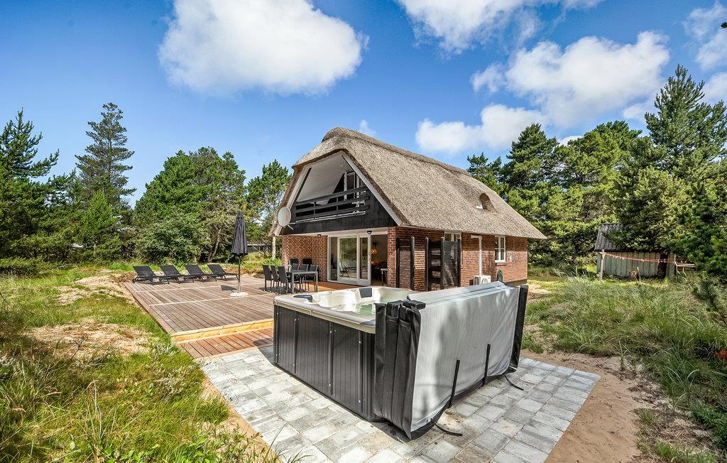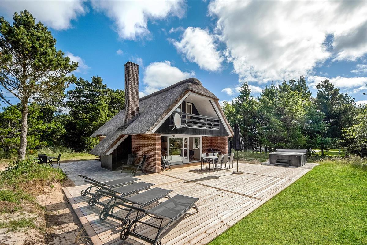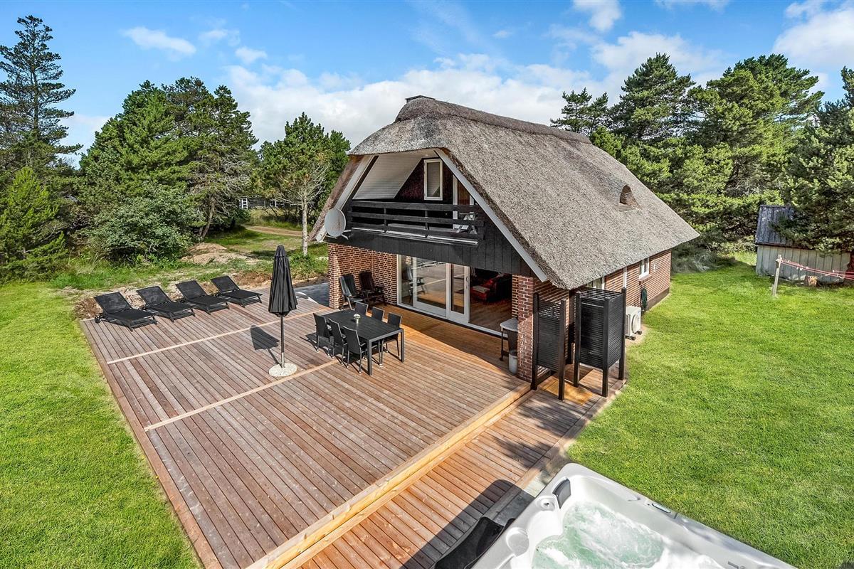 Charmant rietgedekt vakantiehuis in Blåvand met buitendouche, bubbelbad en dichtbij het strand.