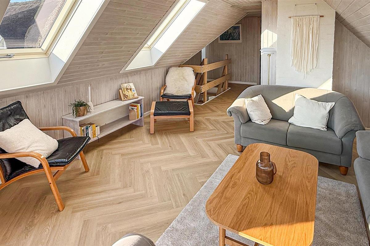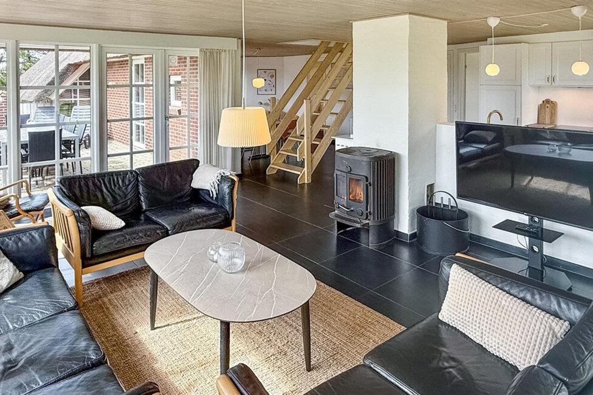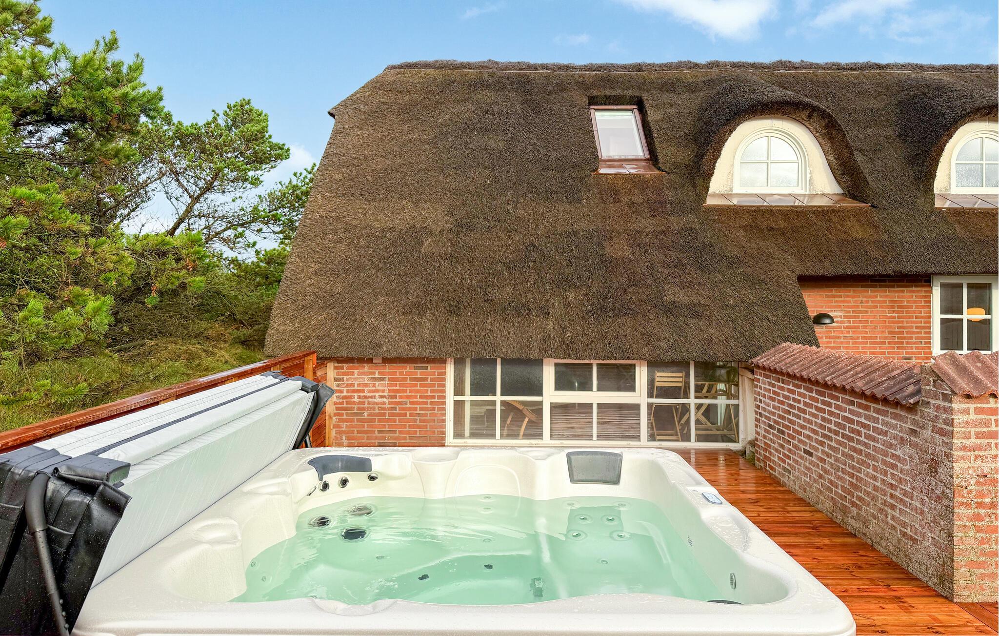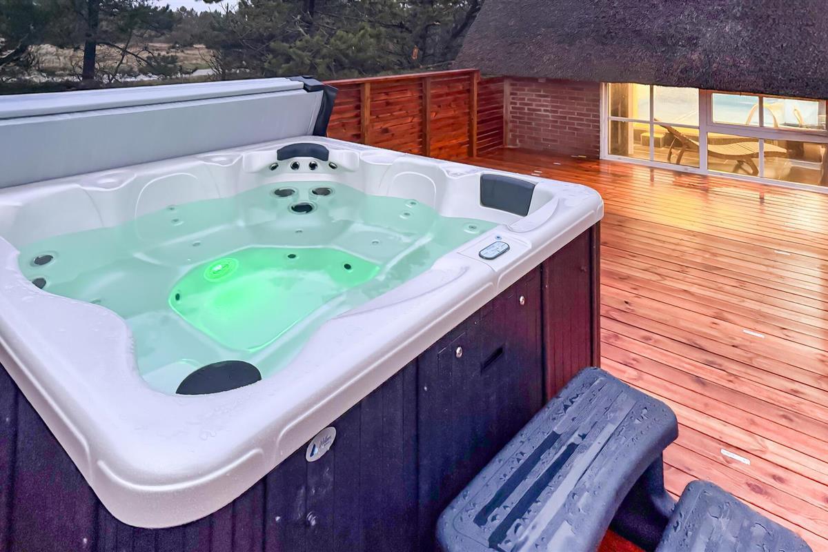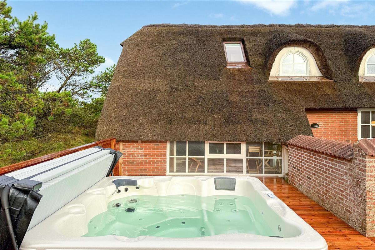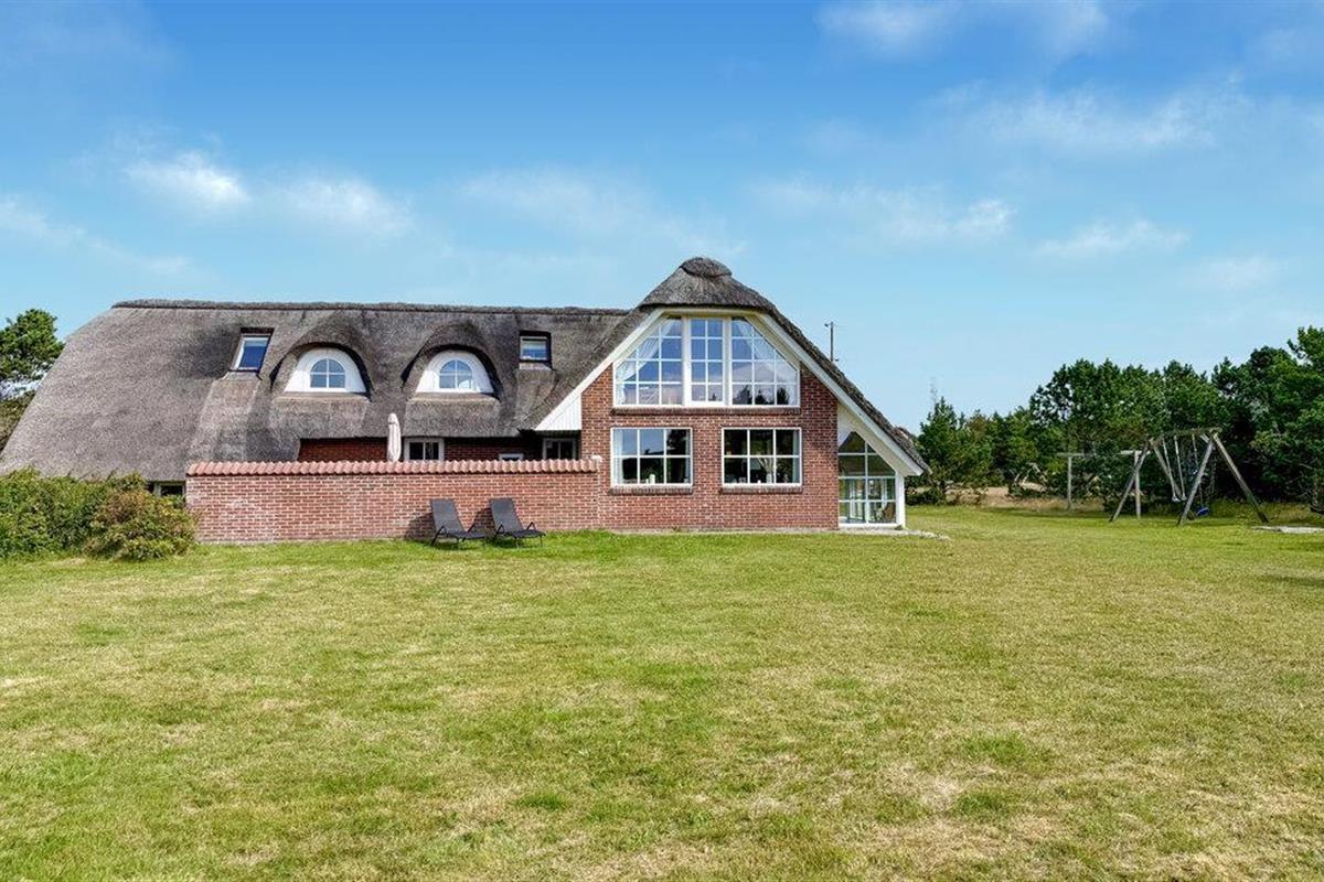 Hier vindt u een prachtig vakantiehuis met een rieten dak op een prachtige locatie. U kunt vanaf hier daadwerkelijk de Noordzee zien, vooral vanaf de 1e verdieping heeft u een prachtig uitzicht. Het huis bevat alles wat bijdraagt aan een ontspannen verblijf: zwembad, 6 persoons whirlpool, een infrarood sauna en een activiteitenruimte op de 1e verdieping die uitnodigt tot gezellige wedstrijdjes. Wilt u de omgeving verkennen? Bezoek dan de vuurtoren en geniet van het uitzicht tot aan het molenpark. Een wandeling door het stadje Blåvand is een interessante ervaring. Hier vindt u tal van gespecialiseerde winkels, restaurants, supermarkten en cafés, en niet te vergeten volop vertier tijdens de zomermaanden.