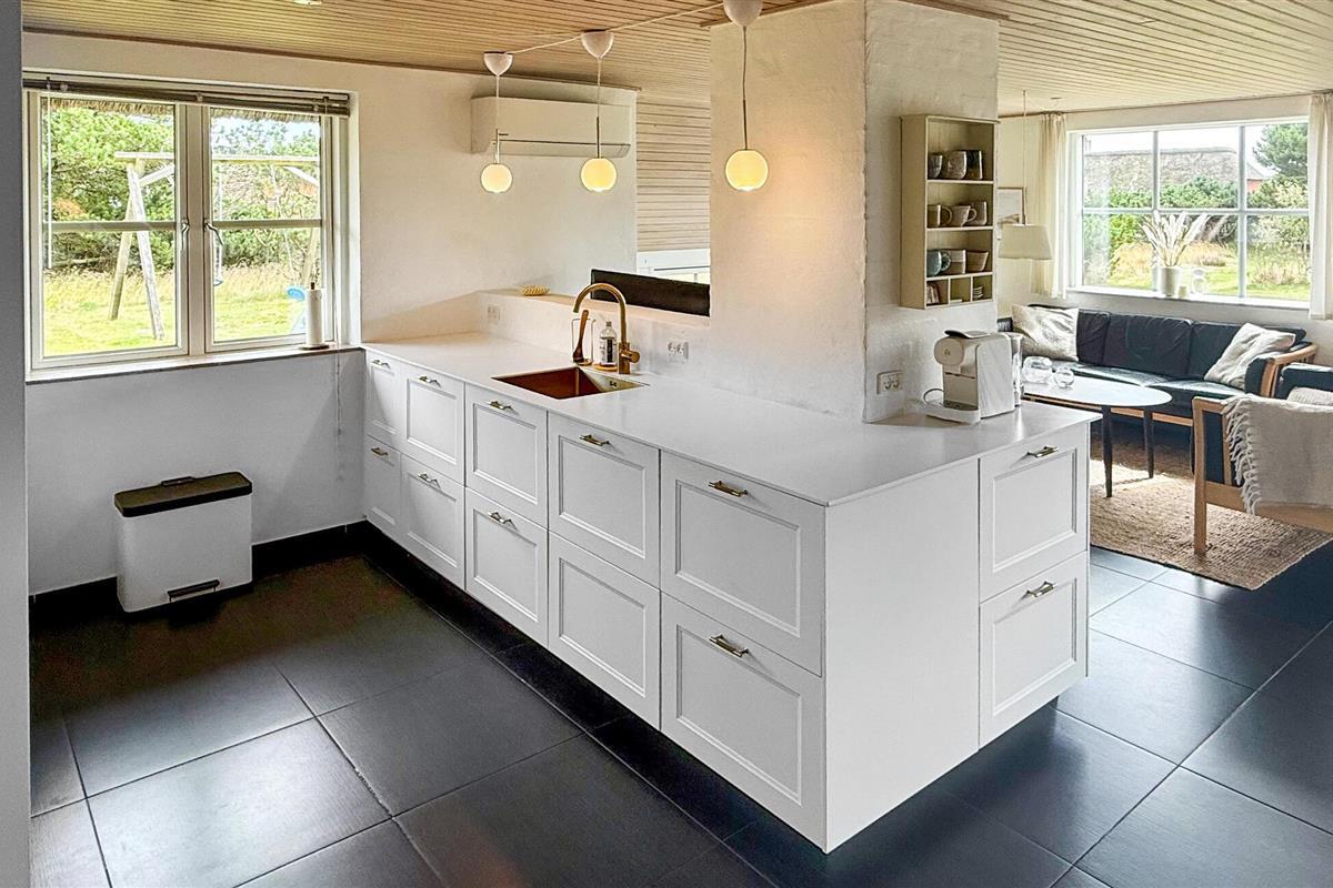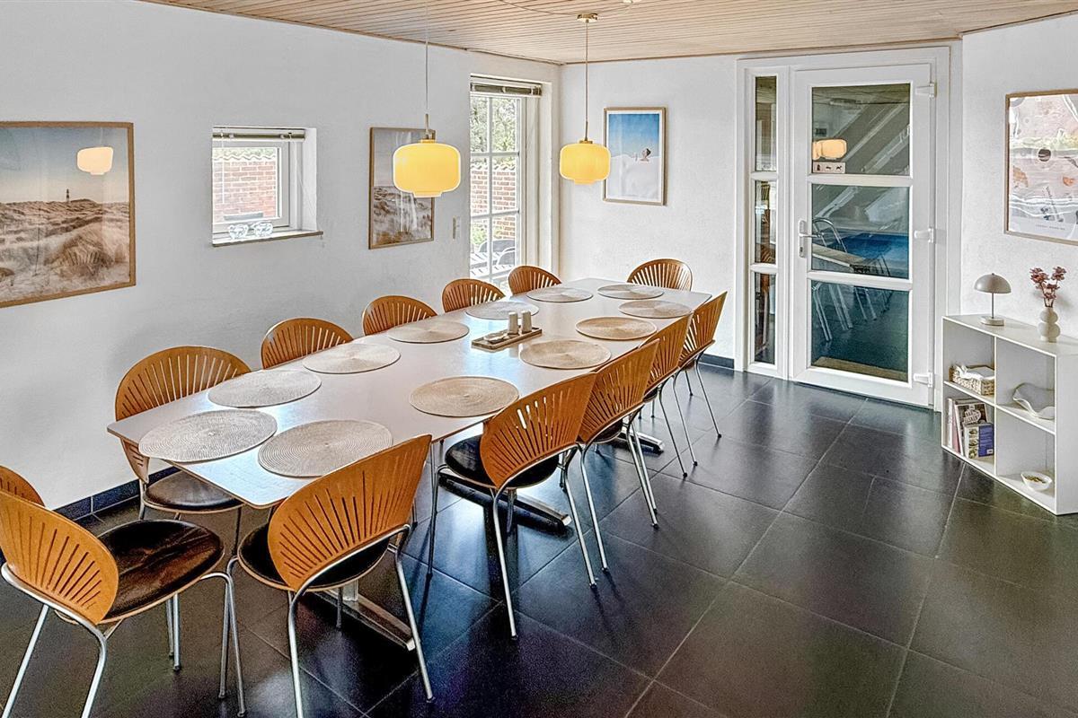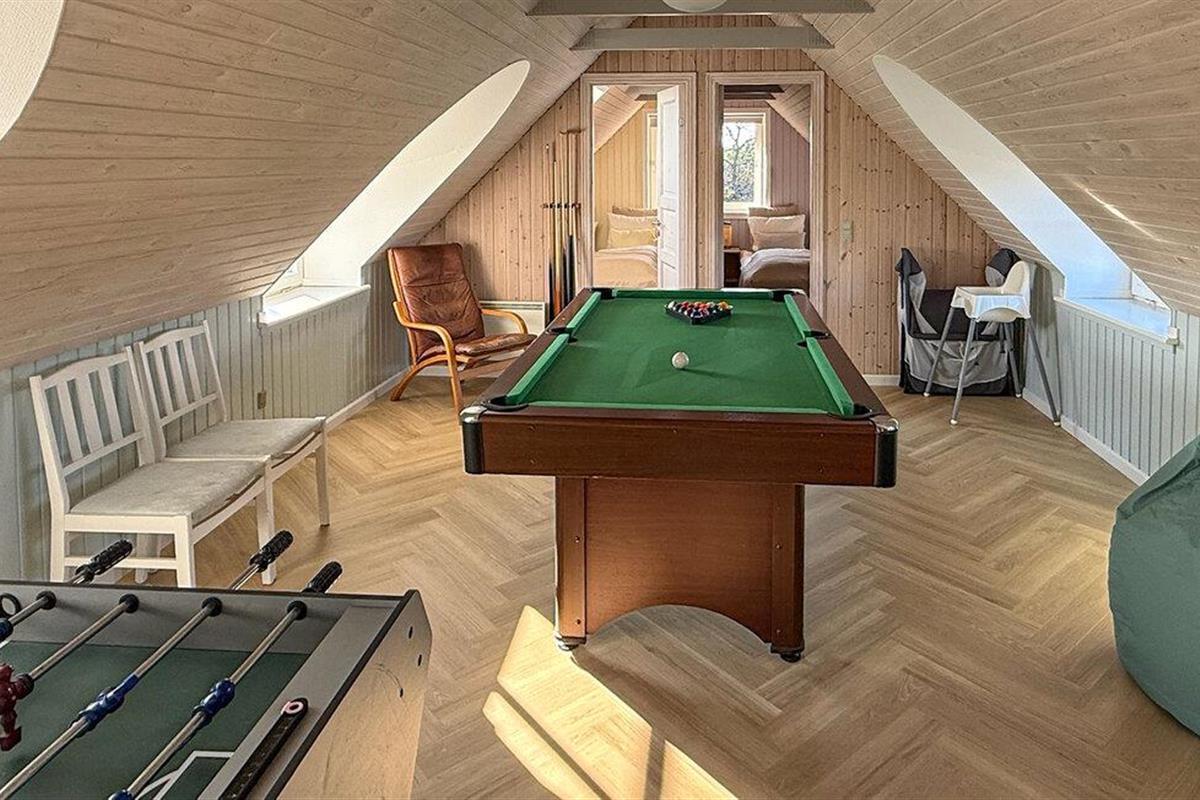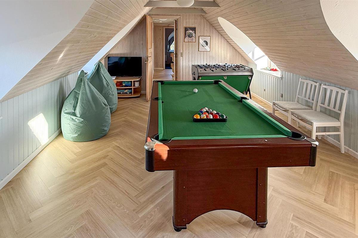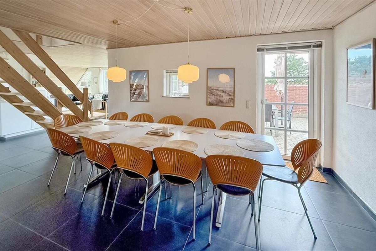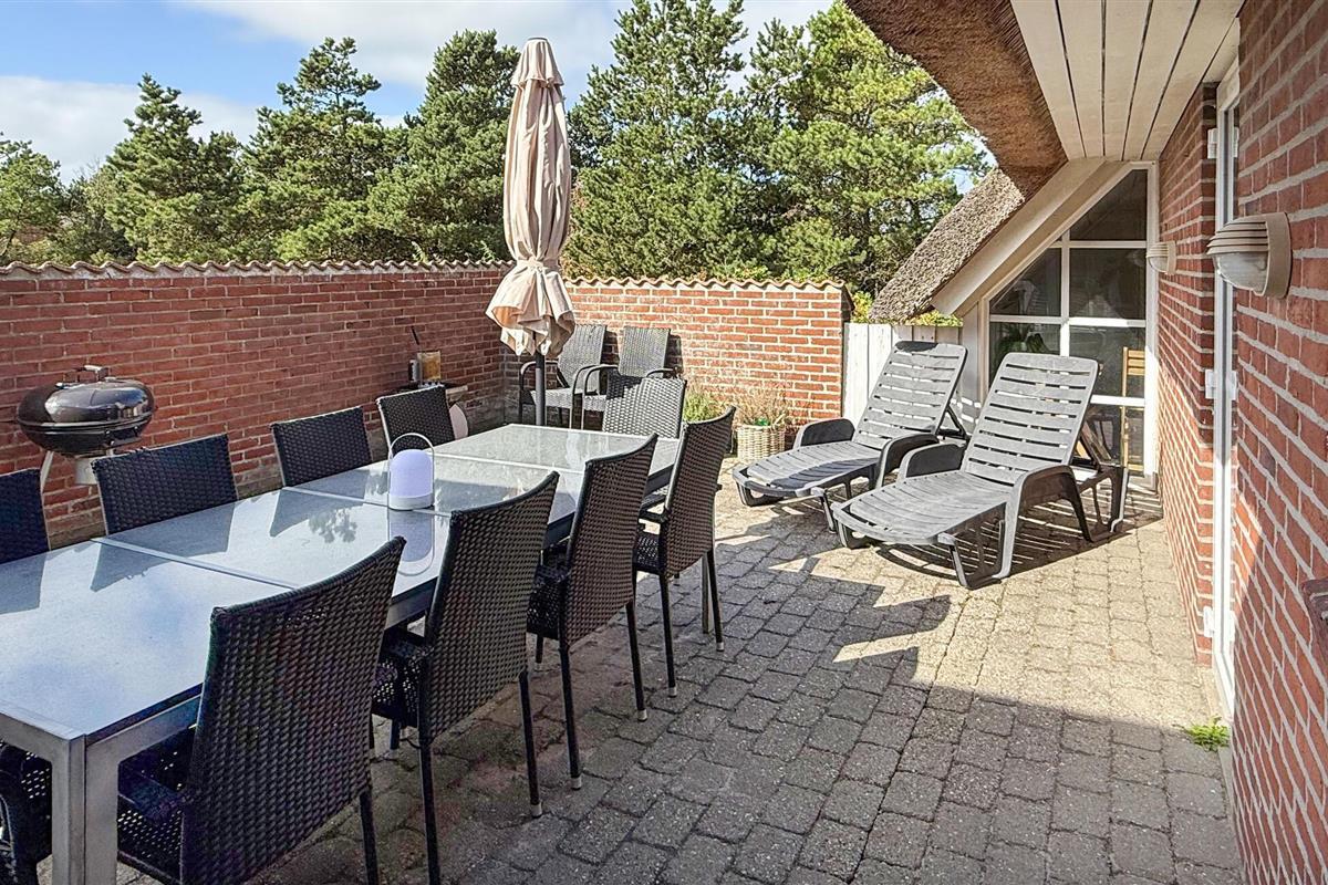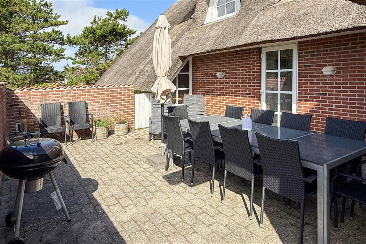 Hier vindt u een prachtig vakantiehuis met een rieten dak op een prachtige locatie. U kunt vanaf hier daadwerkelijk de Noordzee zien, vooral vanaf de 1e verdieping heeft u een prachtig uitzicht. Het huis bevat alles wat bijdraagt aan een ontspannen verblijf: zwembad, 6 persoons whirlpool, een infrarood sauna en een activiteitenruimte op de 1e verdieping die uitnodigt tot gezellige wedstrijdjes. Wilt u de omgeving verkennen? Bezoek dan de vuurtoren en geniet van het uitzicht tot aan het molenpark. Een wandeling door het stadje Blåvand is een interessante ervaring. Hier vindt u tal van gespecialiseerde winkels, restaurants, supermarkten en cafés, en niet te vergeten volop vertier tijdens de zomermaanden.