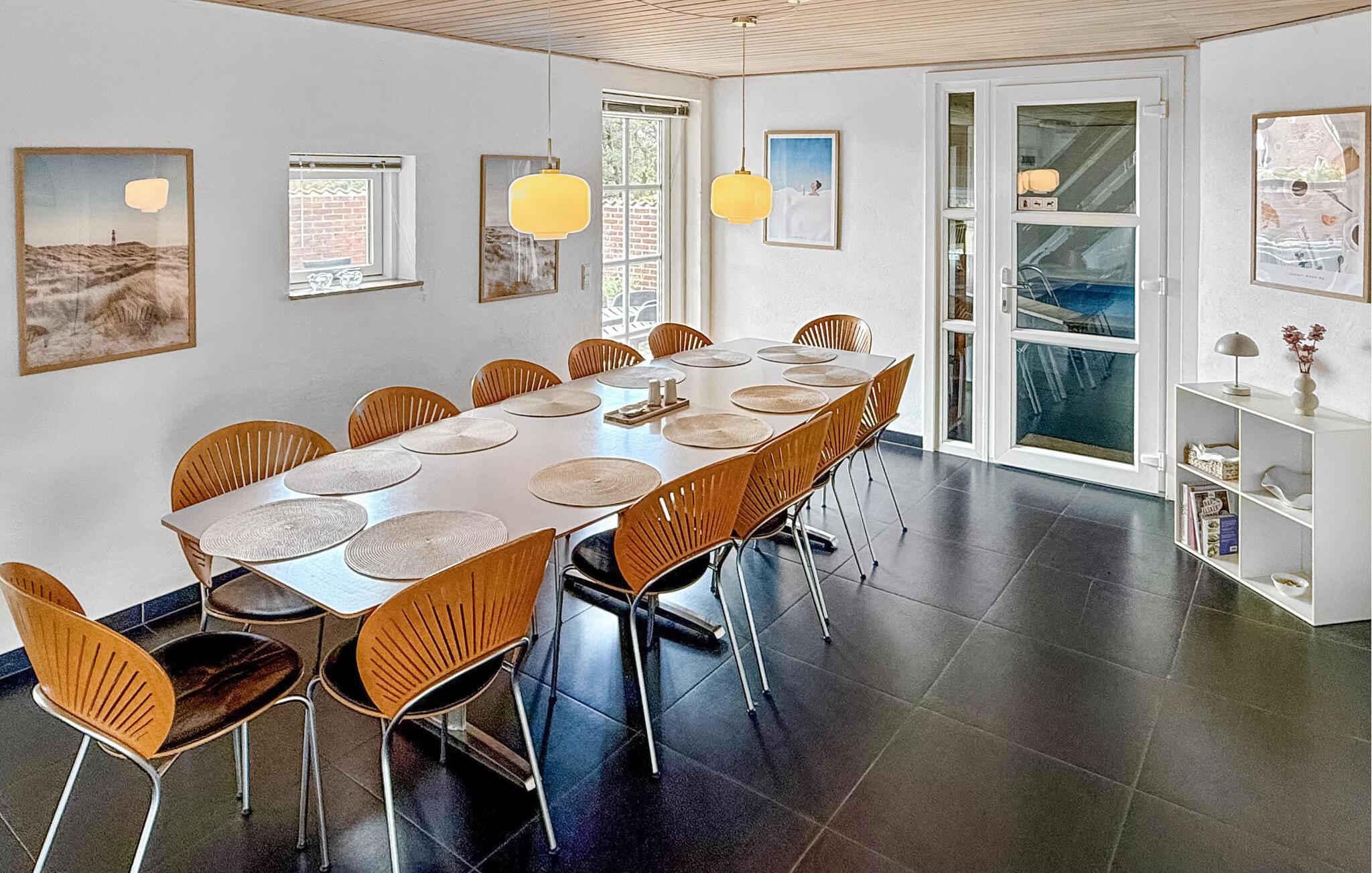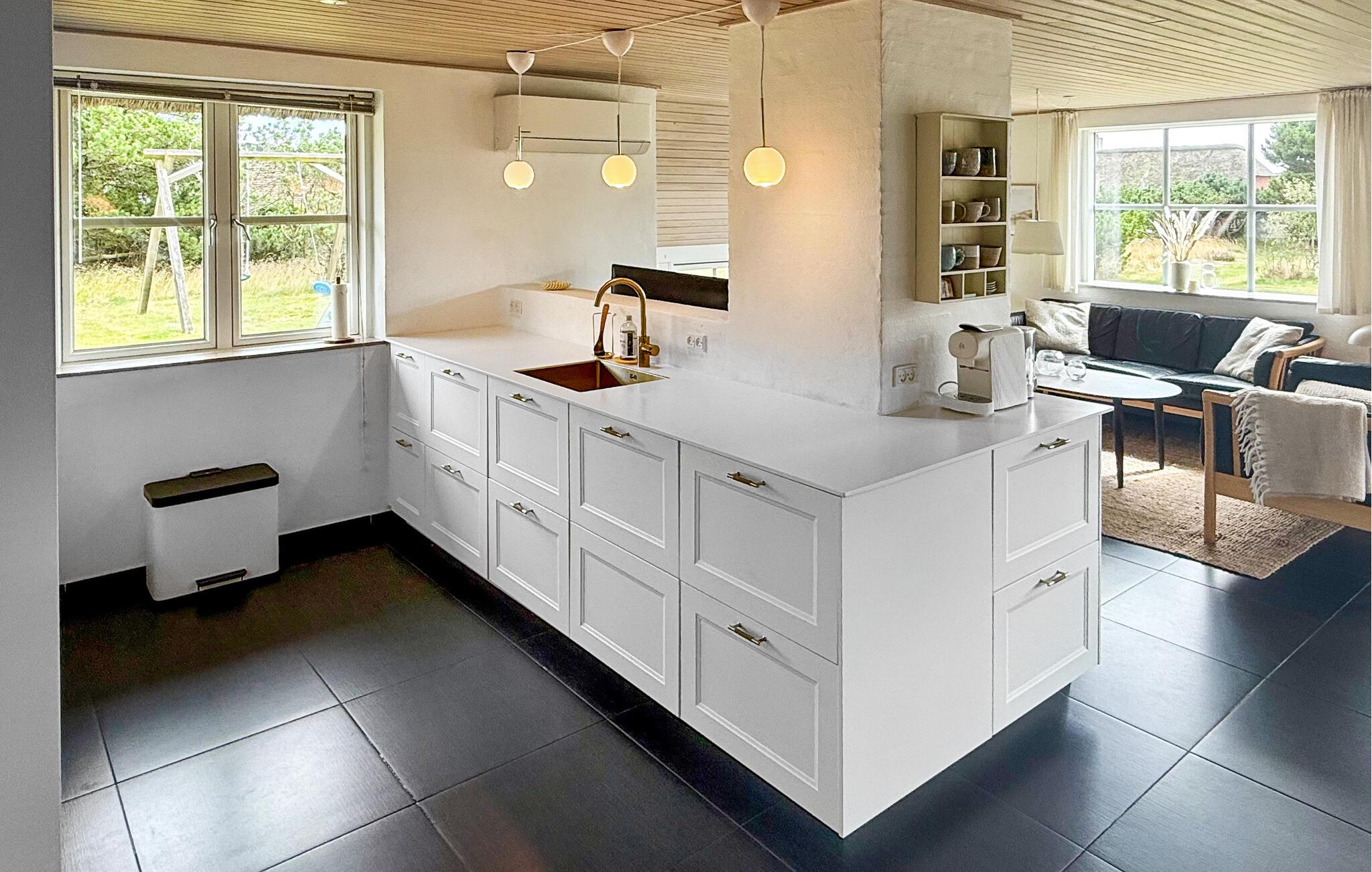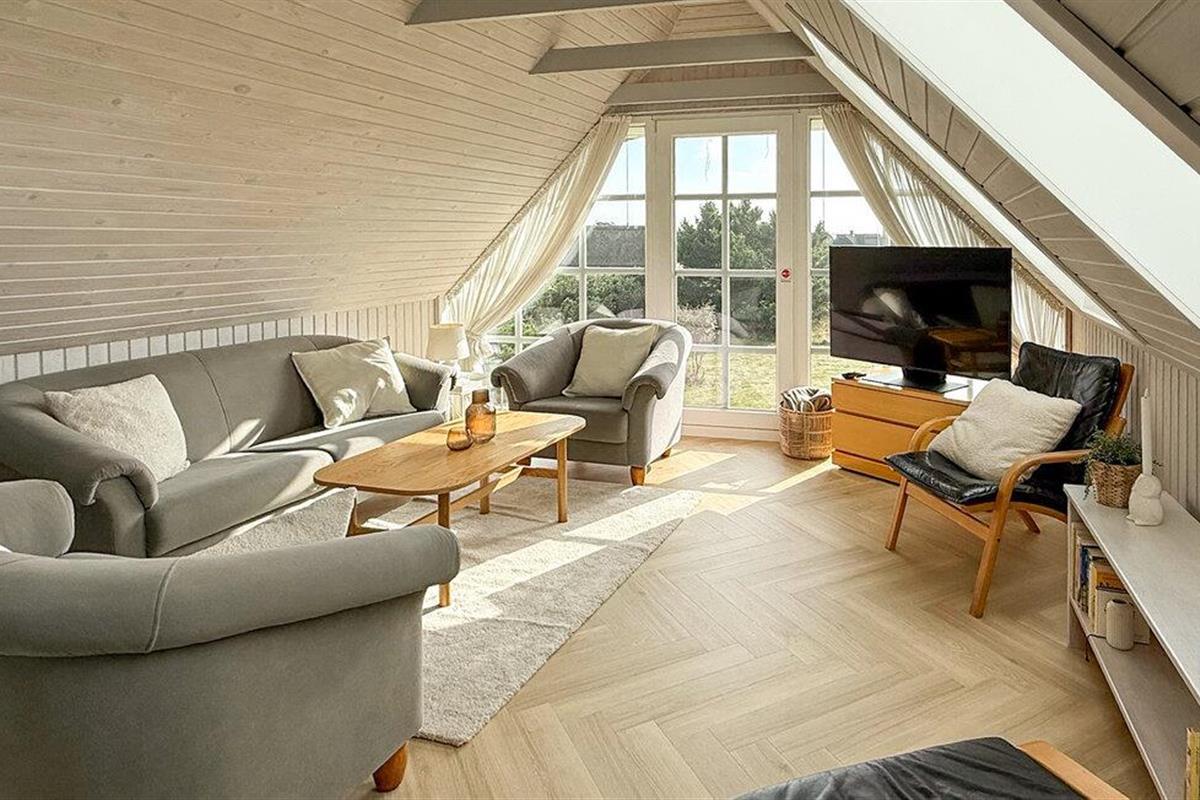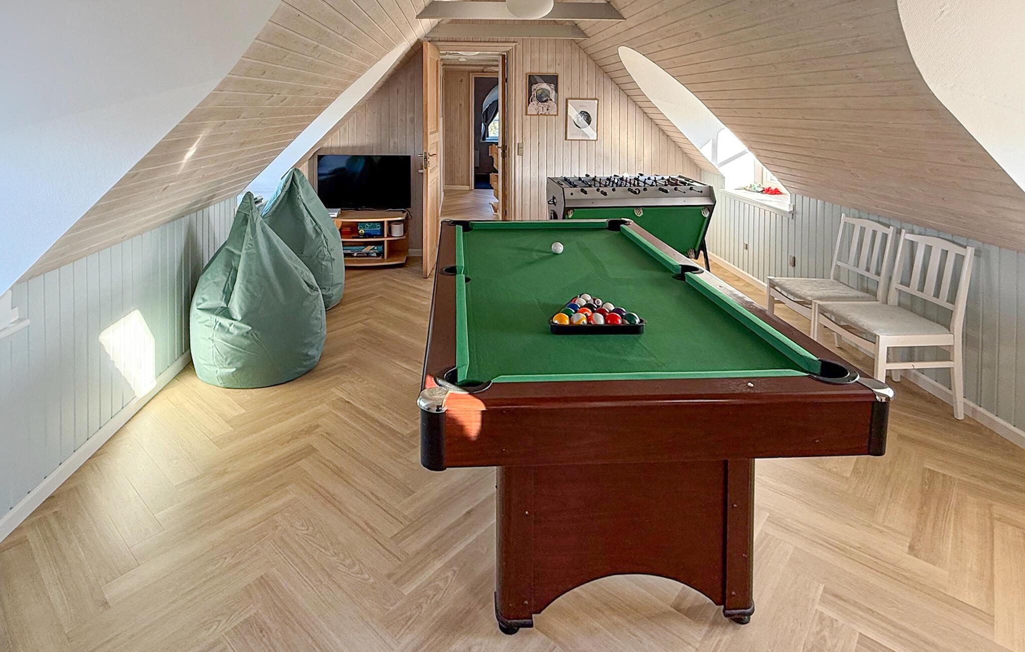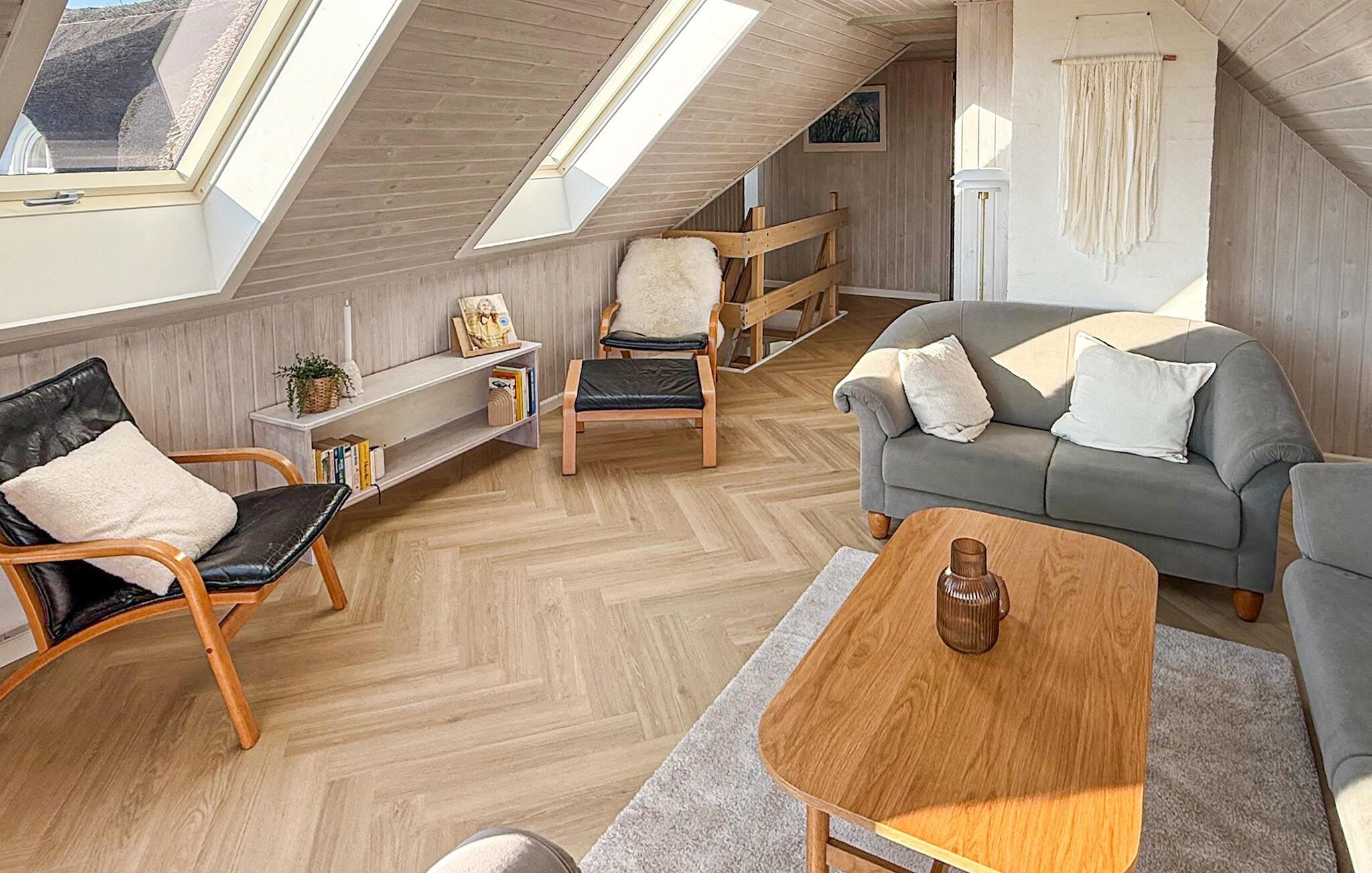 Hier vindt u een prachtig vakantiehuis met een rieten dak op een prachtige locatie. U kunt vanaf hier daadwerkelijk de Noordzee zien, vooral vanaf de 1e verdieping heeft u een prachtig uitzicht. Het huis bevat alles wat bijdraagt aan een ontspannen verblijf: zwembad, 6 persoons whirlpool, een infrarood sauna en een activiteitenruimte op de 1e verdieping die uitnodigt tot gezellige wedstrijdjes. Wilt u de omgeving verkennen? Bezoek dan de vuurtoren en geniet van het uitzicht tot aan het molenpark. Een wandeling door het stadje Blåvand is een interessante ervaring. Hier vindt u tal van gespecialiseerde winkels, restaurants, supermarkten en cafés, en niet te vergeten volop vertier tijdens de zomermaanden.
