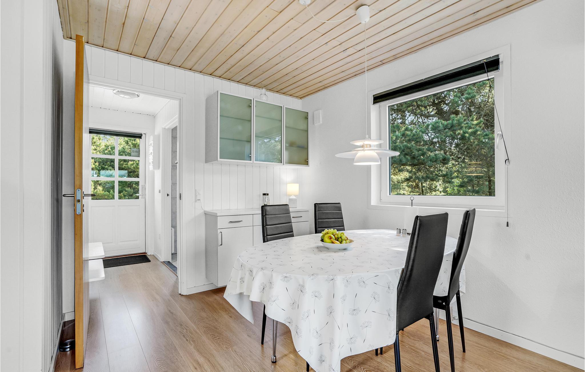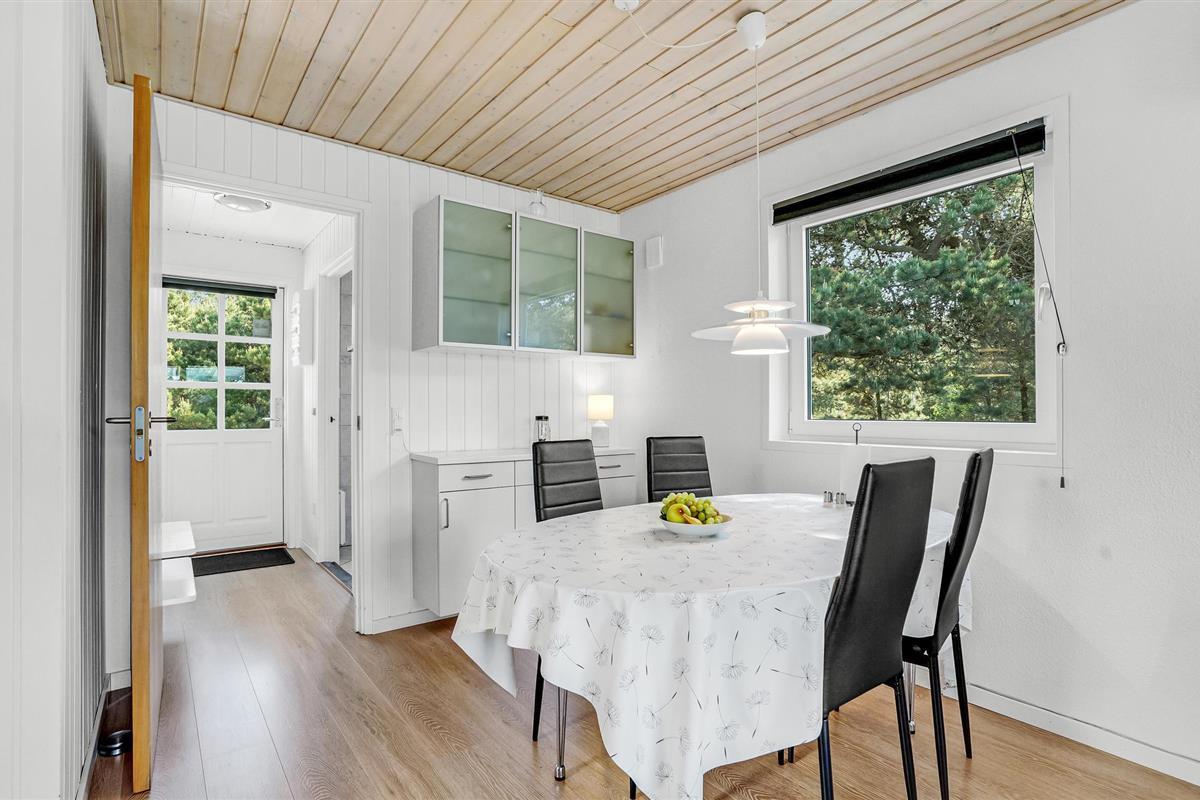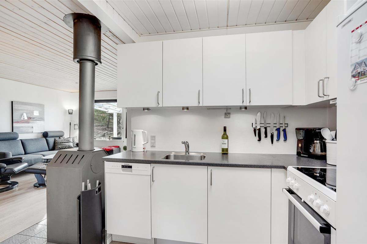 Welkom in je gezellige vakantiehuis, dat indruk maakt met zijn moderne inrichting en idyllische ligging in Blåvand. Het interieur van het huis nodigt je uit om je thuis te voelen met zijn lichte en vriendelijke inrichting. Er is genoeg ruimte voor het hele gezin. De gezellige woonkamer, uitgerust met meubilair van hoge kwaliteit en een houtkachel, biedt de ideale sfeer voor ontspannen avonden. In de moderne, goed uitgeruste keuken kun je samen heerlijke maaltijden bereiden. De open eethoek met uitzicht op het groen rondt de woonsfeer af.