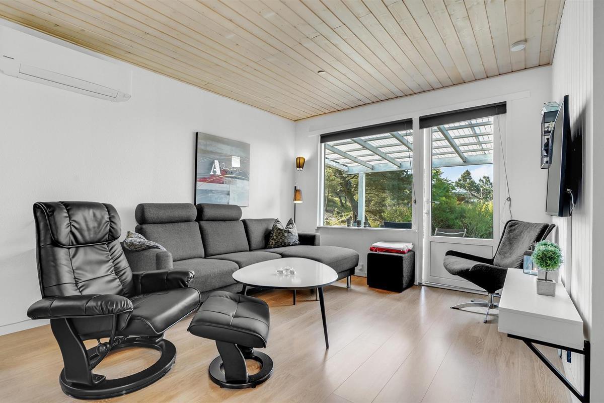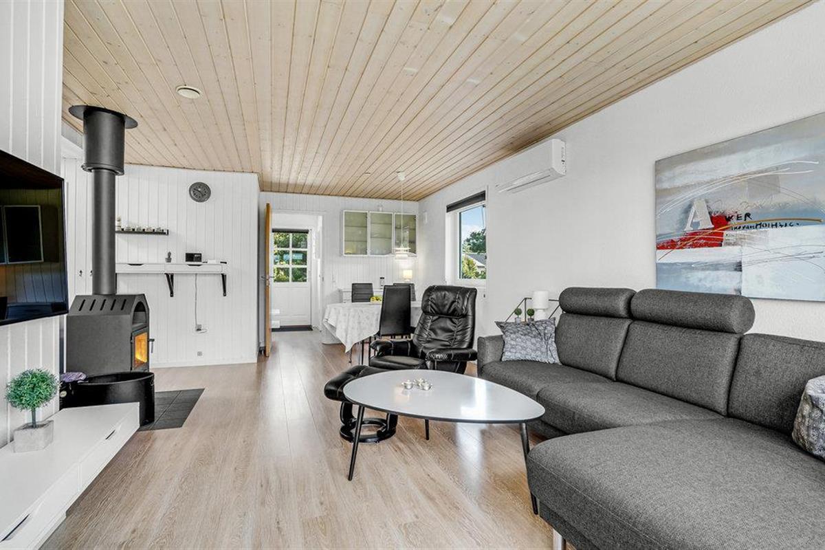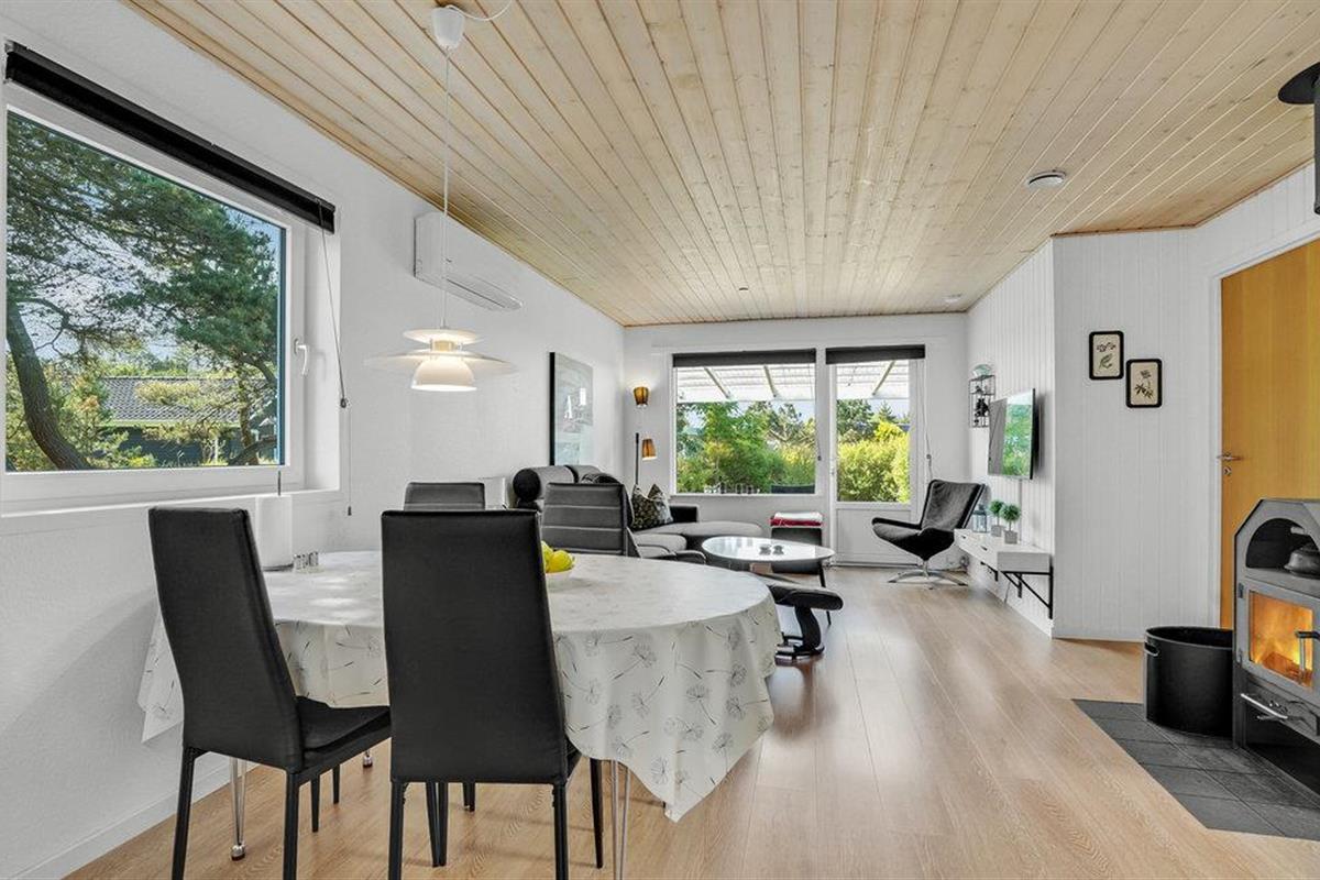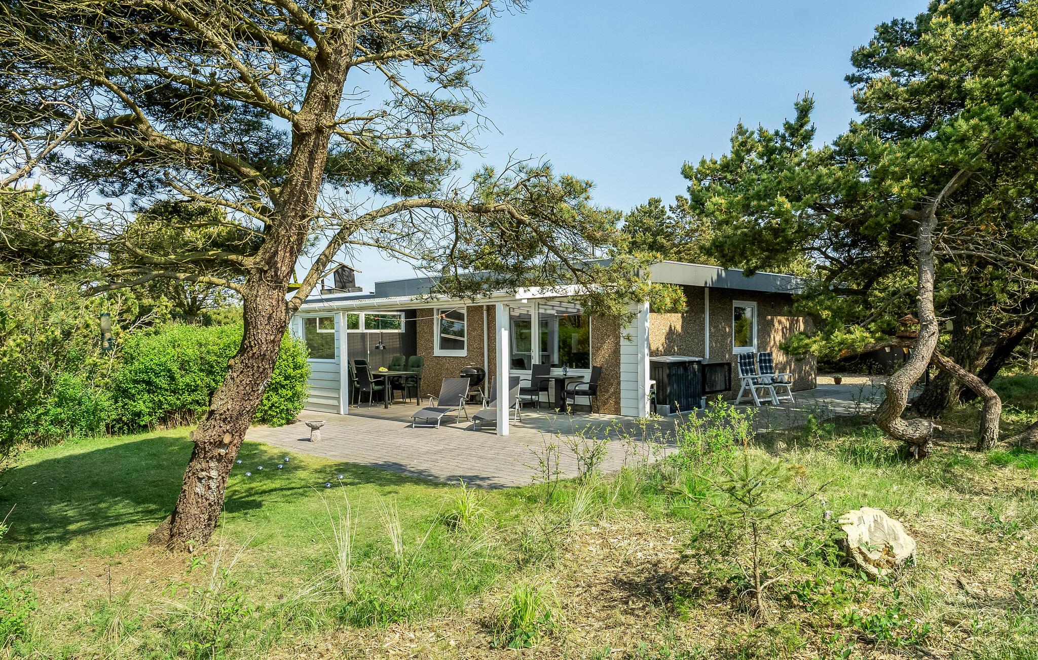 Welkom in je gezellige vakantiehuis, dat indruk maakt met zijn moderne inrichting en idyllische ligging in Blåvand. Het interieur van het huis nodigt je uit om je thuis te voelen met zijn lichte en vriendelijke inrichting. Er is genoeg ruimte voor het hele gezin. De gezellige woonkamer, uitgerust met meubilair van hoge kwaliteit en een houtkachel, biedt de ideale sfeer voor ontspannen avonden. In de moderne, goed uitgeruste keuken kun je samen heerlijke maaltijden bereiden. De open eethoek met uitzicht op het groen rondt de woonsfeer af.