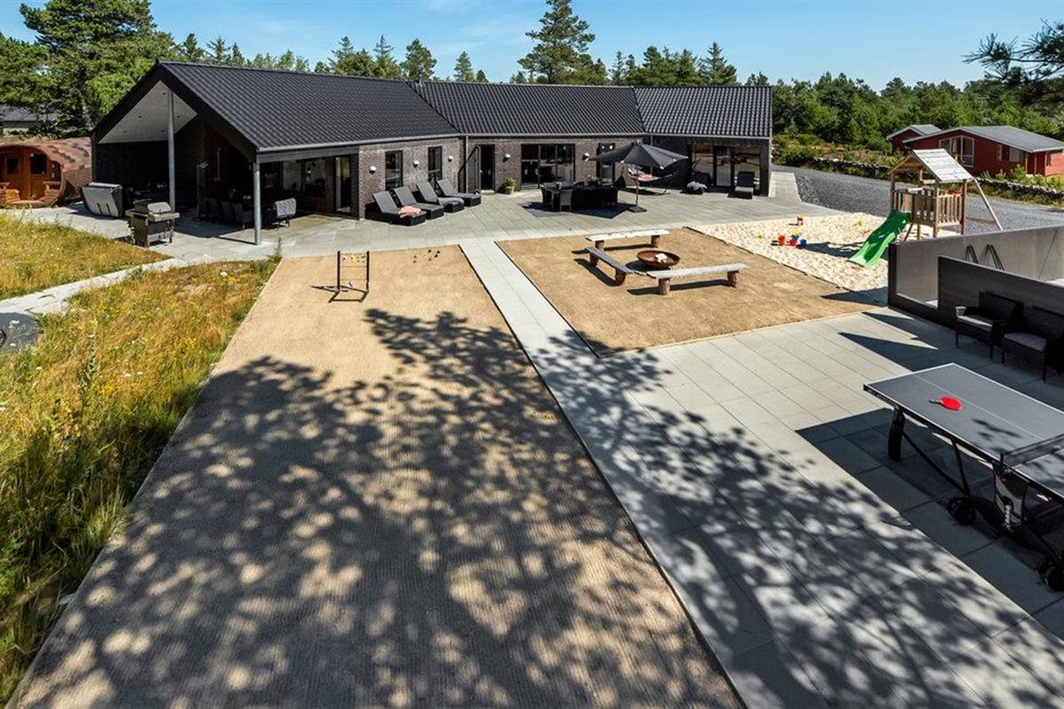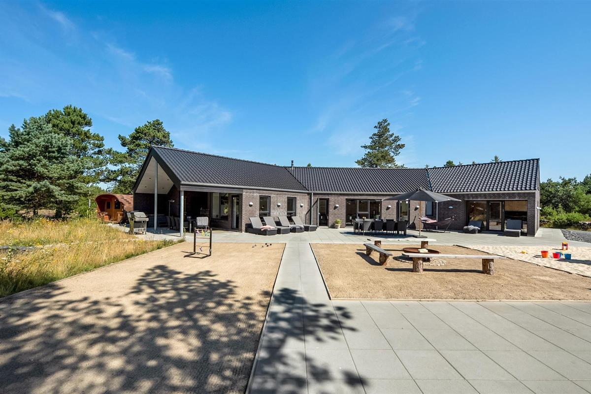Luxe en energiezuinig vakantiehuis in Blåvand met binnenzwembad, sauna en speelruimte, ideaal voor groepen tot 14 personen.