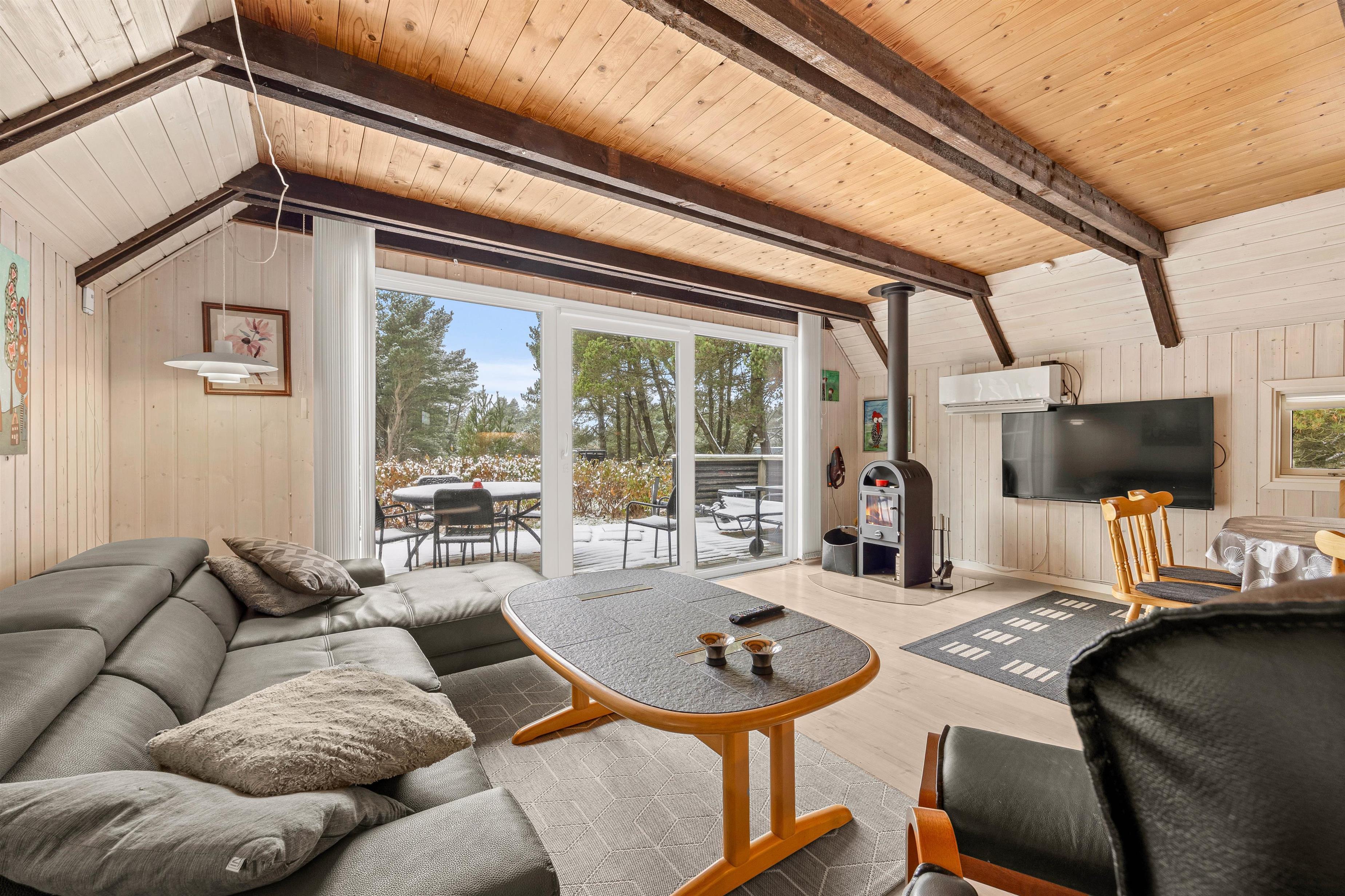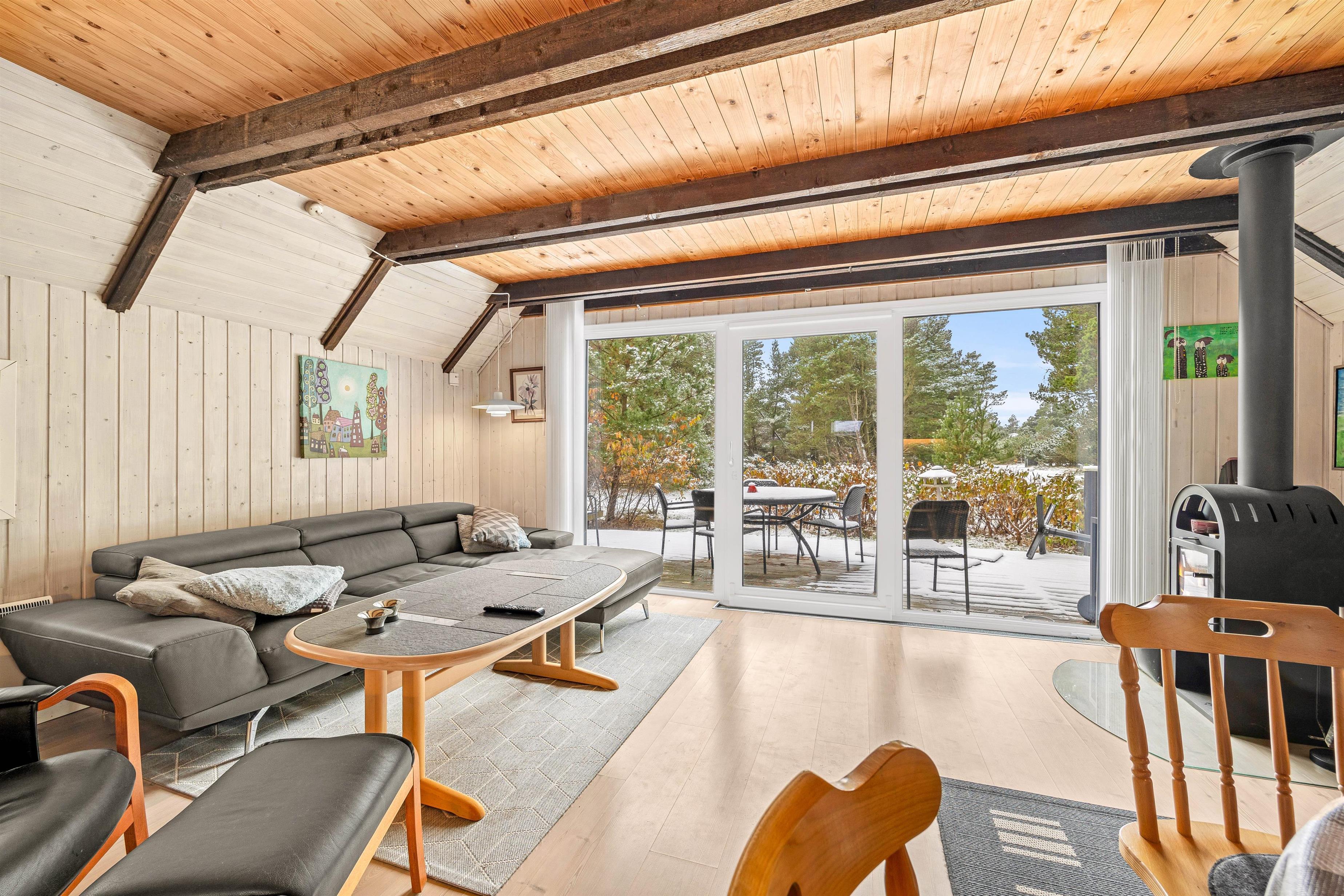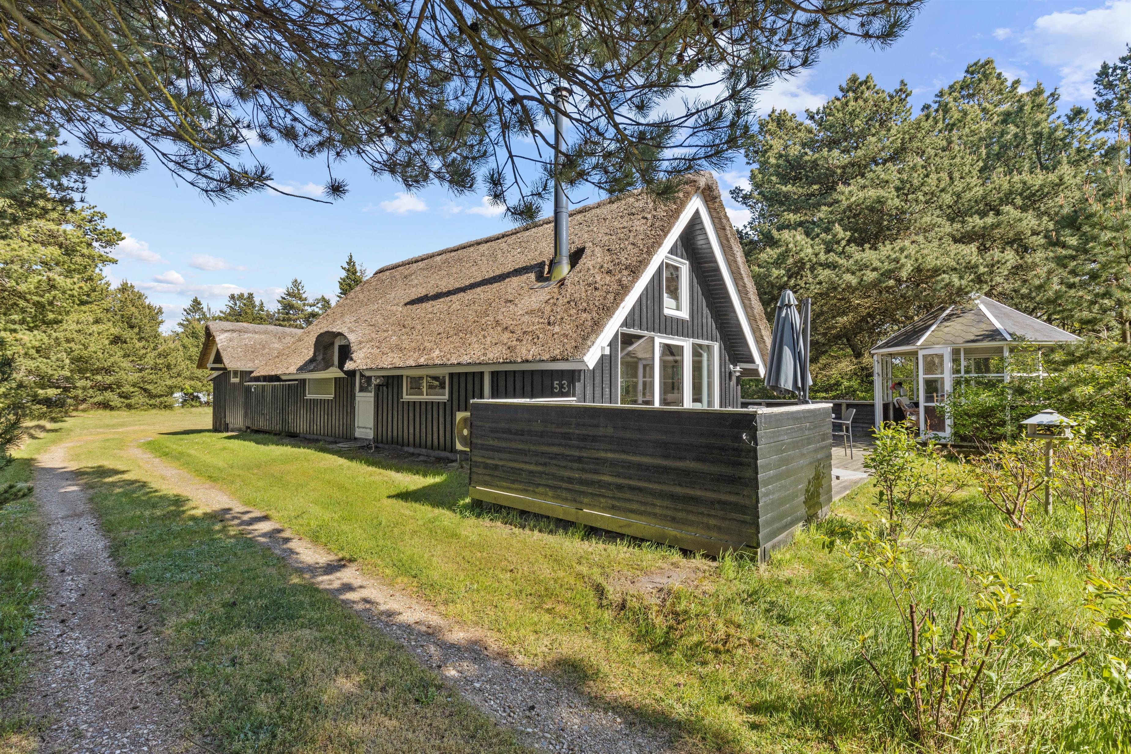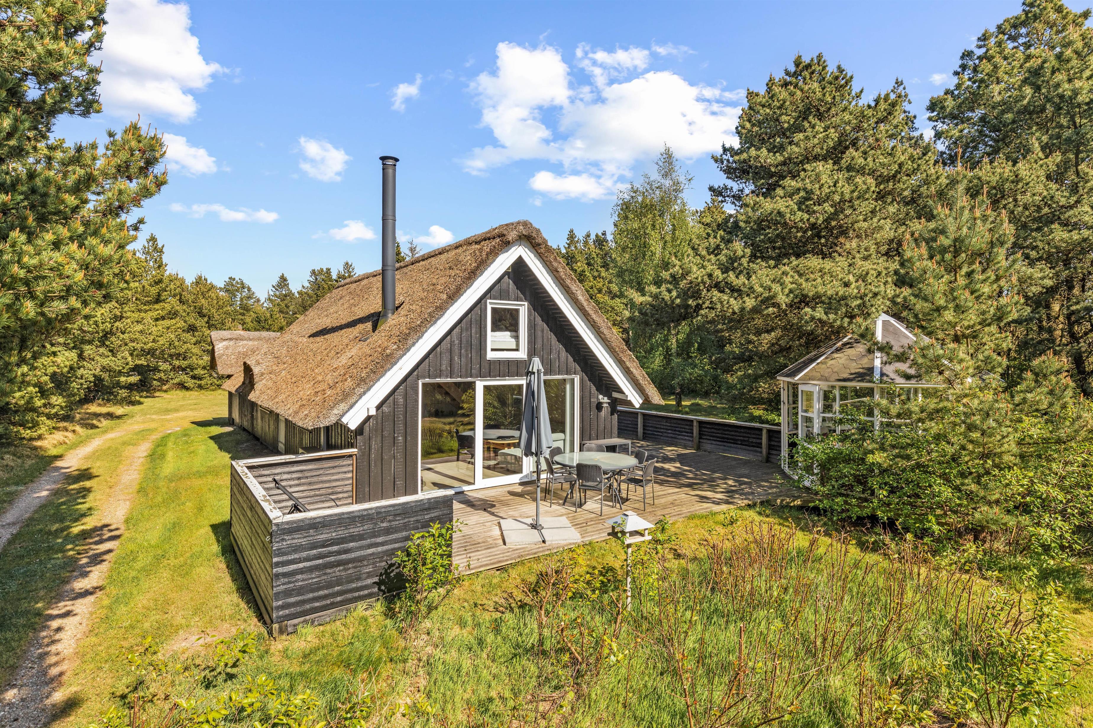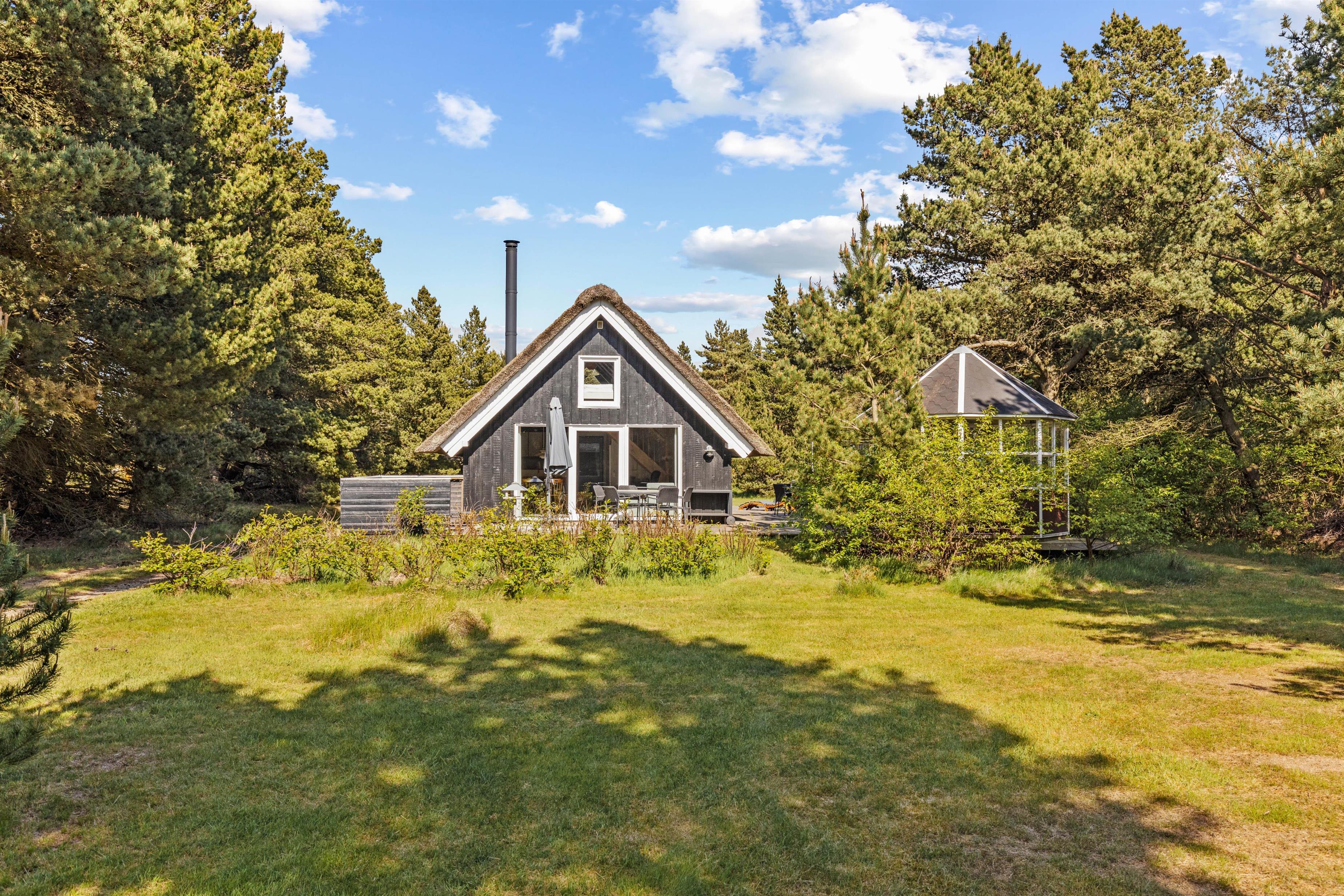 Beautifully enclosed by trees and bushes, this recently renovated holiday home on Sandtoftevej 53 (renovated in 2021) awaits you. There's plenty of space for family or friends – and your two dogs are also very welcome. Spread across 73 square metres, there are two bedrooms, plus a heated annexe with two additional sleeping spaces. For ultimate relaxation, you'll find a wood-fired hot tub and outdoor sauna where you can recharge after a long day.