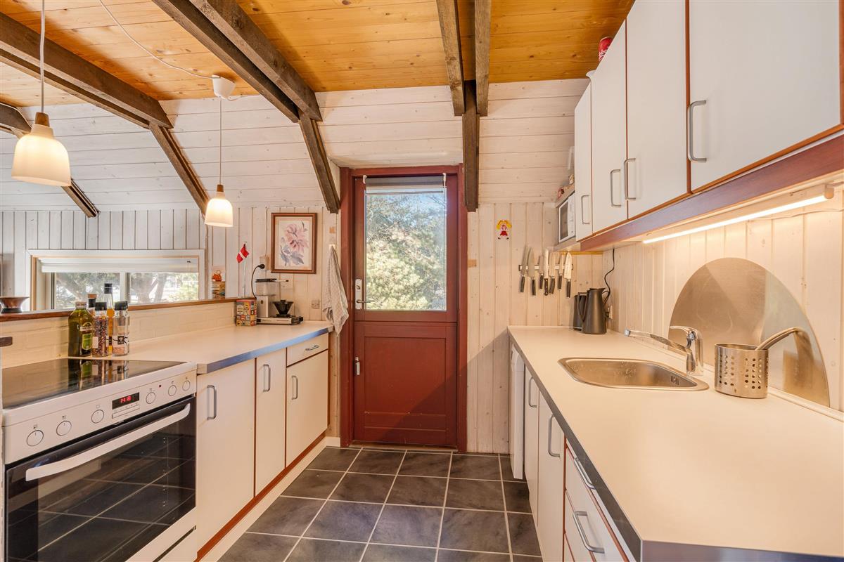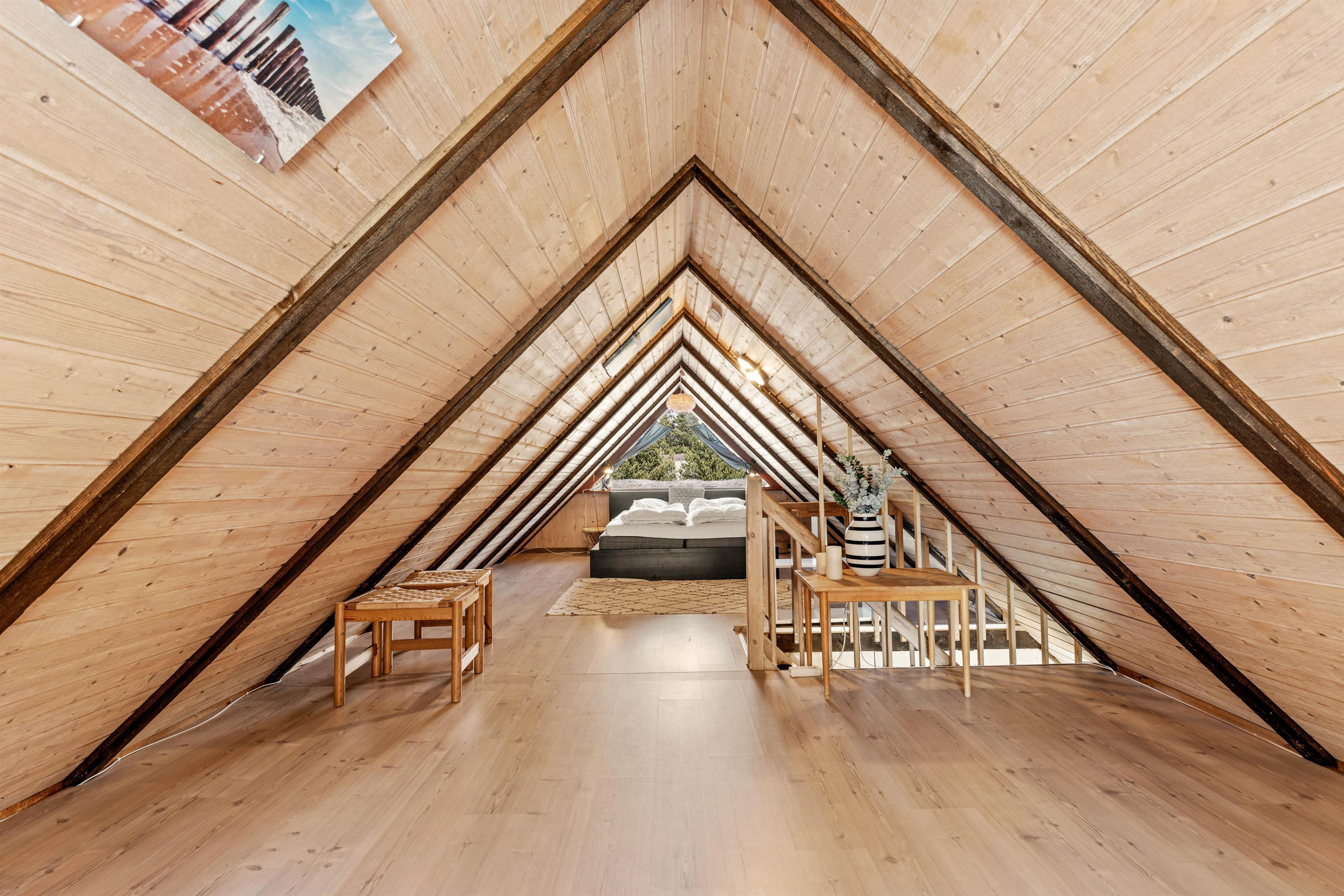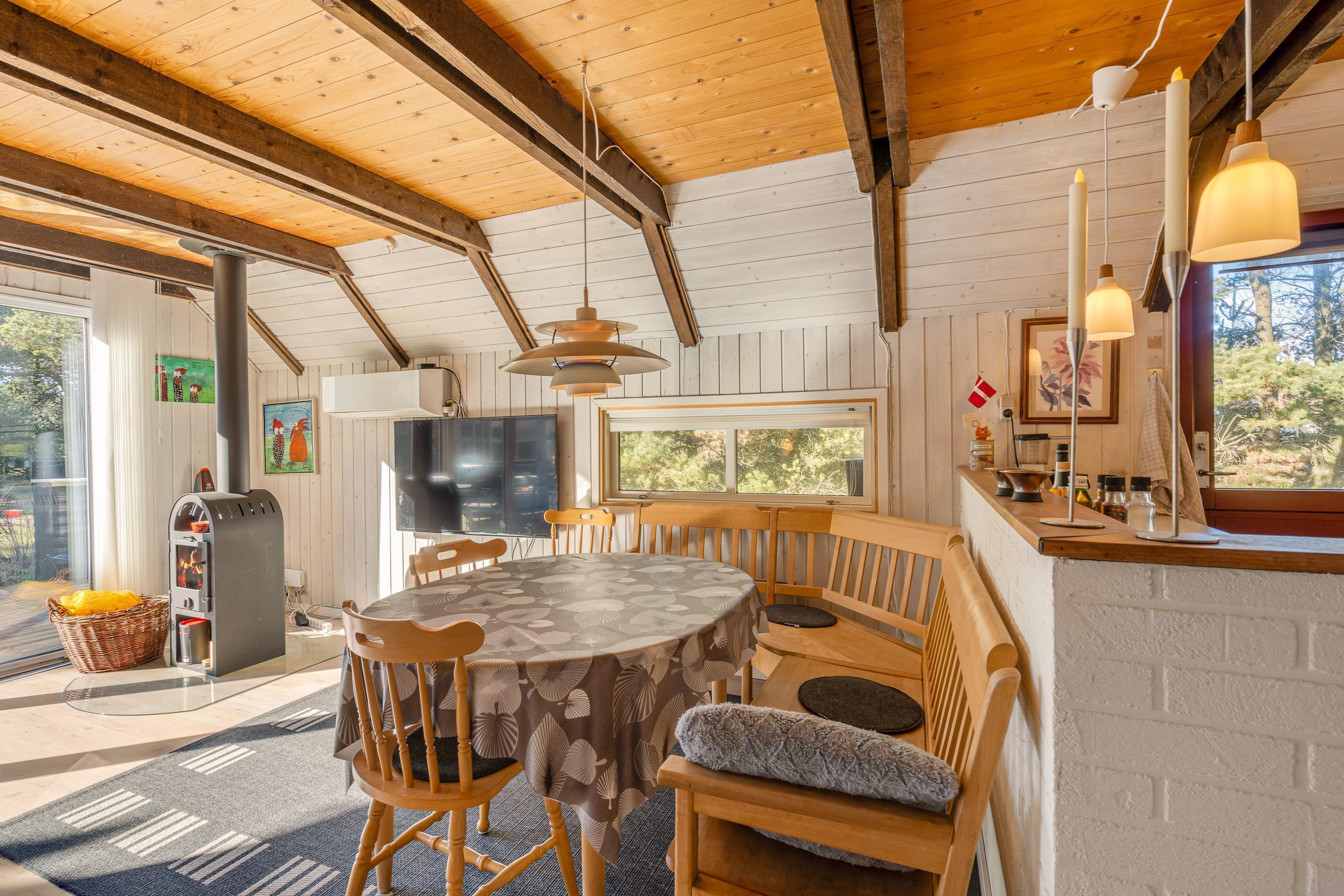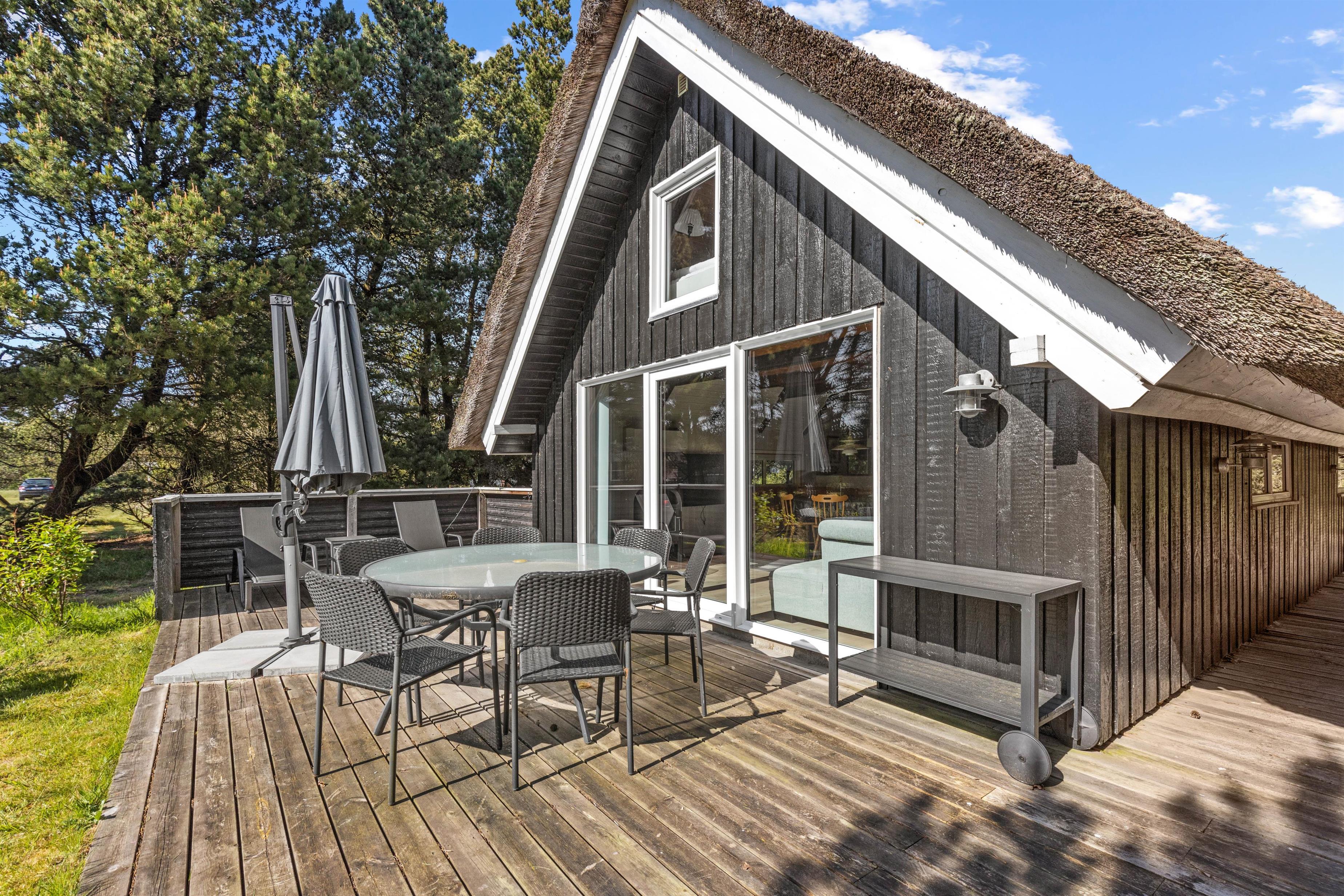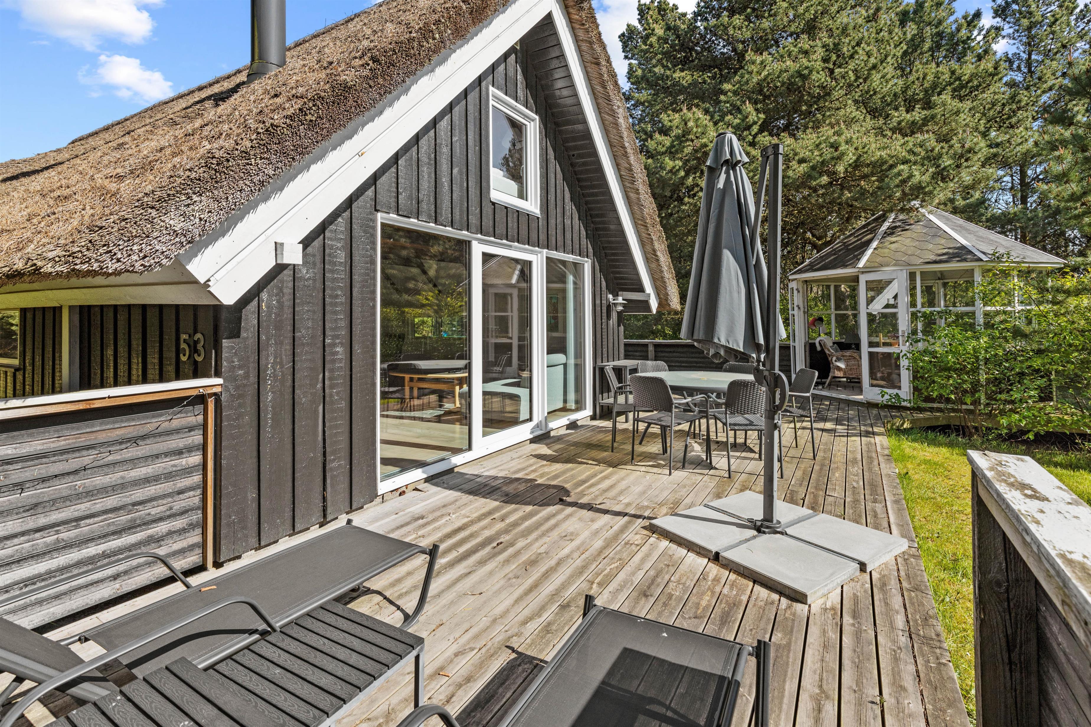 Beautifully enclosed by trees and bushes, this recently renovated holiday home on Sandtoftevej 53 (renovated in 2021) awaits you. There's plenty of space for family or friends – and your two dogs are also very welcome. Spread across 73 square metres, there are two bedrooms, plus a heated annexe with two additional sleeping spaces. For ultimate relaxation, you'll find a wood-fired hot tub and outdoor sauna where you can recharge after a long day.