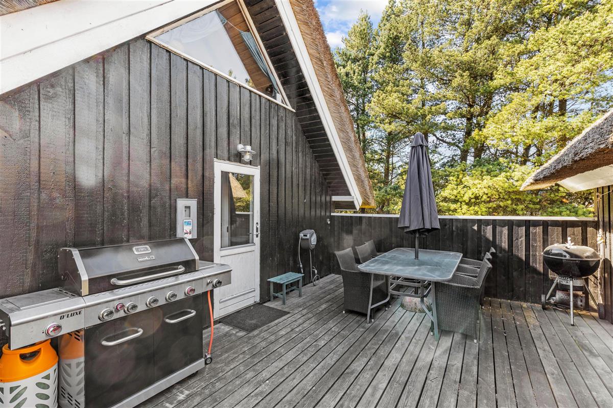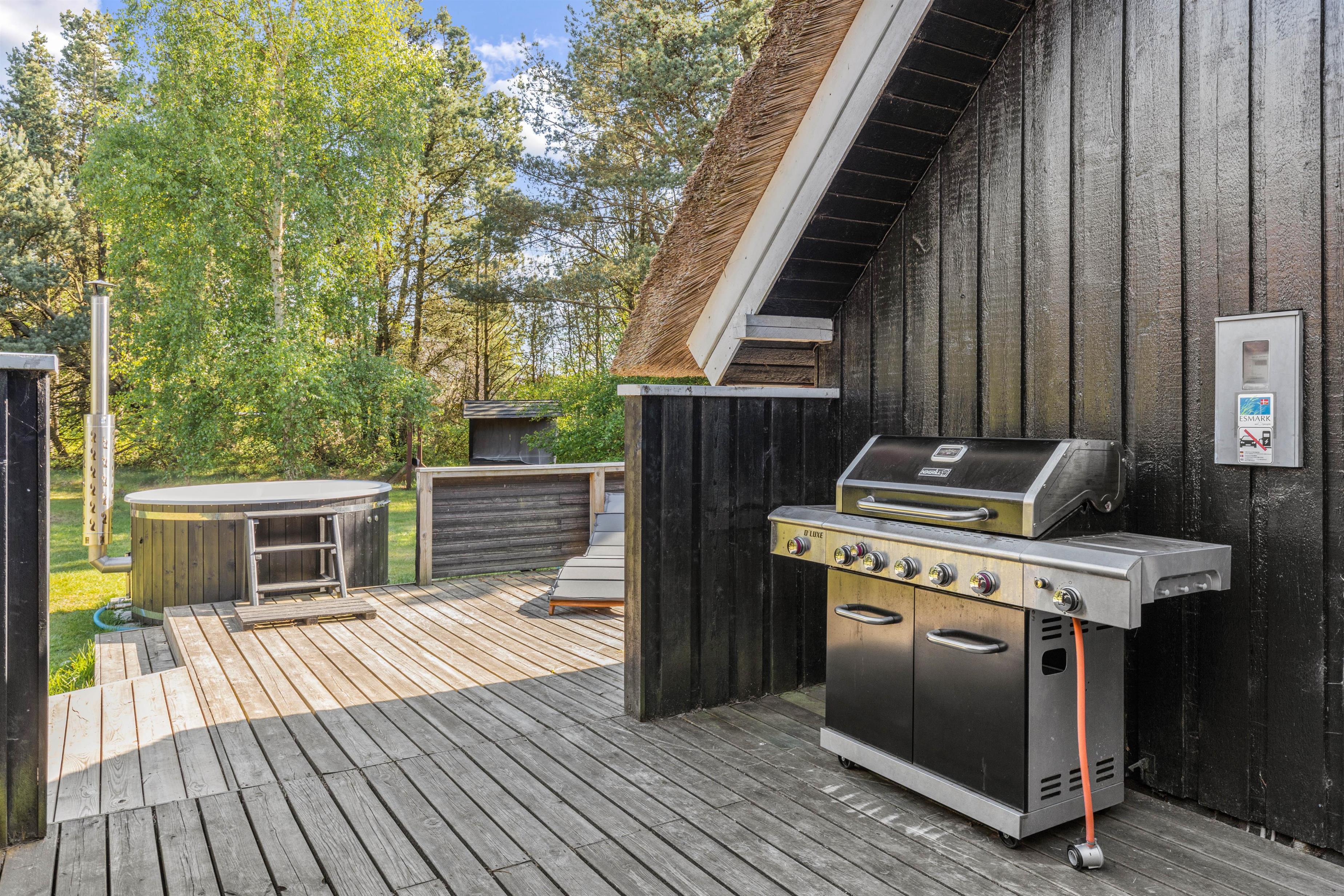 The holiday home features a terrace that wraps almost entirely around the holiday home, ensuring you'll always find a sunny spot. Garden furniture and sun loungers are plentiful, and with the provided gas barbecue that heats up quickly, you can prepare your evening meals outdoors.