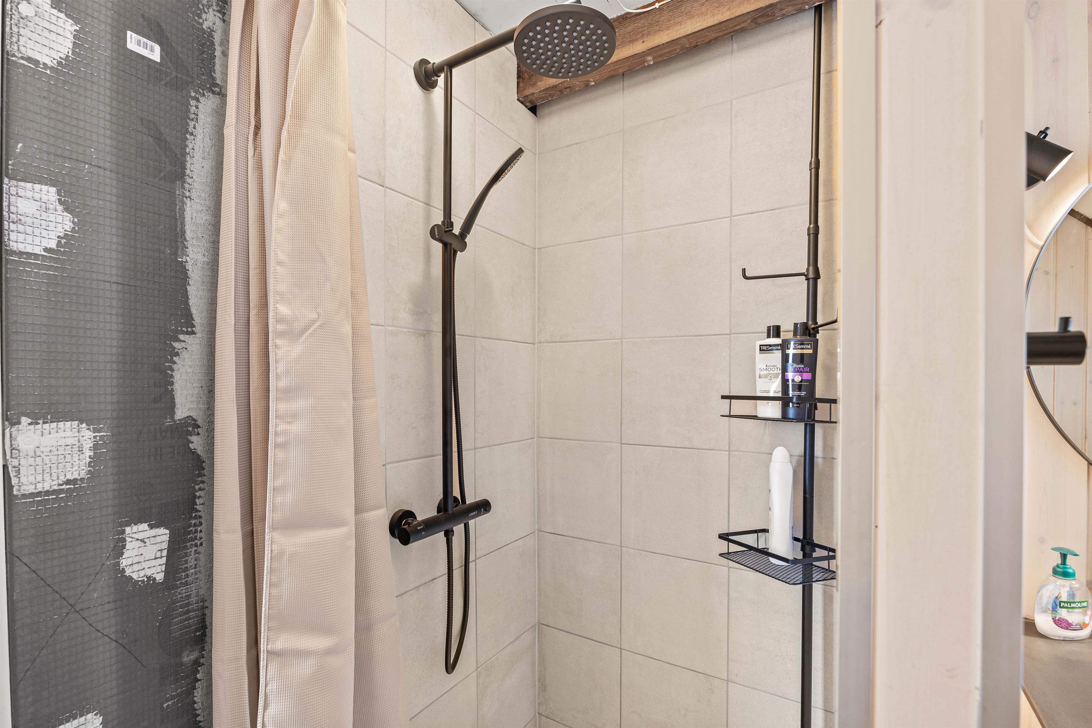 The main house has two bedrooms, one of which is on the first floor. The spacious upstairs room has been ideally arranged for children, with toys and a small television. The annexe features an additional bedroom, perfect for teenagers seeking their own space. The holiday home also includes a bathroom with underfloor heating, ensuring warm feet even in winter.