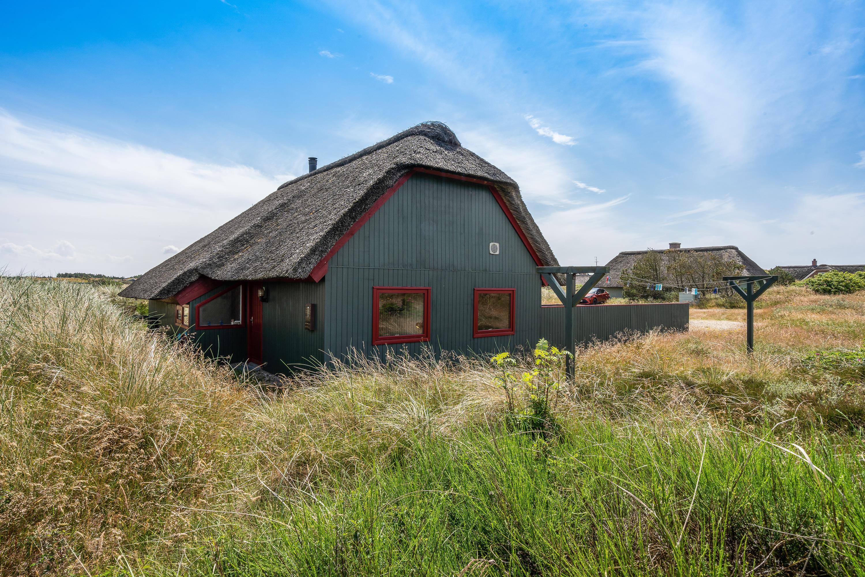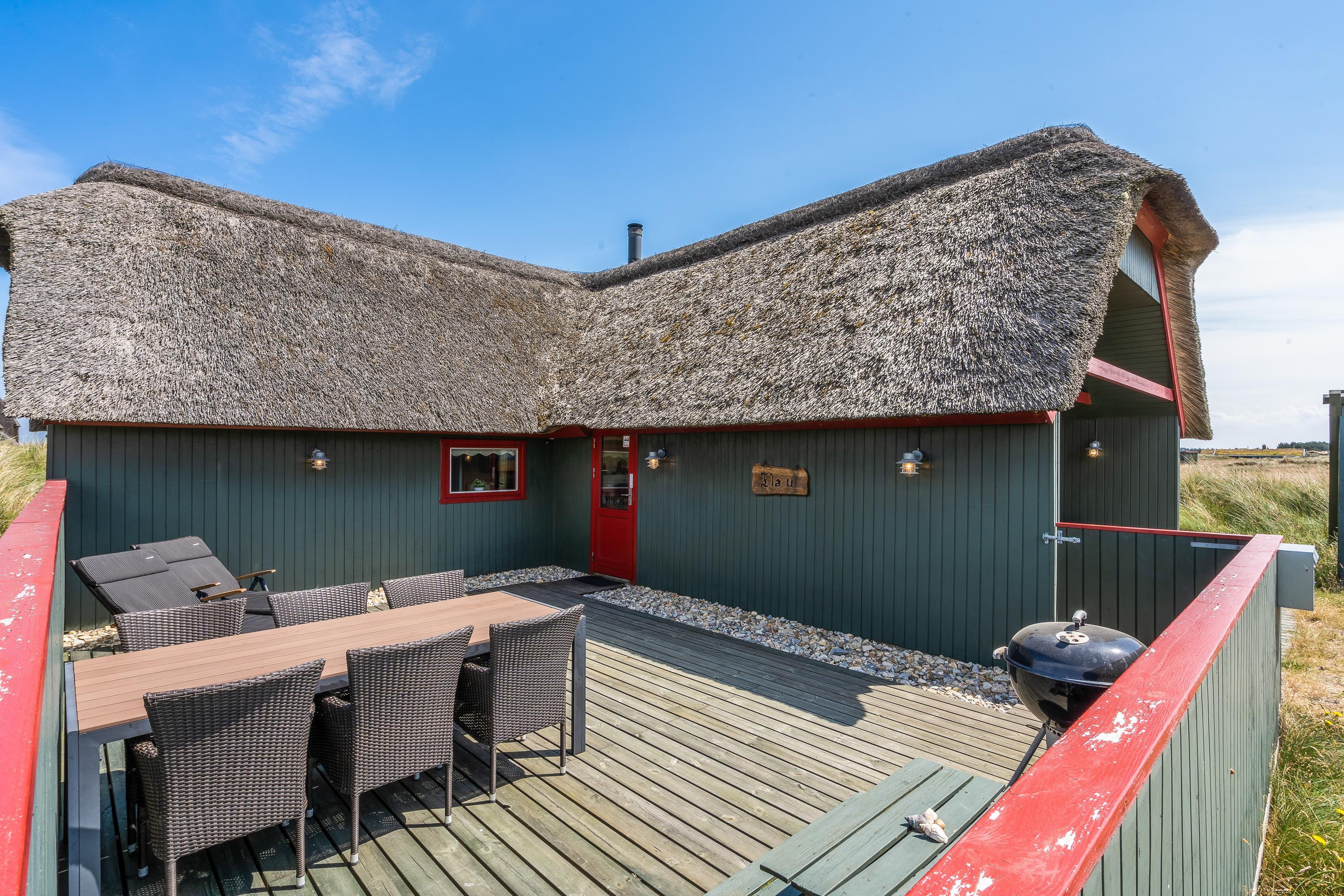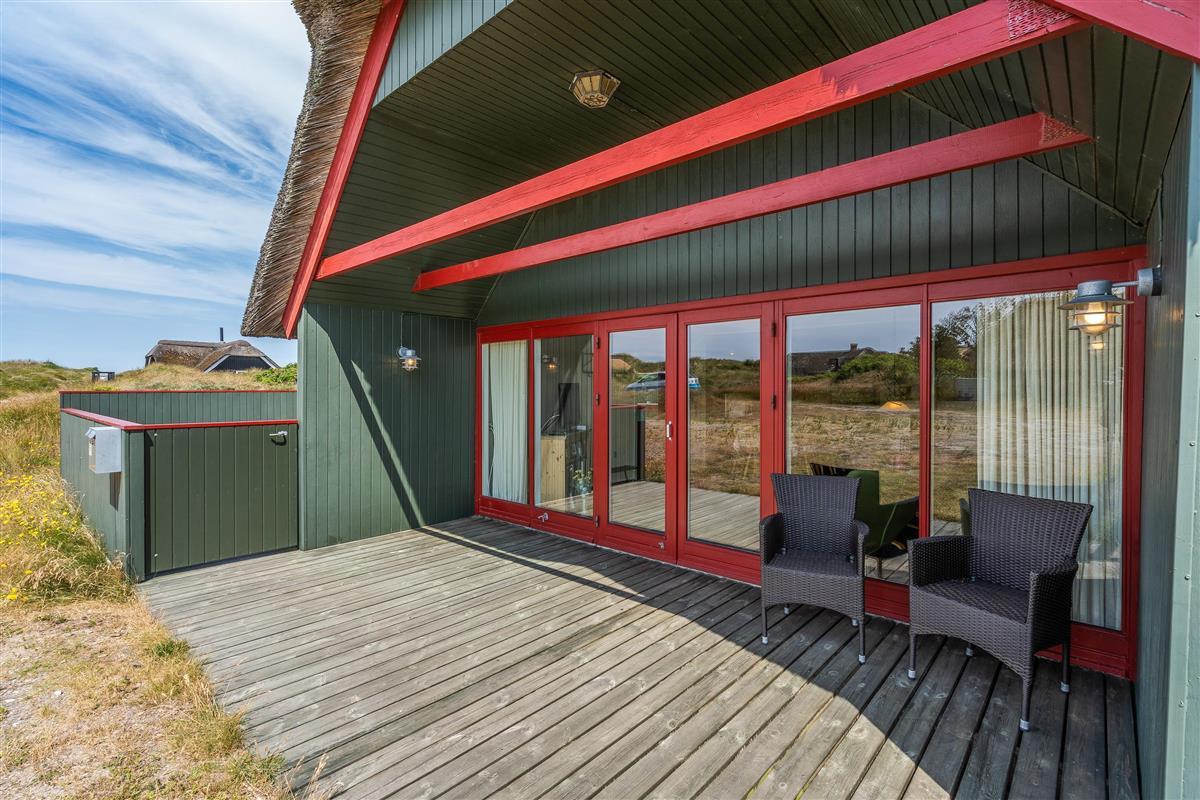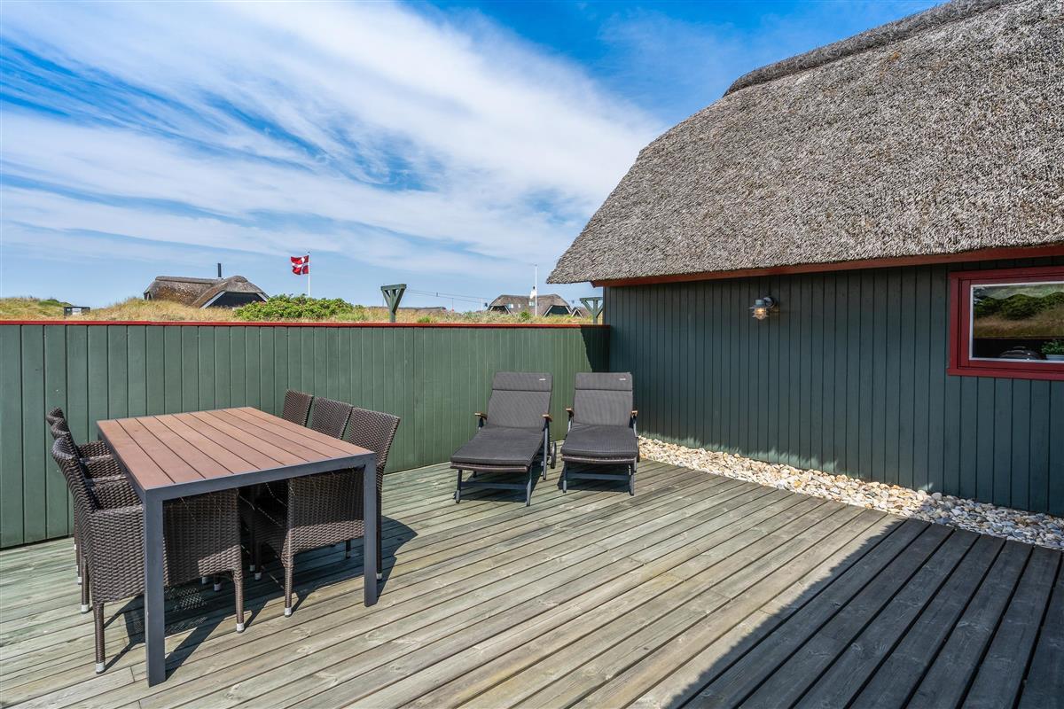 The terrace at Sydslugen 28 is designed for countless sunny hours. Part of the terrace is fenced, while another section is covered. Here you can relax on sun loungers and garden furniture. Meals prepared on the barbecue can be enjoyed right there in the open air.