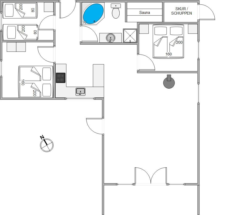 The bathroom holds the holiday home's trump card - a whirlpool and sauna promising rest and relaxation, helping you forget everyday stresses. And there's no chance of cold feet thanks to the underfloor heating.