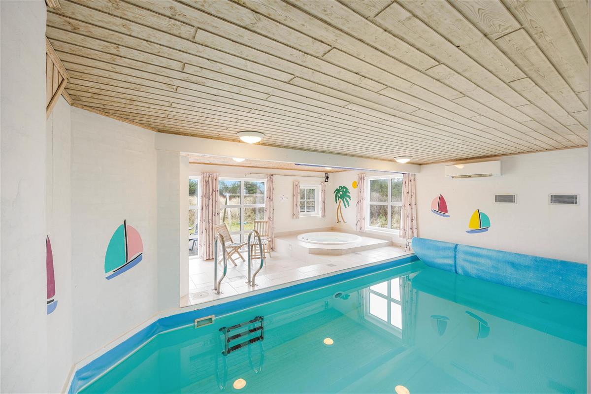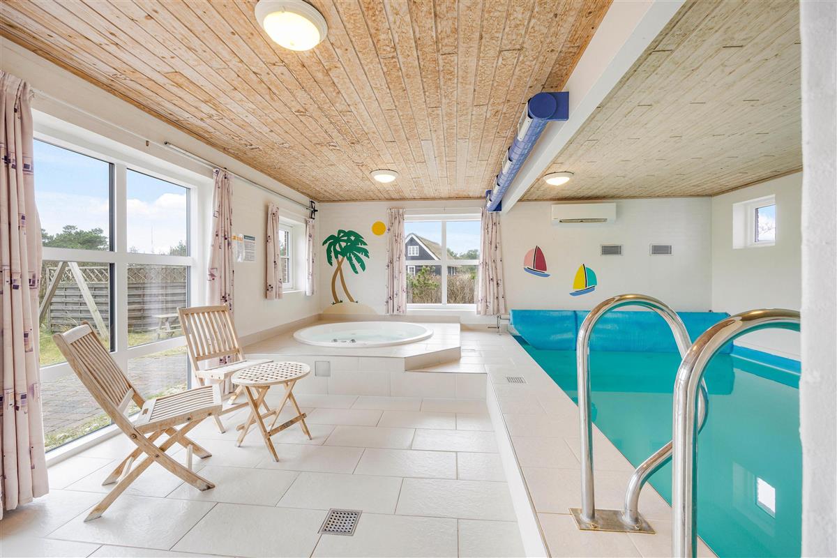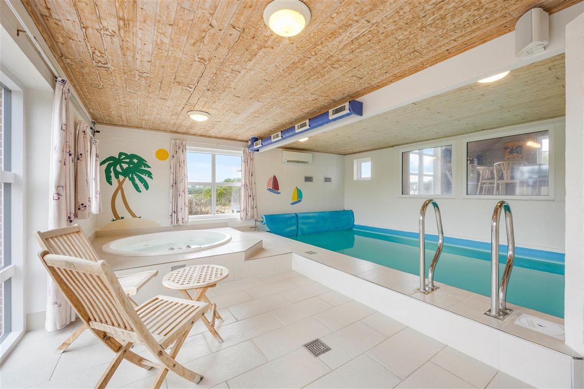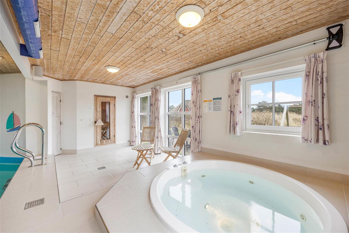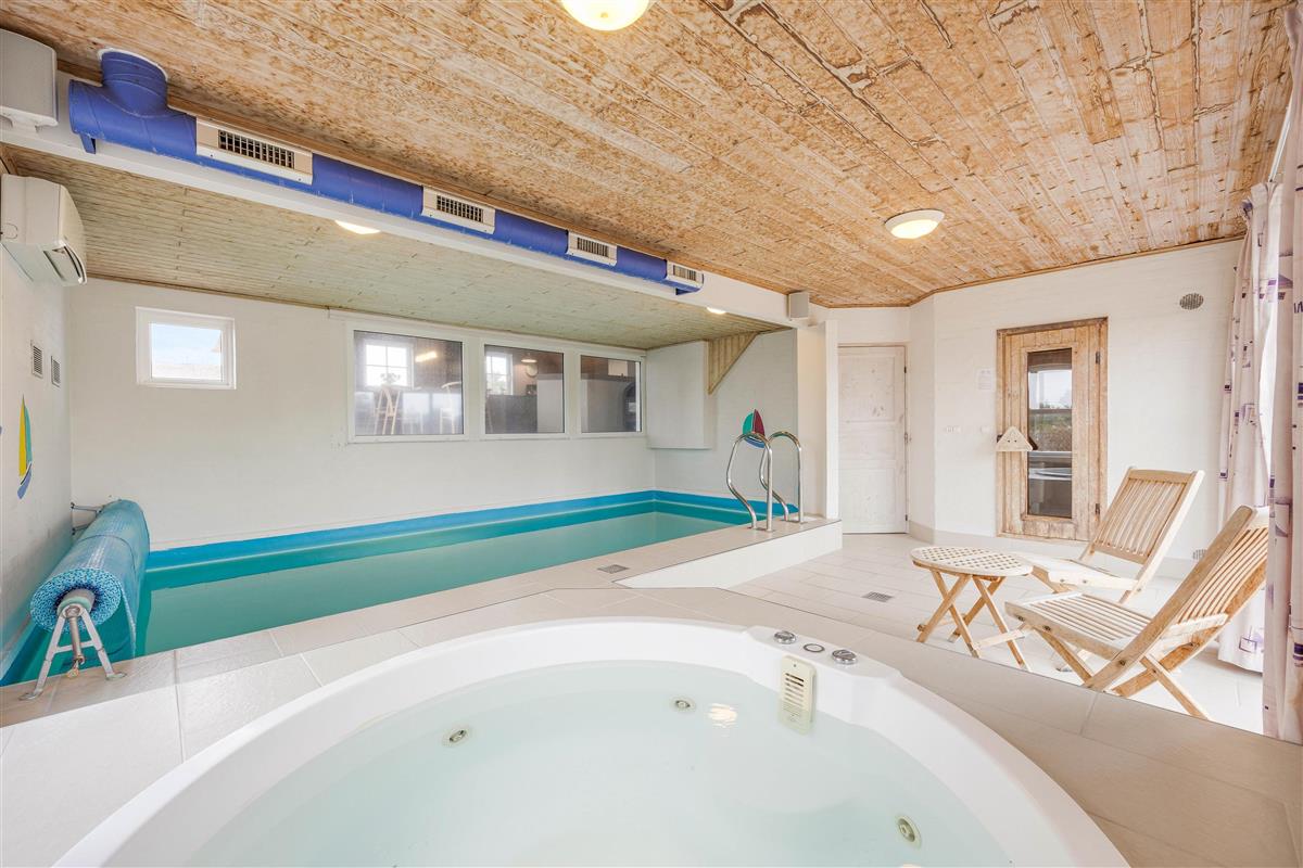 The 18-square-metre swimming pool will ensure plenty of water fun during your holiday. You can also enjoy a relaxing session in the sauna or hot tub. Everything is possible, and everyone can do what they fancy. The second bathroom is conveniently located next to the pool area.