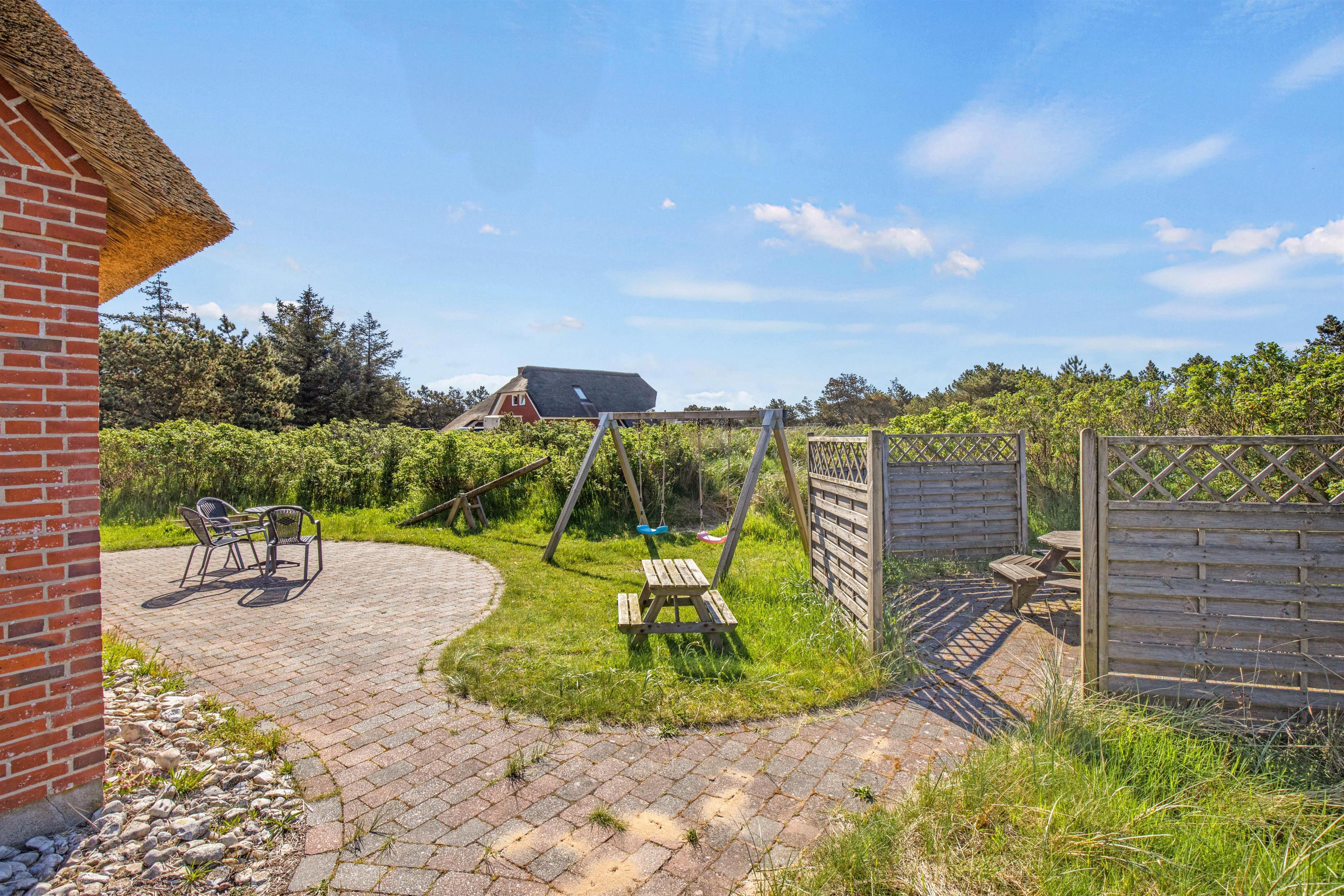 Around the holiday home, you'll find several lovely spots to enjoy the Danish North Sea sunshine. Young guests can enjoy the mini playground right by the house, complete with swing, seesaw, and sandpit. A barbecue is also provided – perfect for enjoying a delicious steak and glass of wine in the evening.