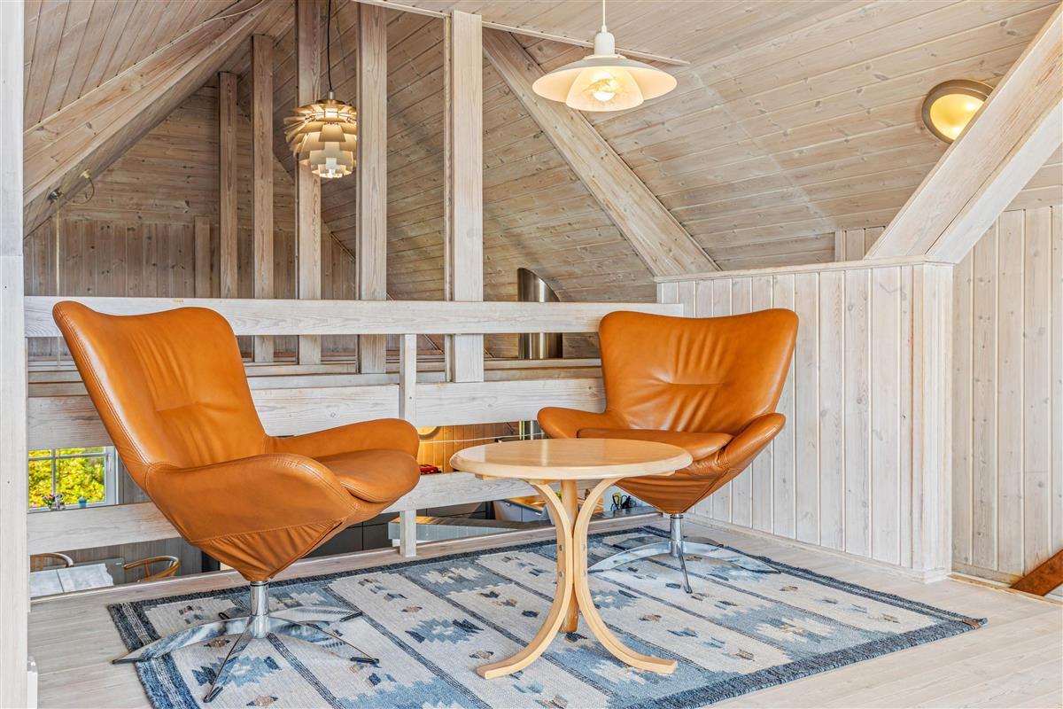 The living area for relaxed film evenings or afternoon naps on the sofa is located on the gallery level upstairs. From here, you can oversee kitchen activities and enjoy splendid views of the surrounding countryside.
