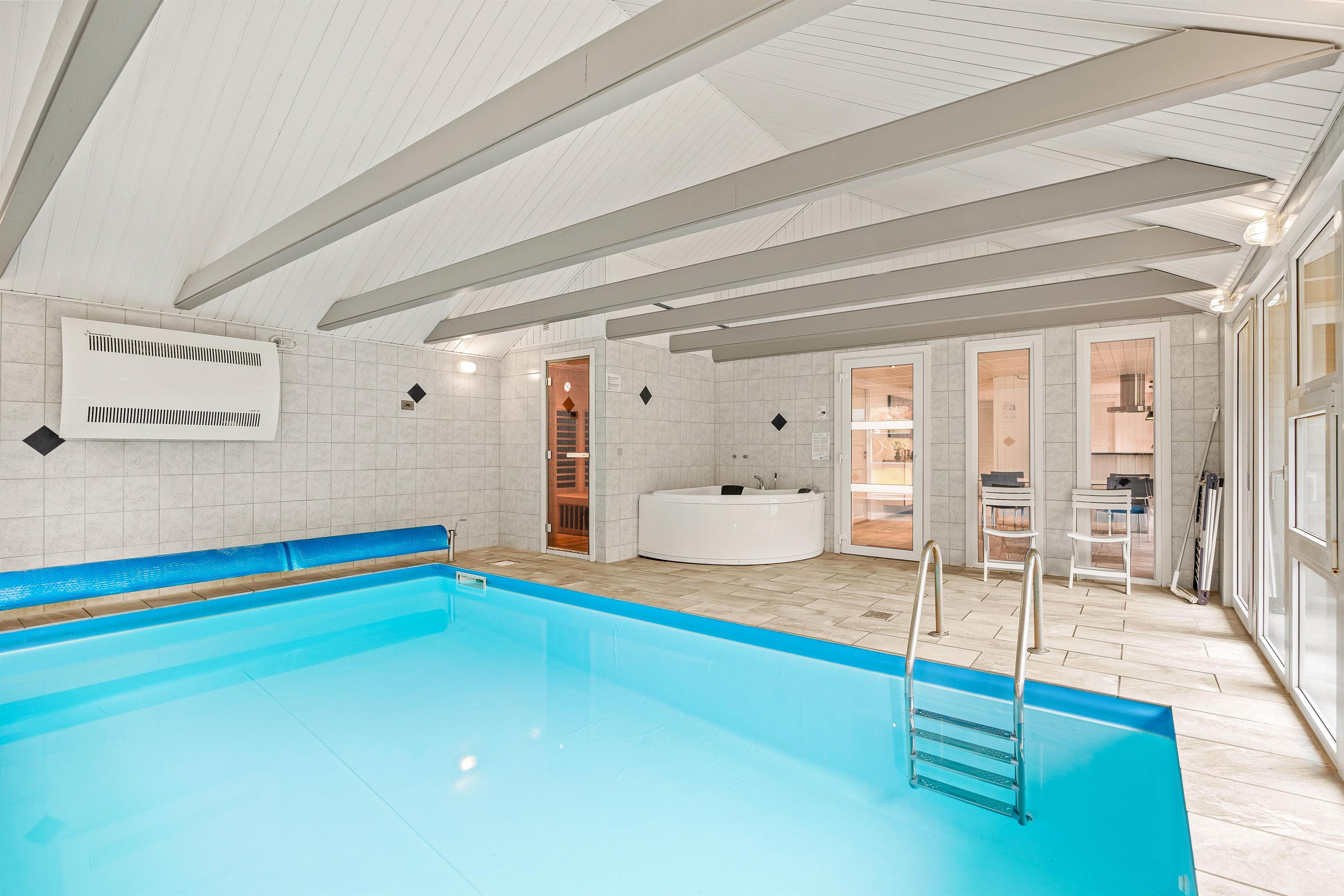 The open-plan kitchen has everything you need to treat each other to delicious meals. The excellent kitchen facilities include a microwave, fridge-freezer, cooker with oven and, of course, a dishwasher so you can spend your evenings together. The generous wellness area offers plenty of variety for all ages. The 15-square-metre pool will surely help make this holiday unforgettable.