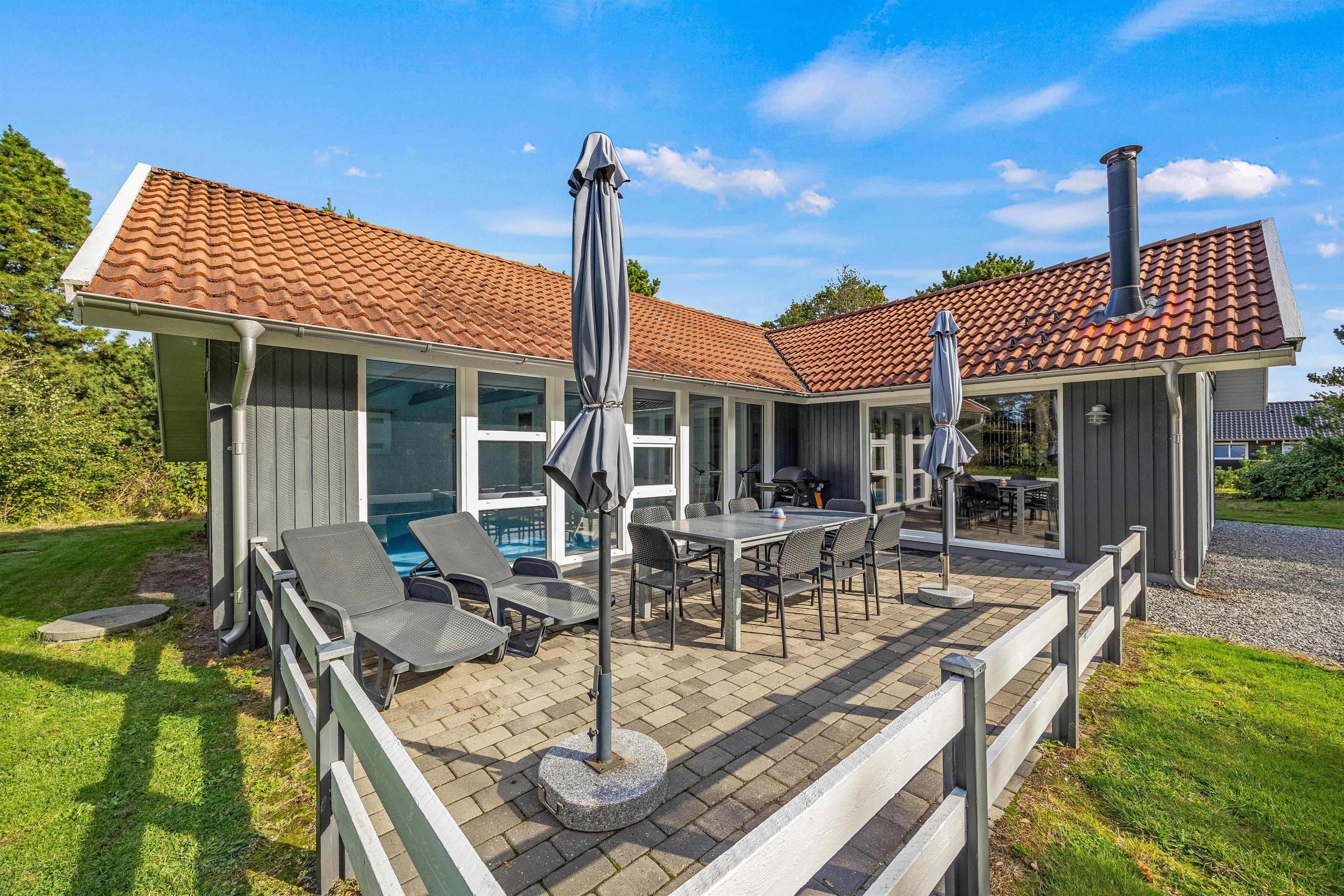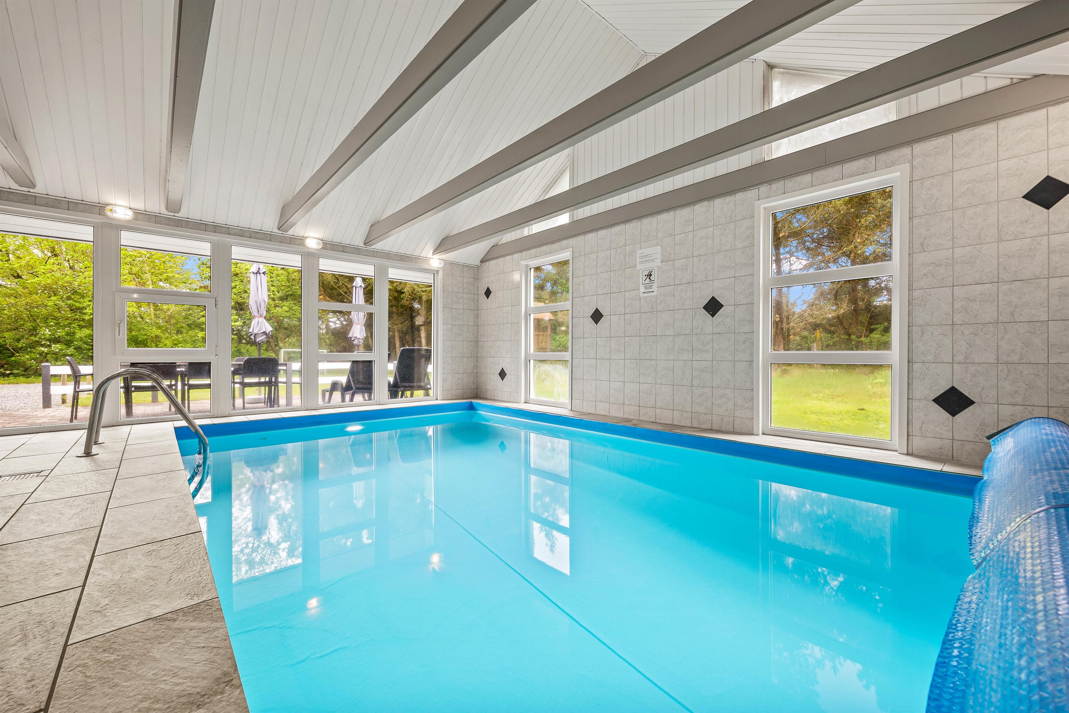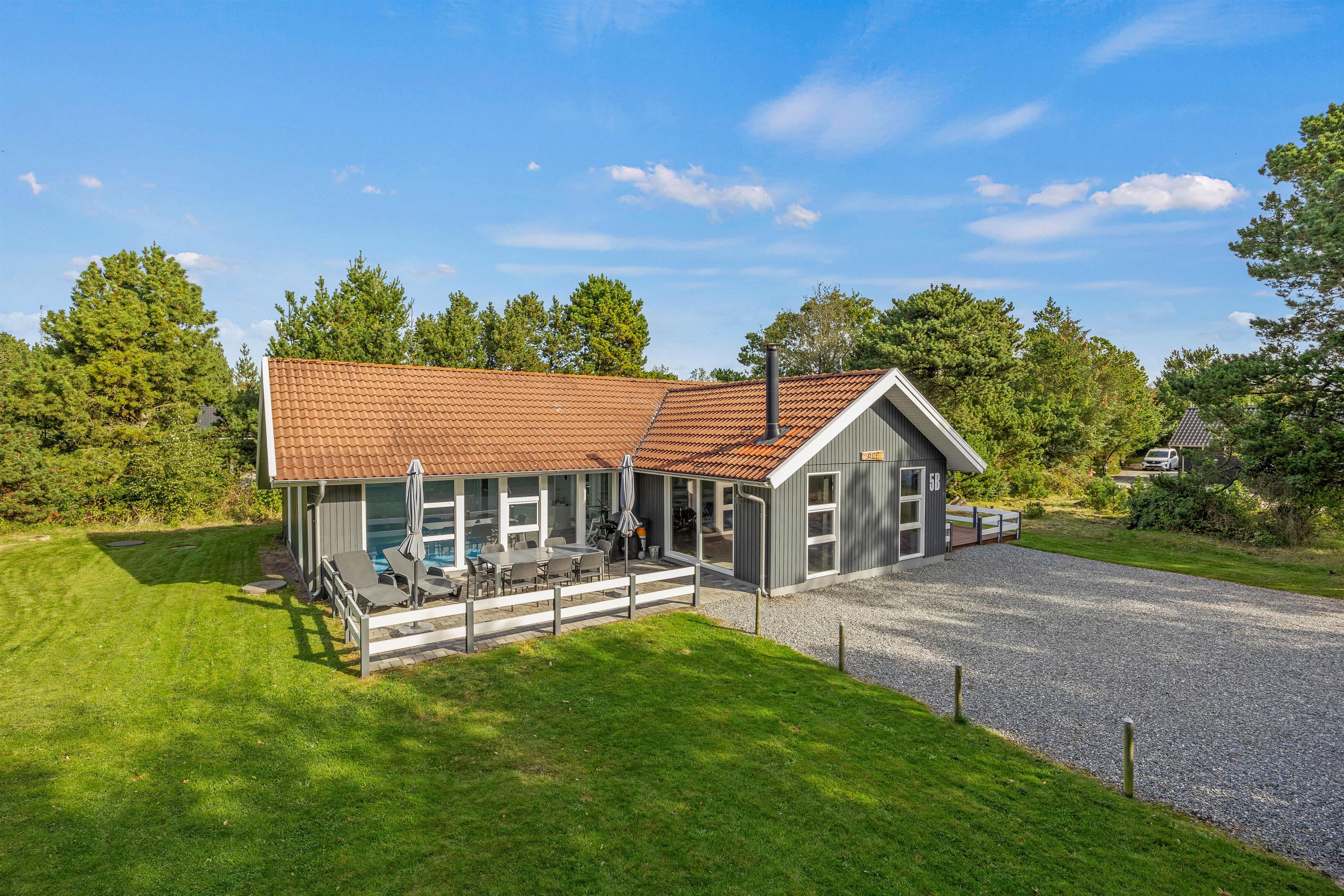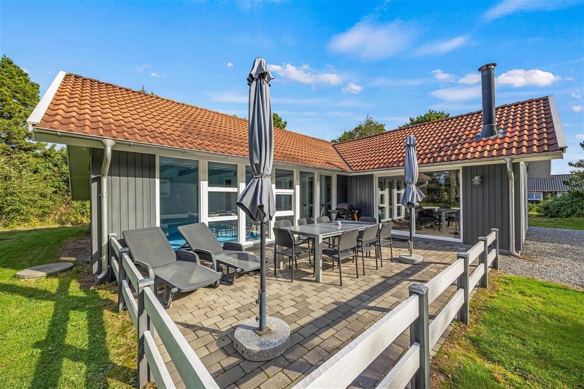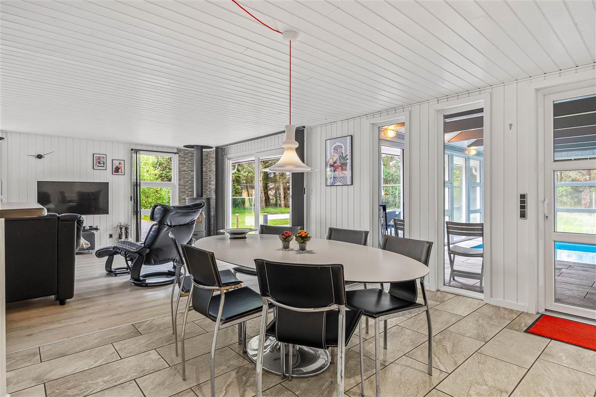 We warmly welcome you to this cosy holiday home offering wellness facilities including swimming pool, whirlpool and sauna in a beautiful location in Blåvand. This spacious holiday home is situated at Peter Malersvej 5 B in Blåvand, within walking distance of the North Sea and town centre. There's plenty of space for 8 people and 2 dogs to enjoy a relaxing holiday in beautiful surroundings.