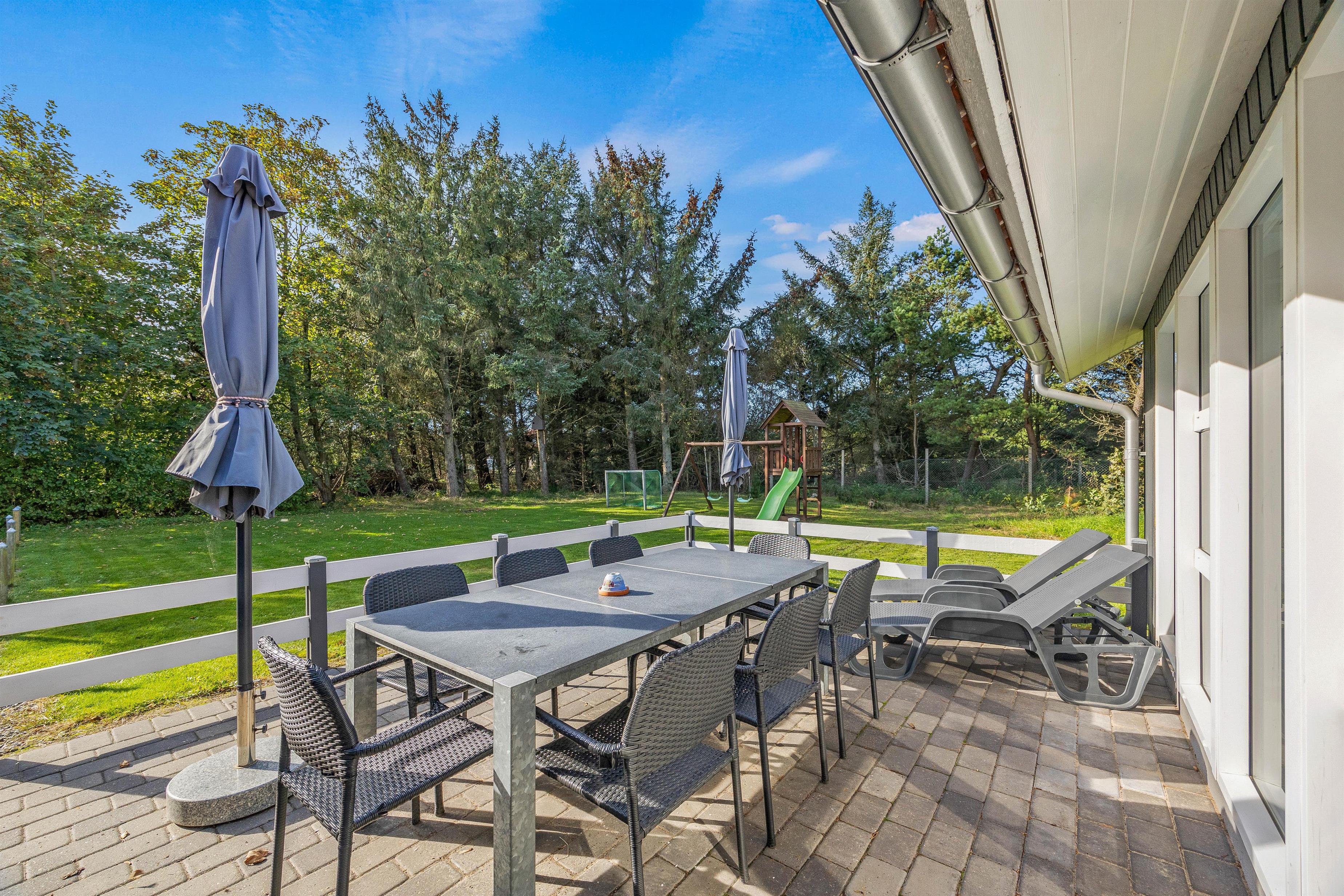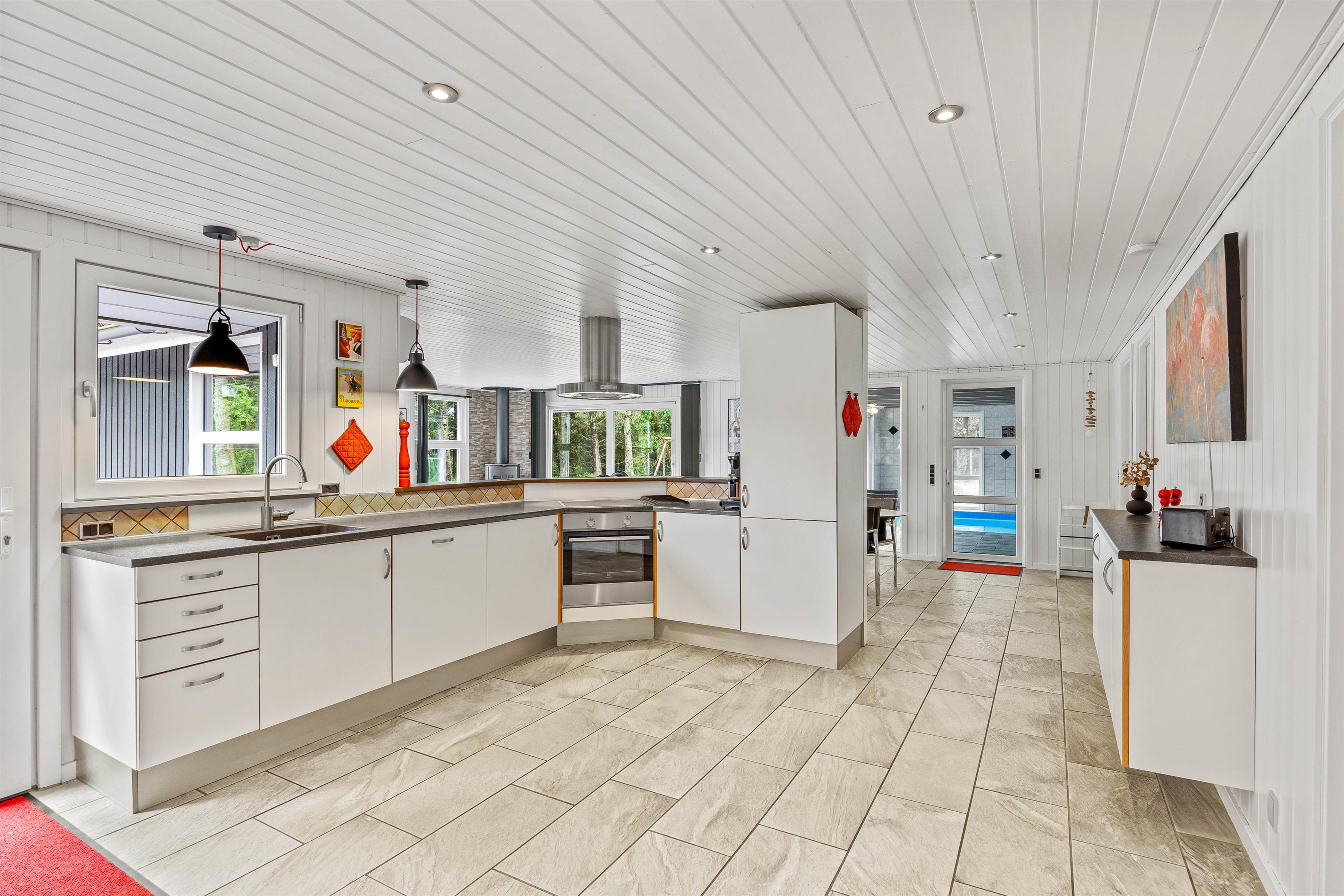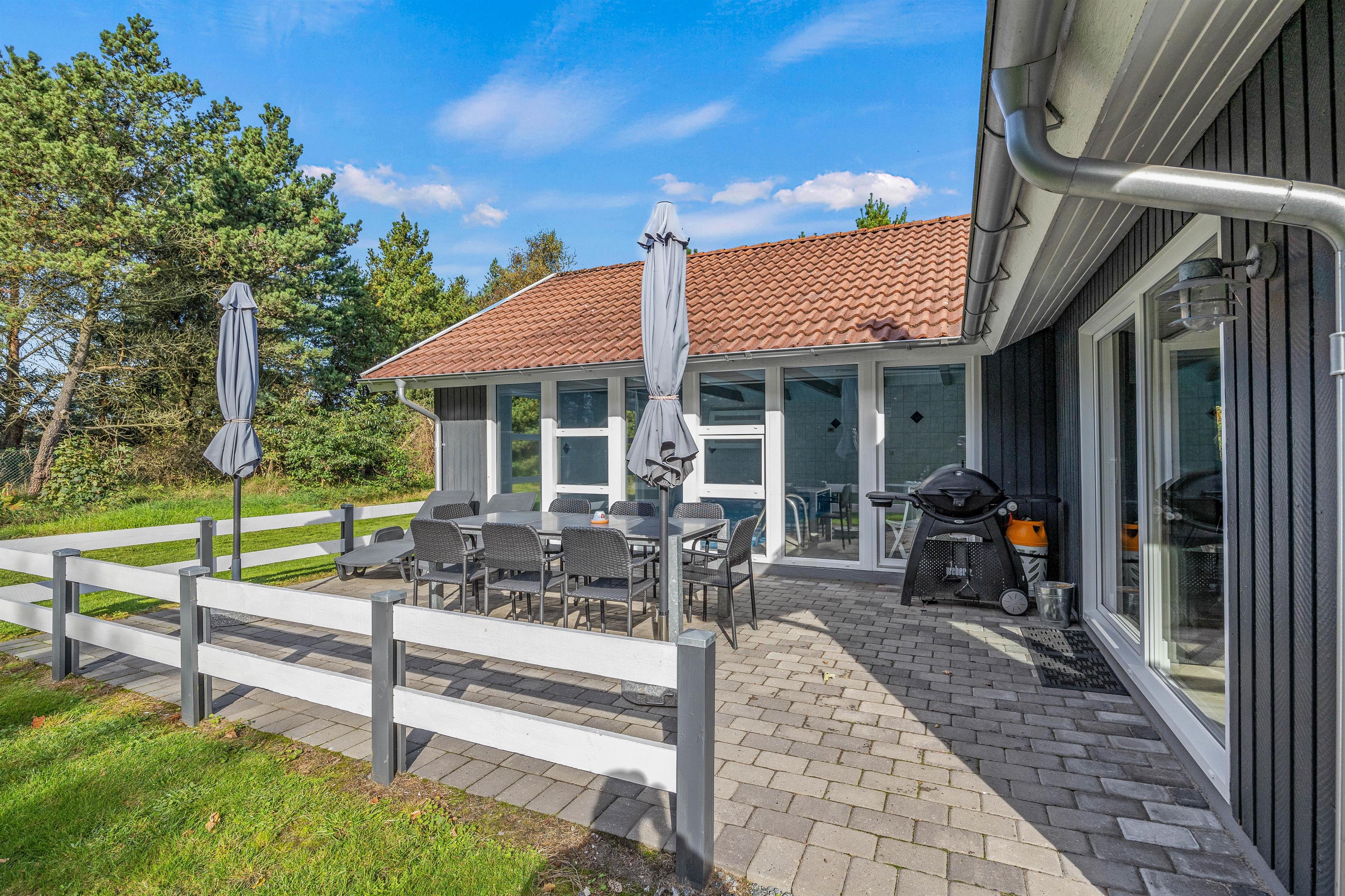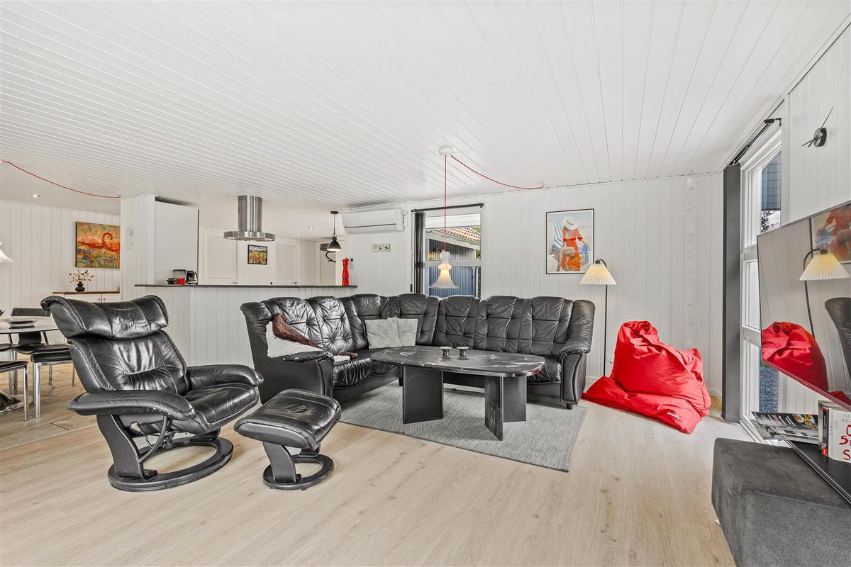 We warmly welcome you to this cosy holiday home offering wellness facilities including swimming pool, whirlpool and sauna in a beautiful location in Blåvand. This spacious holiday home is situated at Peter Malersvej 5 B in Blåvand, within walking distance of the North Sea and town centre. There's plenty of space for 8 people and 2 dogs to enjoy a relaxing holiday in beautiful surroundings.